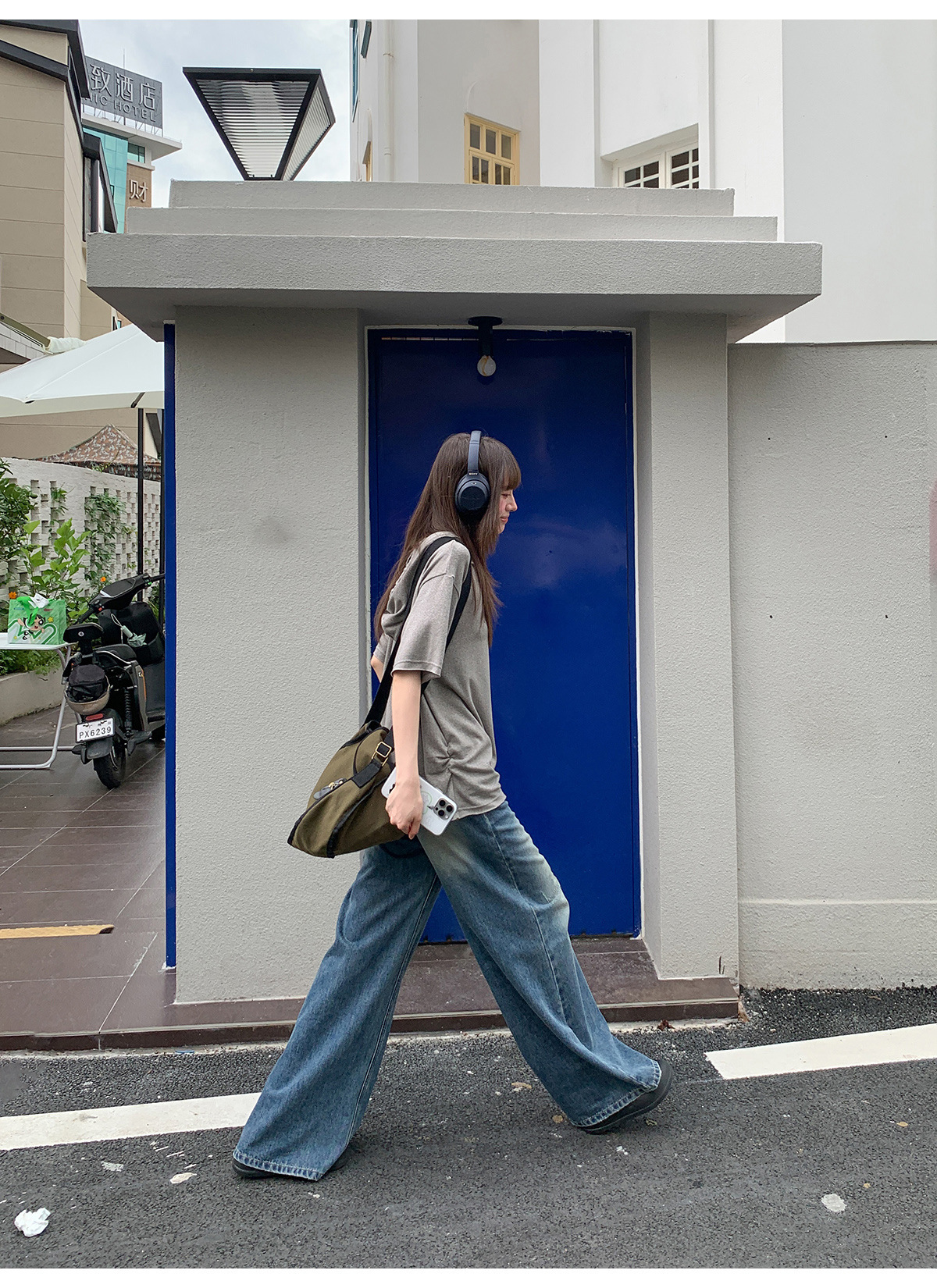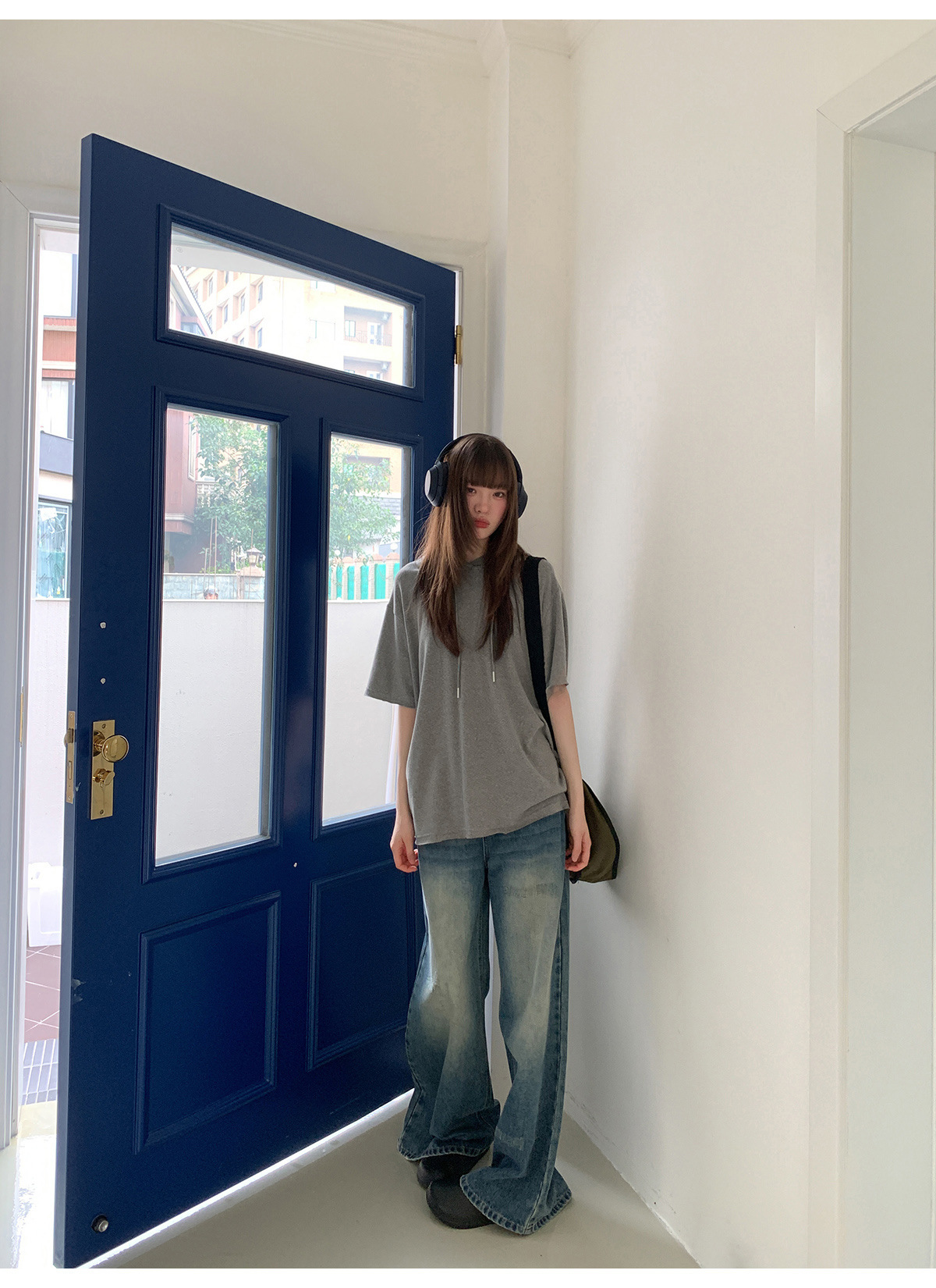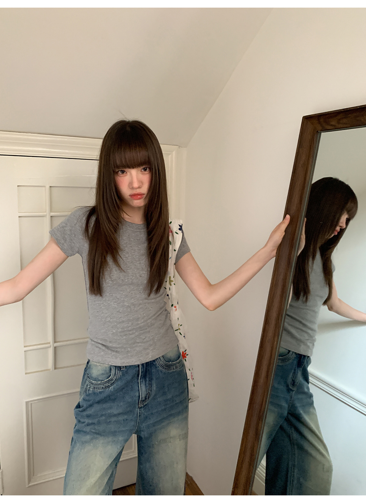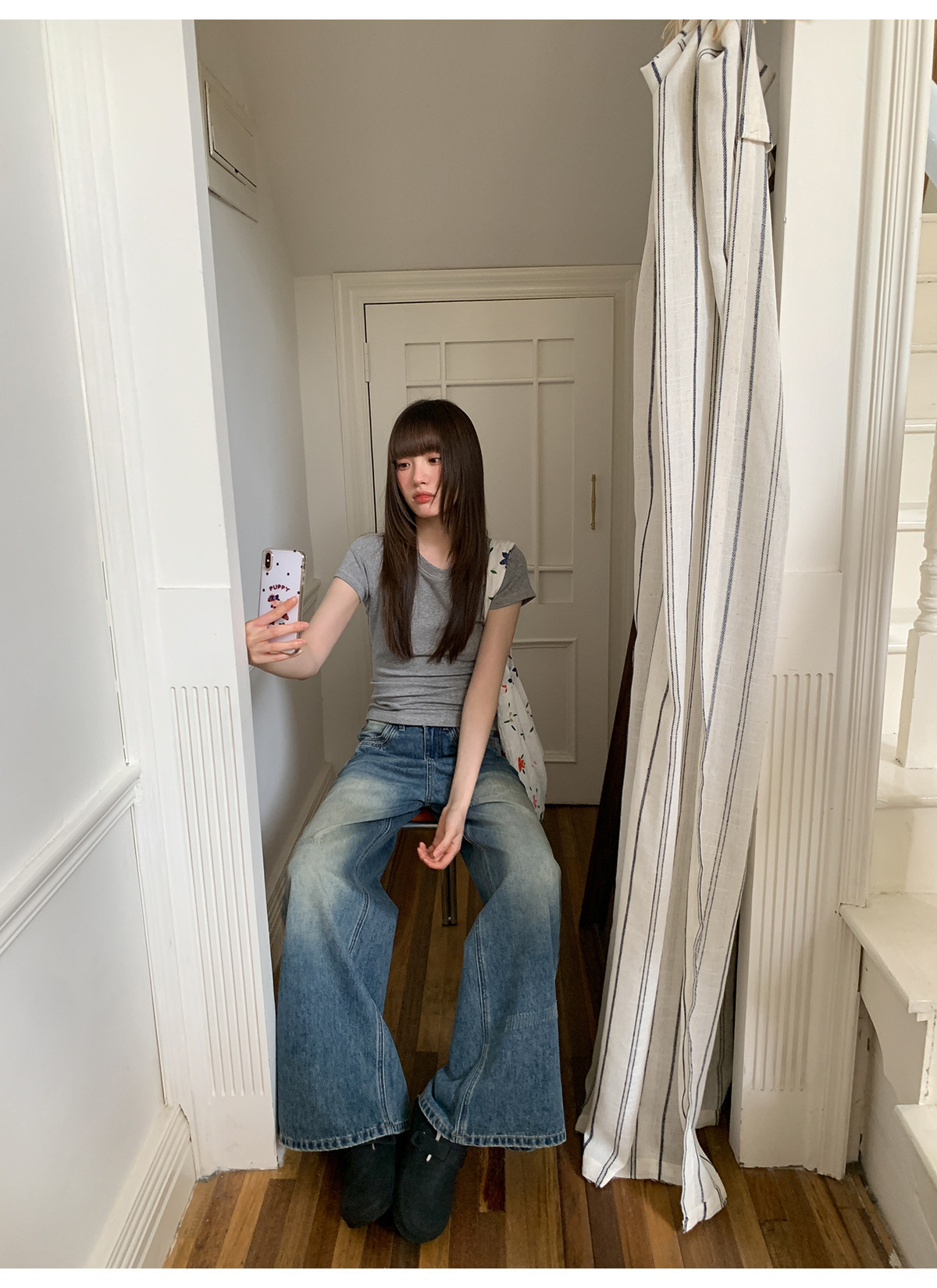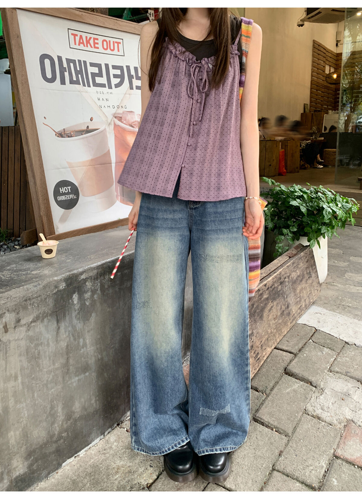复古高腰阔腿牛仔裤女夏季做旧工艺磨破设计感休闲长裤