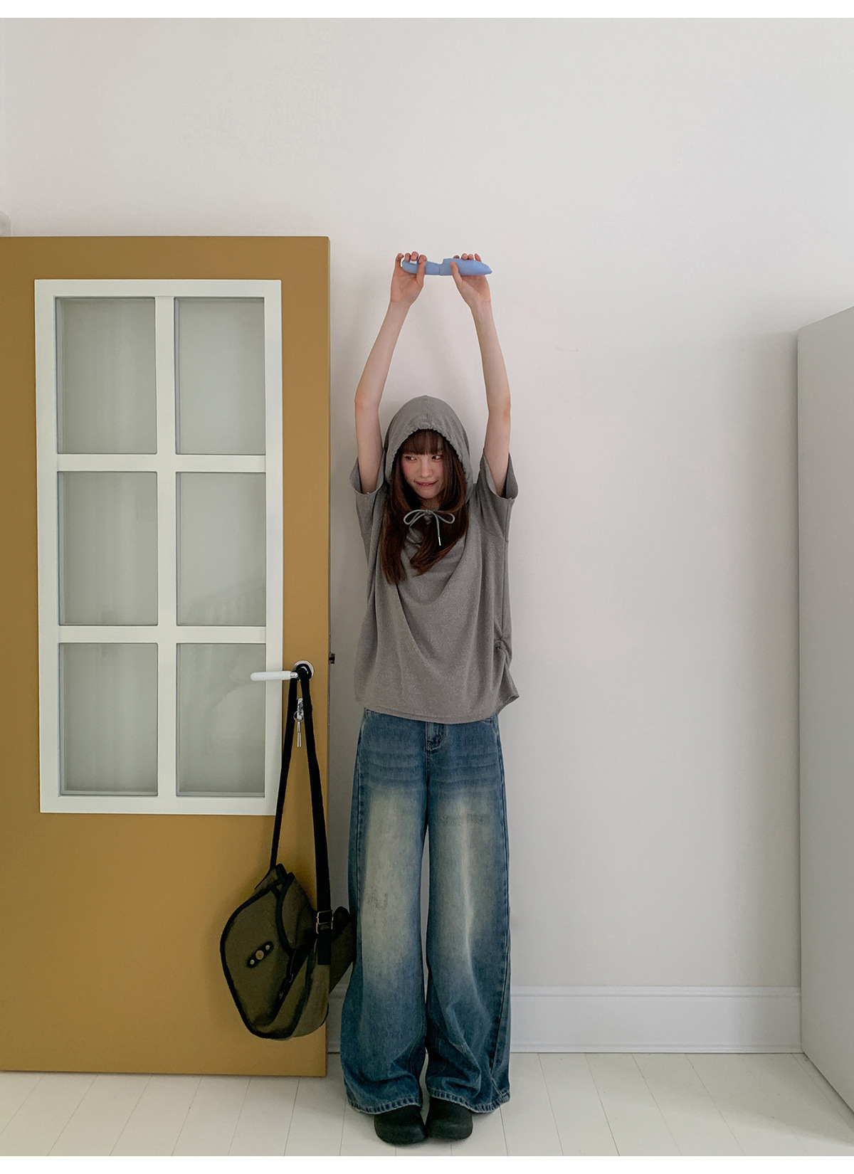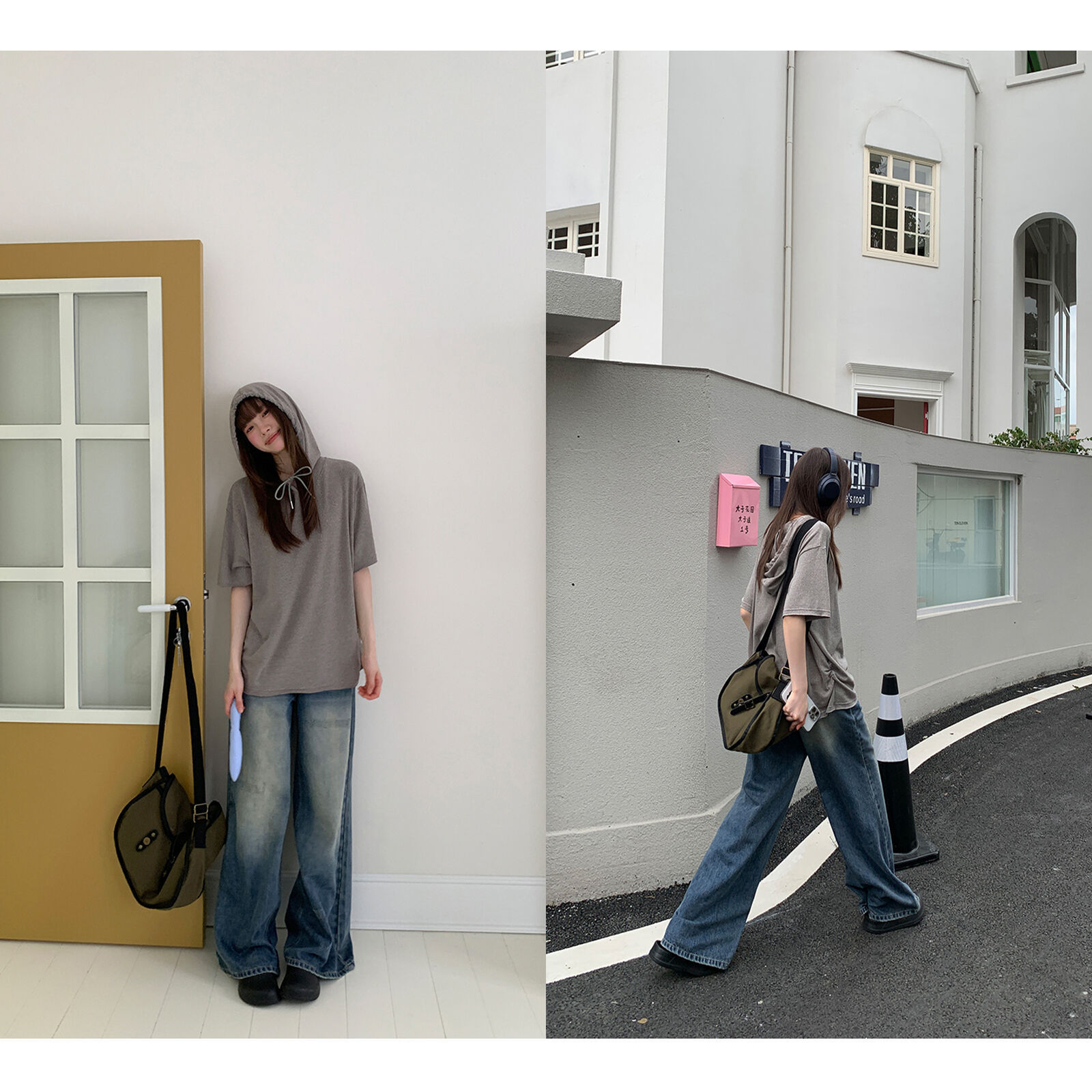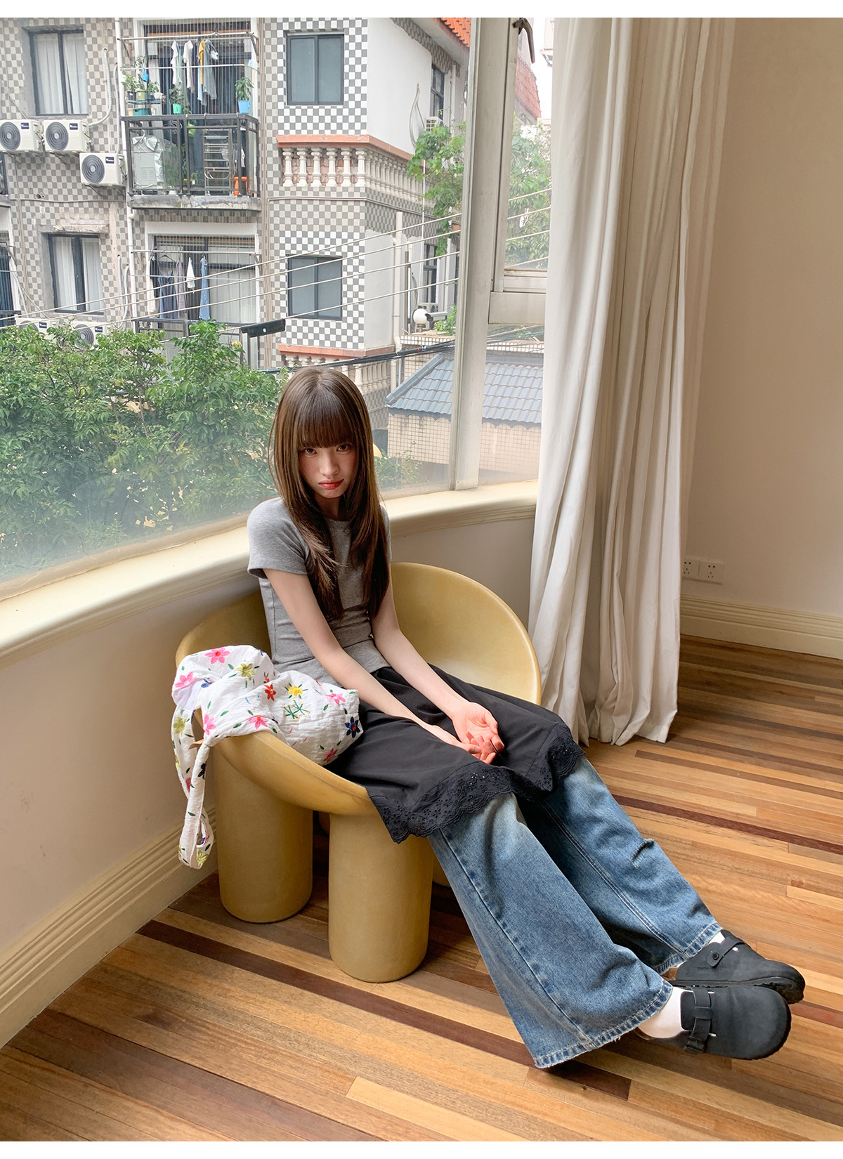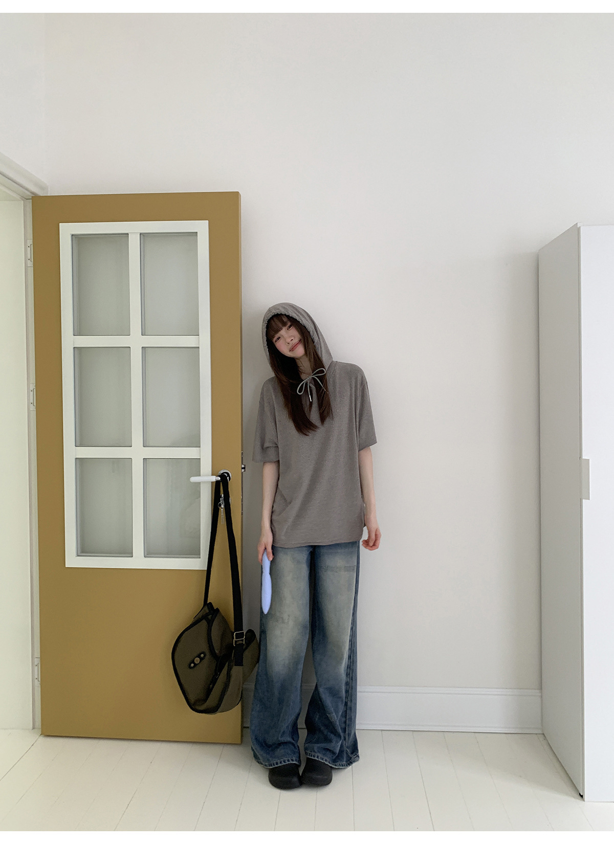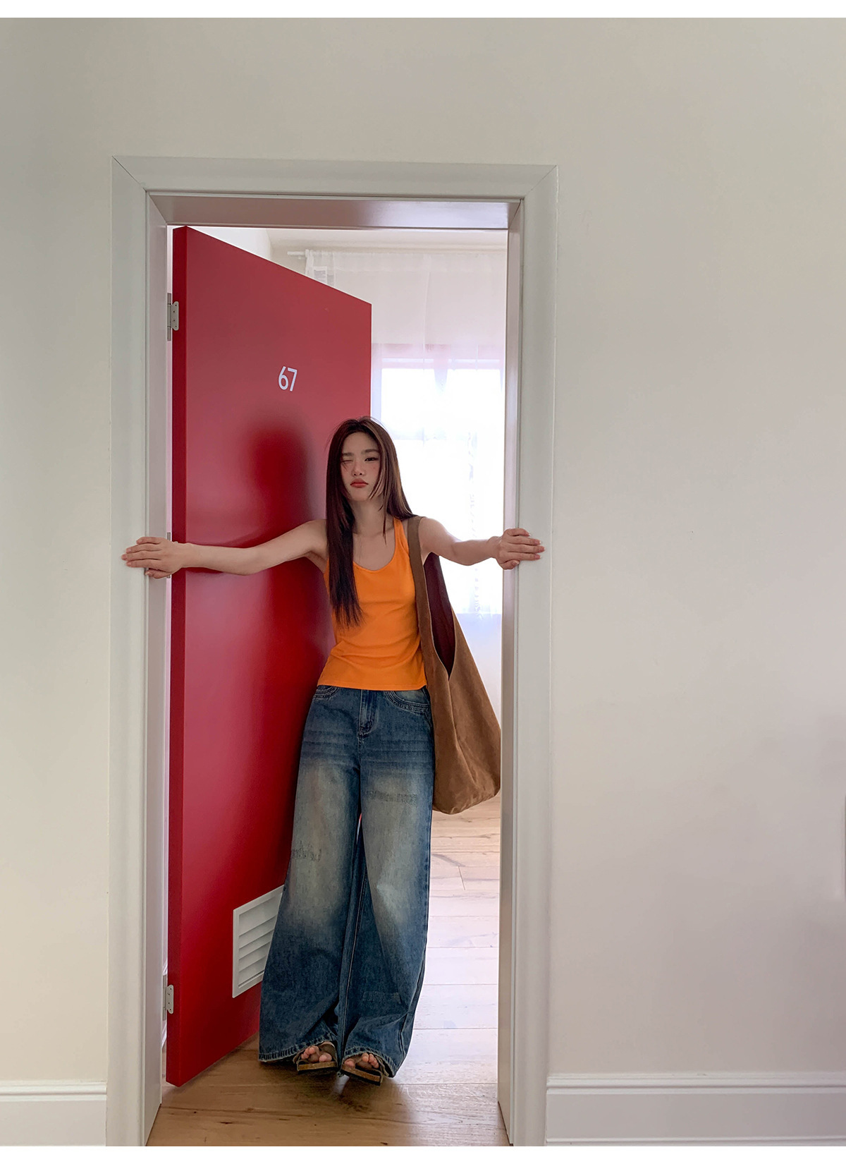 复古高腰阔腿牛仔裤女夏季做旧工艺磨破设计感休闲长裤