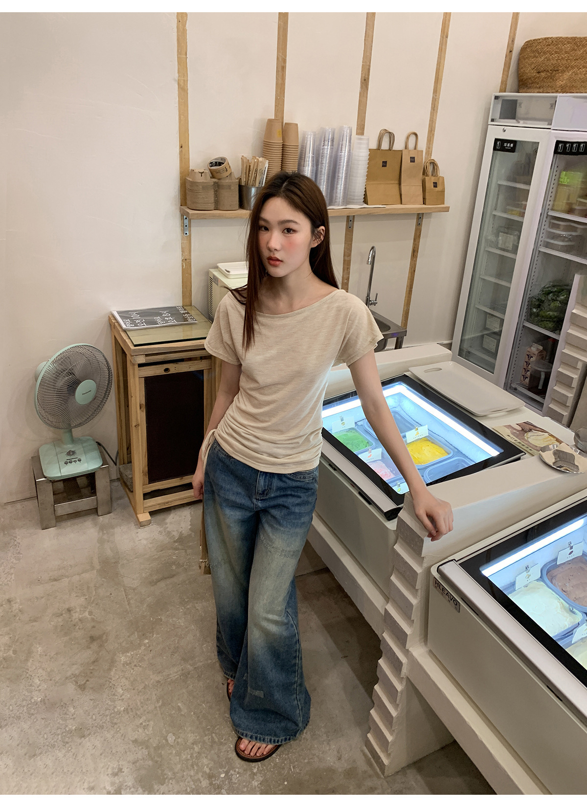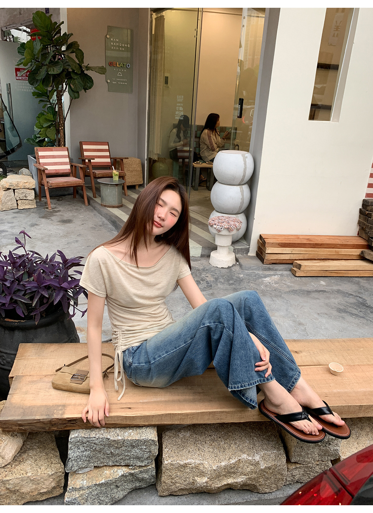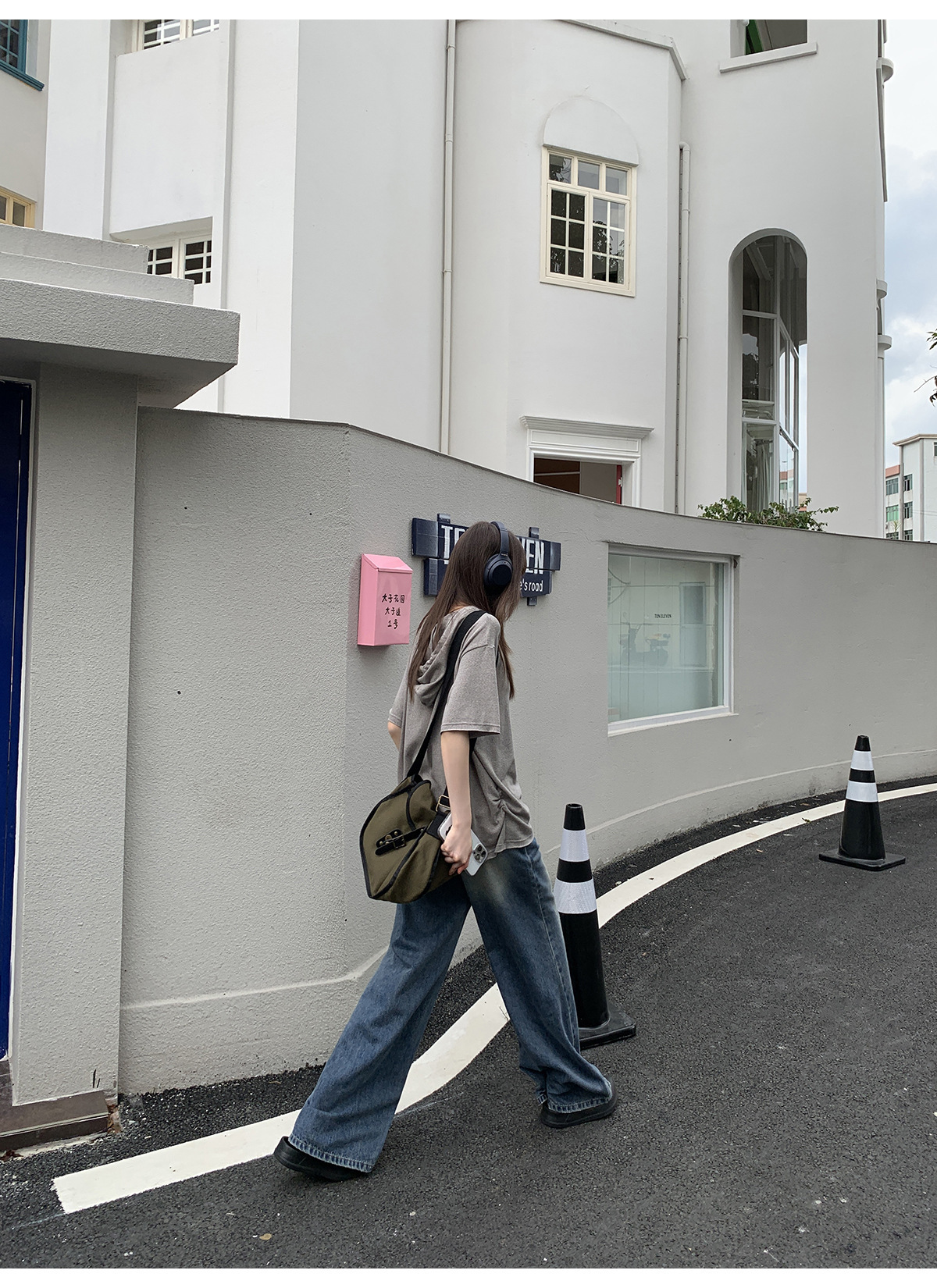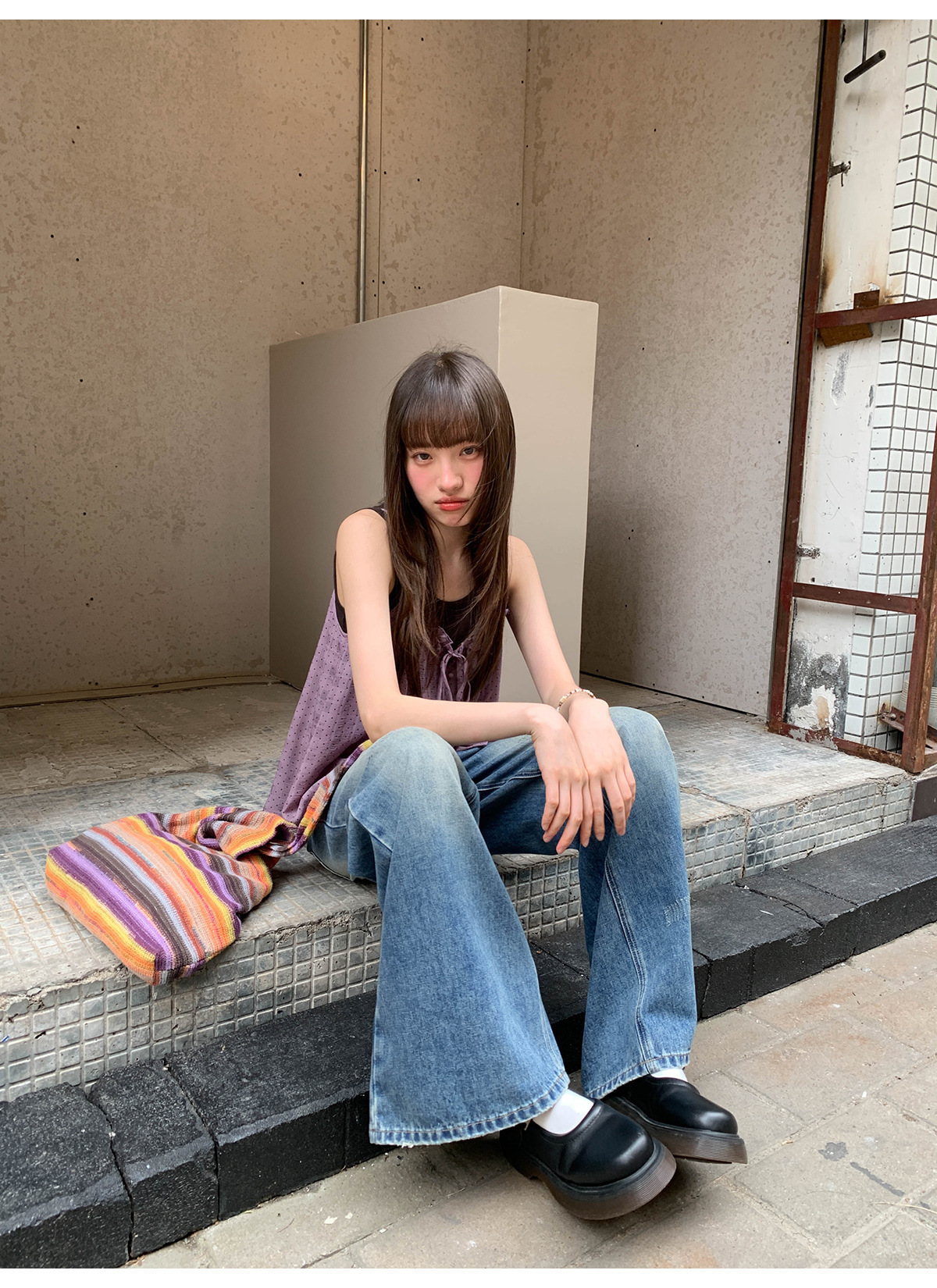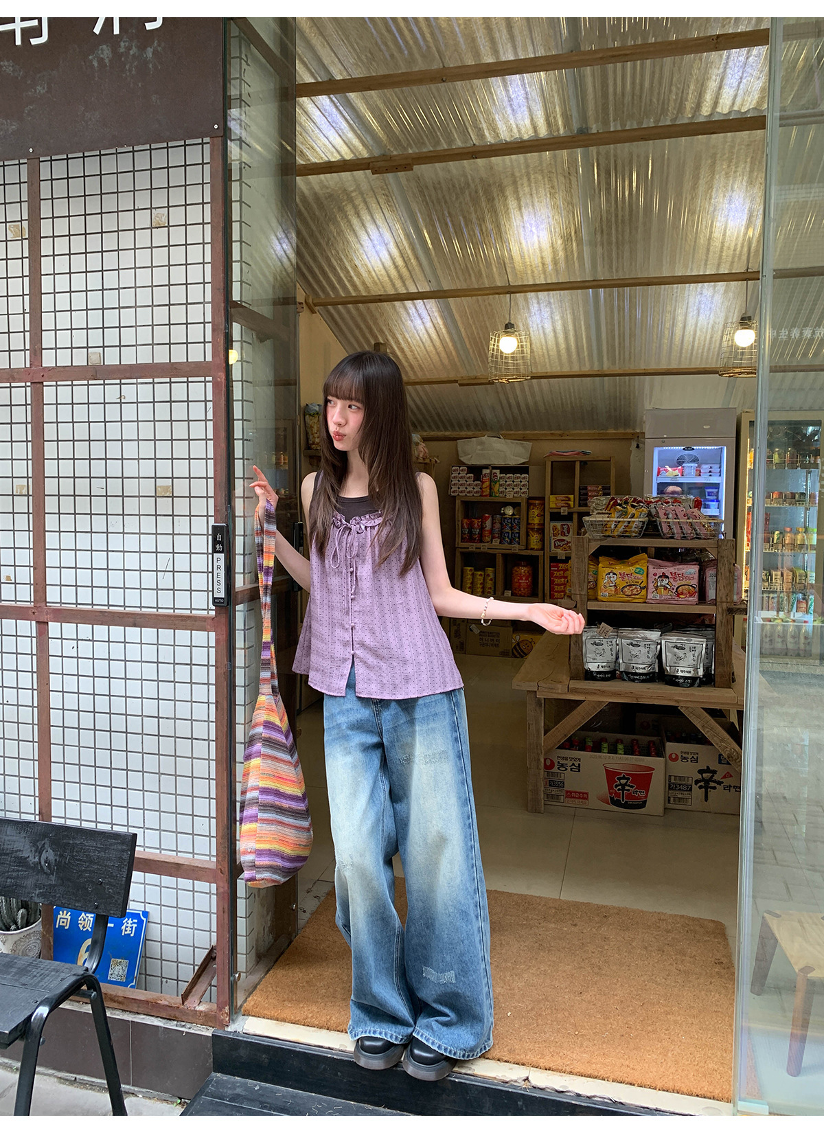 复古高腰阔腿牛仔裤女夏季做旧工艺磨破设计感休闲长裤