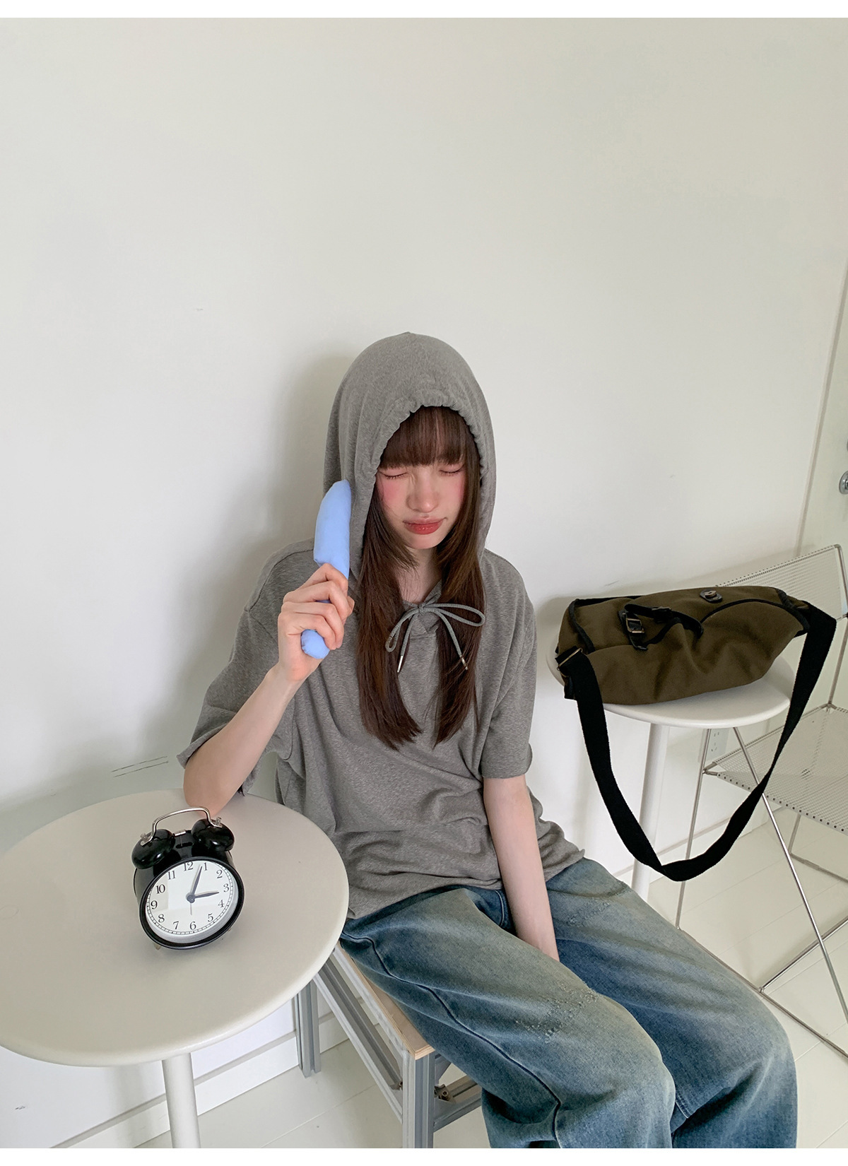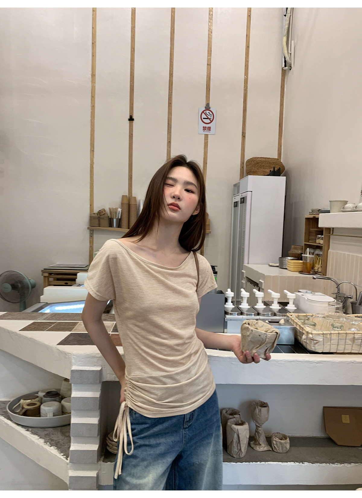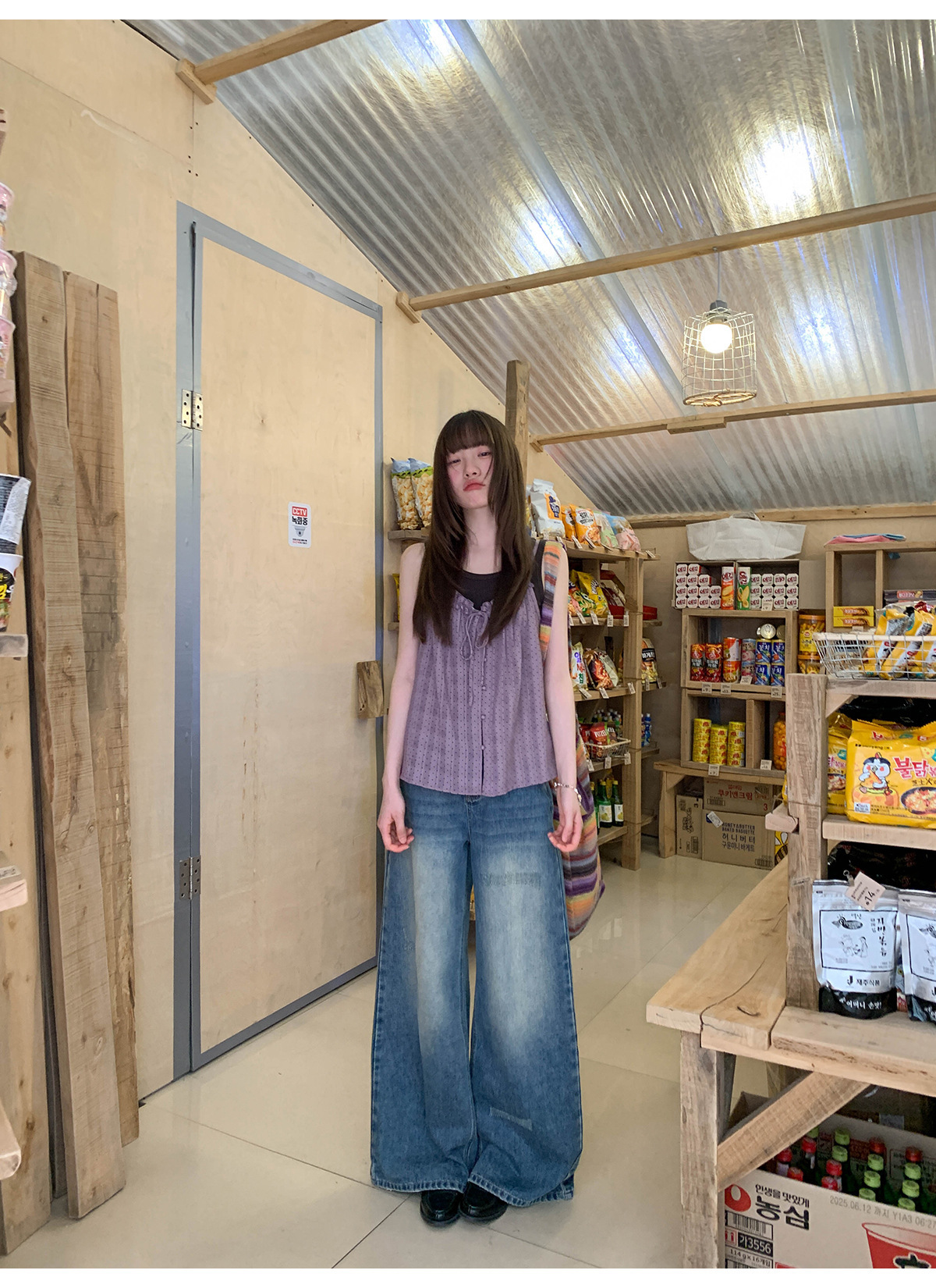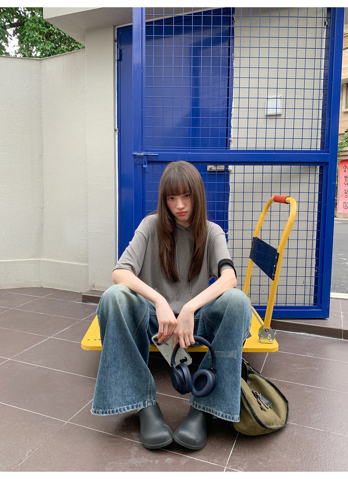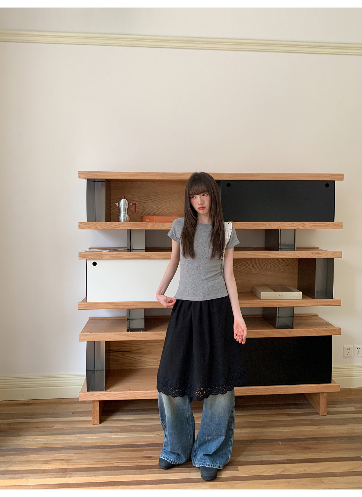 复古高腰阔腿牛仔裤女夏季做旧工艺磨破设计感休闲长裤