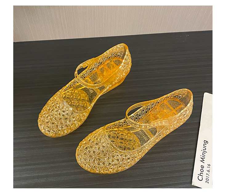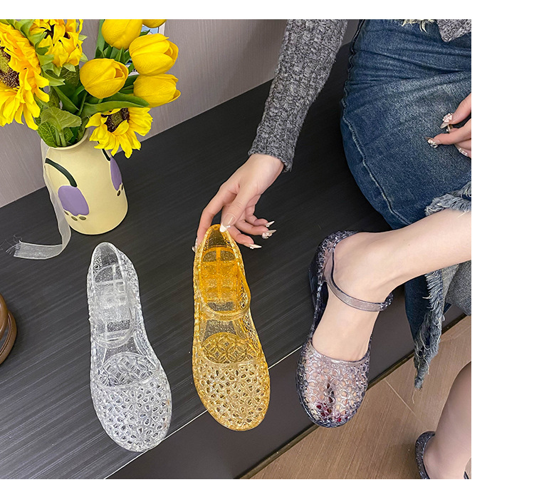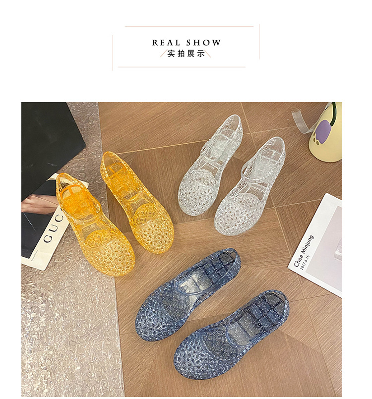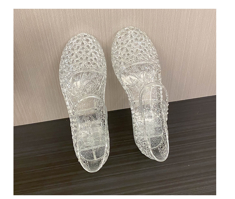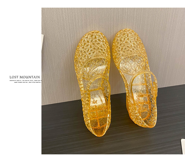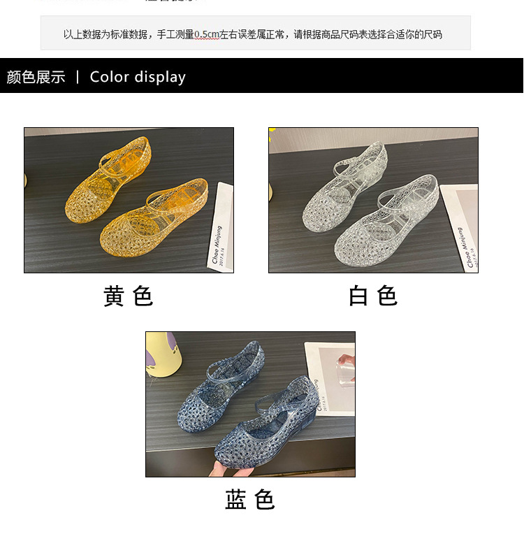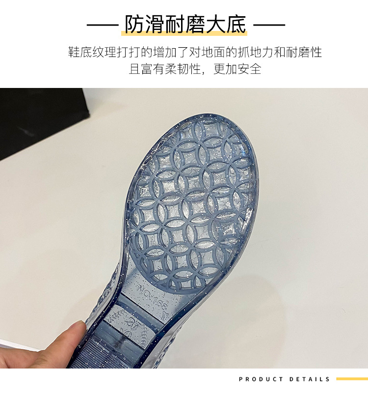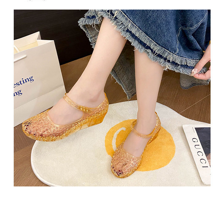 时尚塑料凉拖鞋女外穿水晶女鞋坡跟凉鞋中跟一字扣带包头夏季凉鞋
