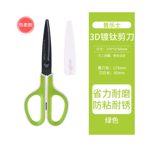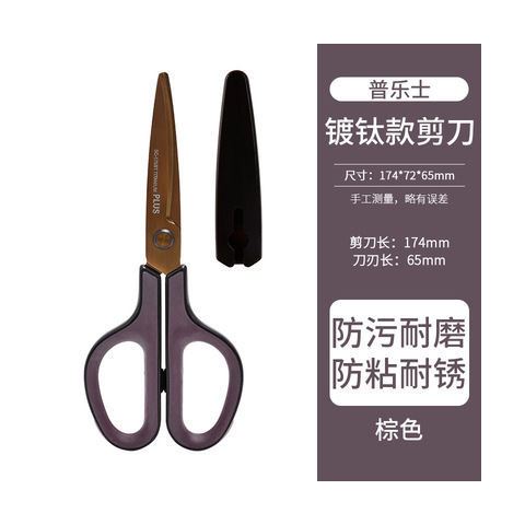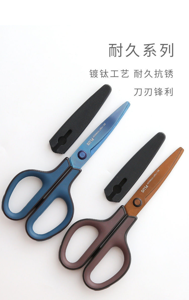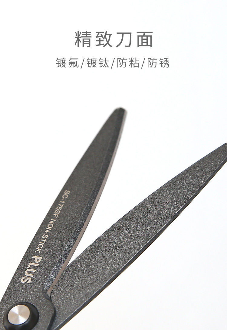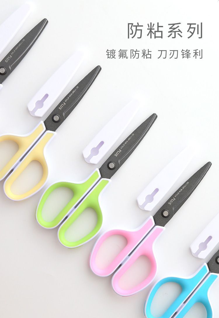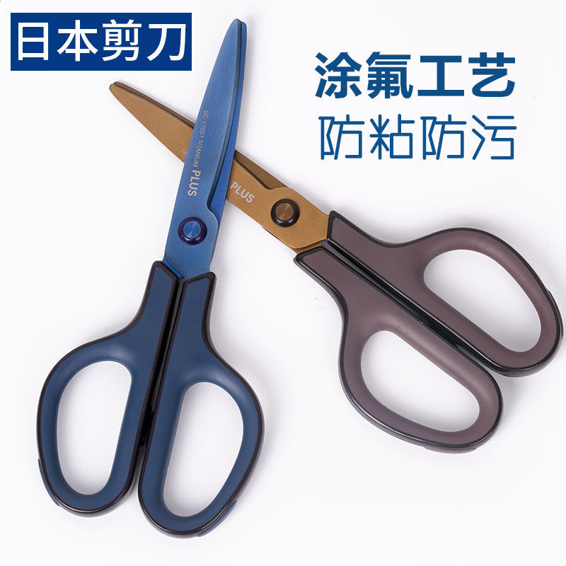 日本PLUS普乐士剪刀镀钛防粘胶家用剪子带保护套学生手工便携省力