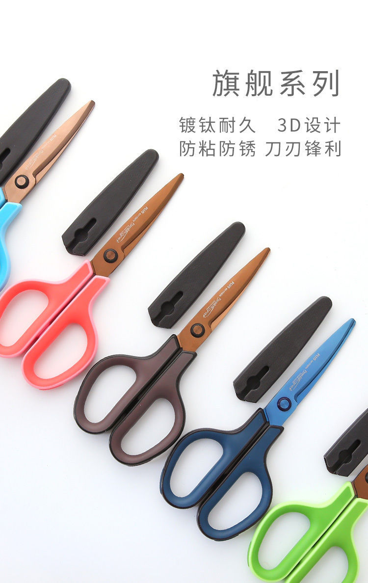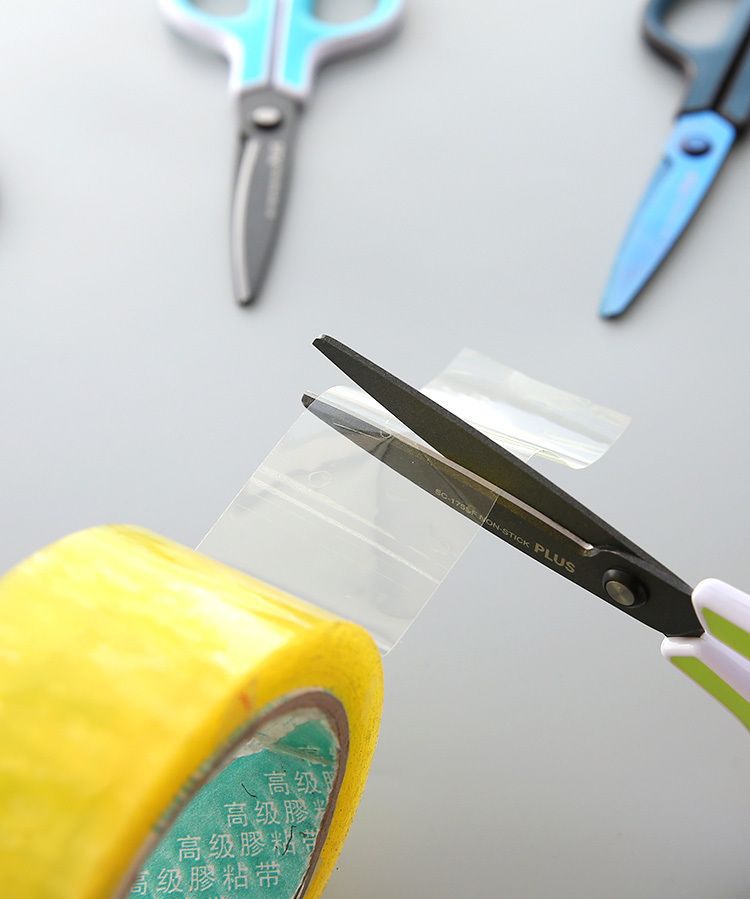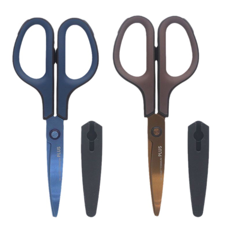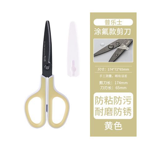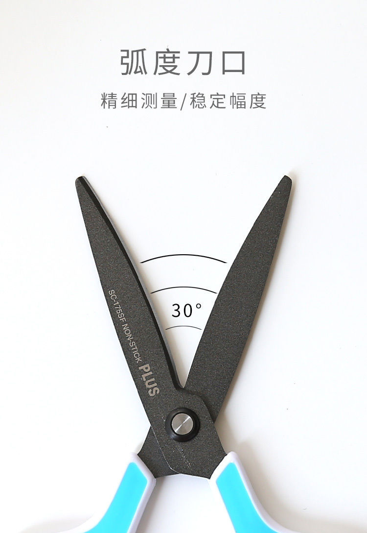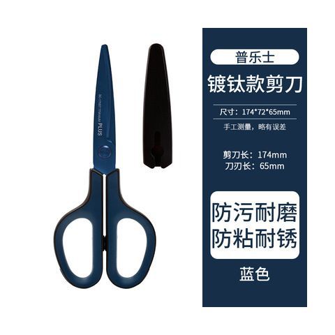 日本PLUS普乐士剪刀镀钛防粘胶家用剪子带保护套学生手工便携省力