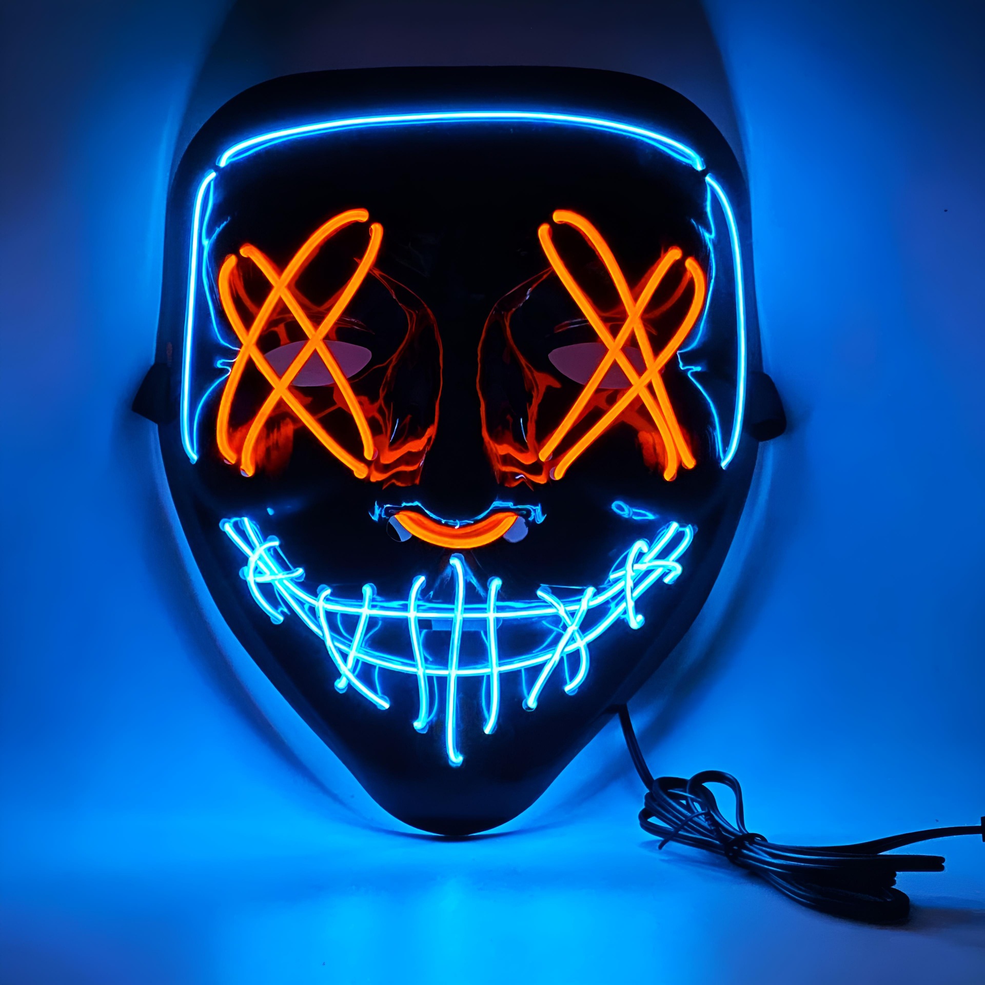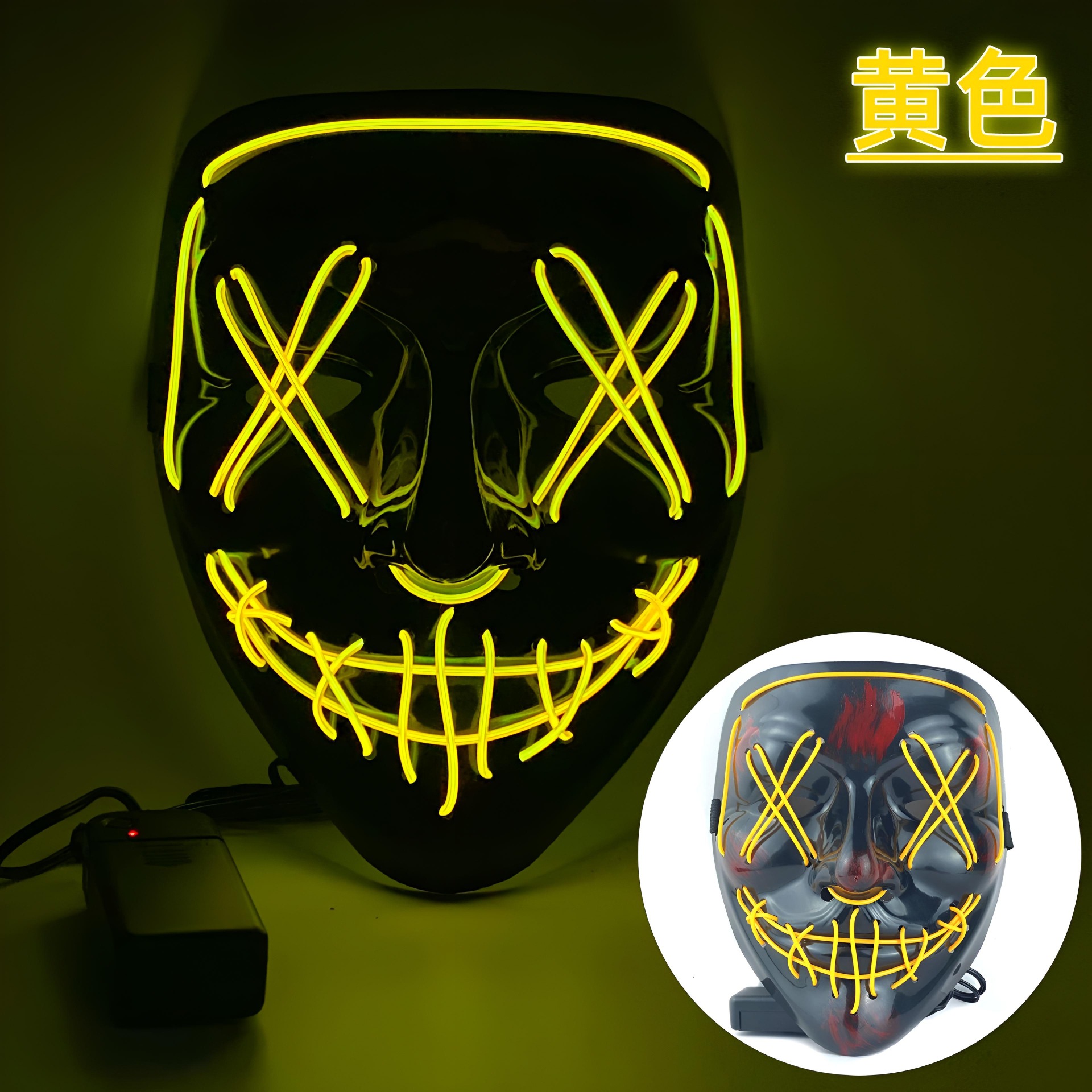 跨境万圣节发光面具定制EL冷光黑V字仇杀恐怖鬼脸LED派对舞会道具
