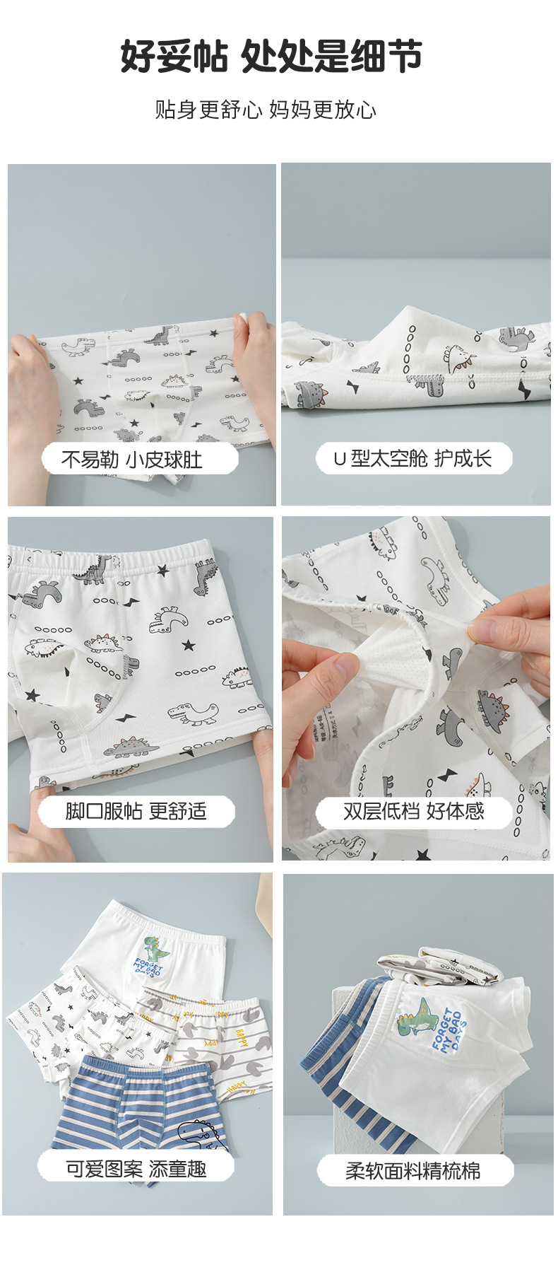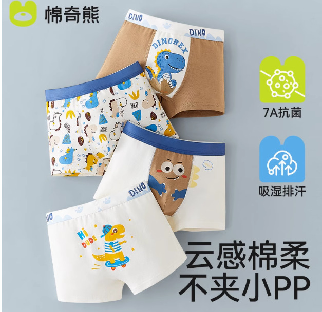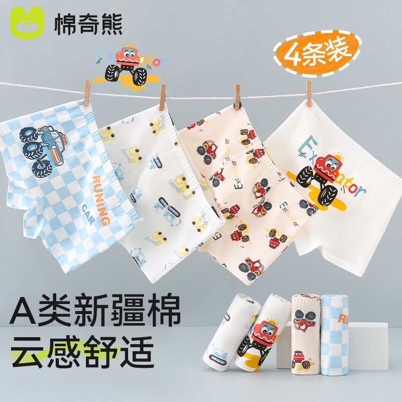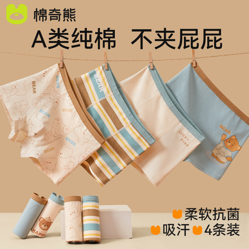 棉奇熊男童内裤儿童不夹屁屁大童平角短裤男宝宝小童A类棉四角裤