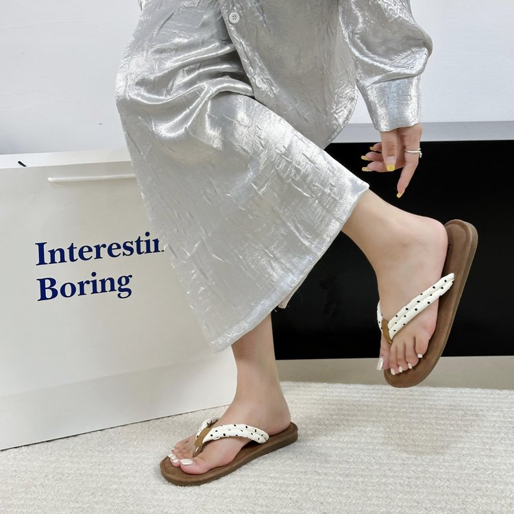 小众平底人字拖女夏季2025新款时尚波点旅游沙滩鞋防滑夹脚凉拖鞋