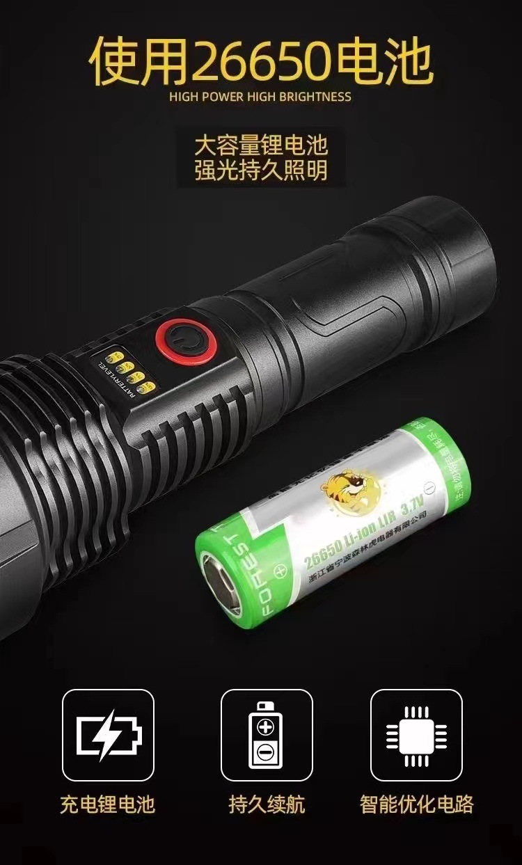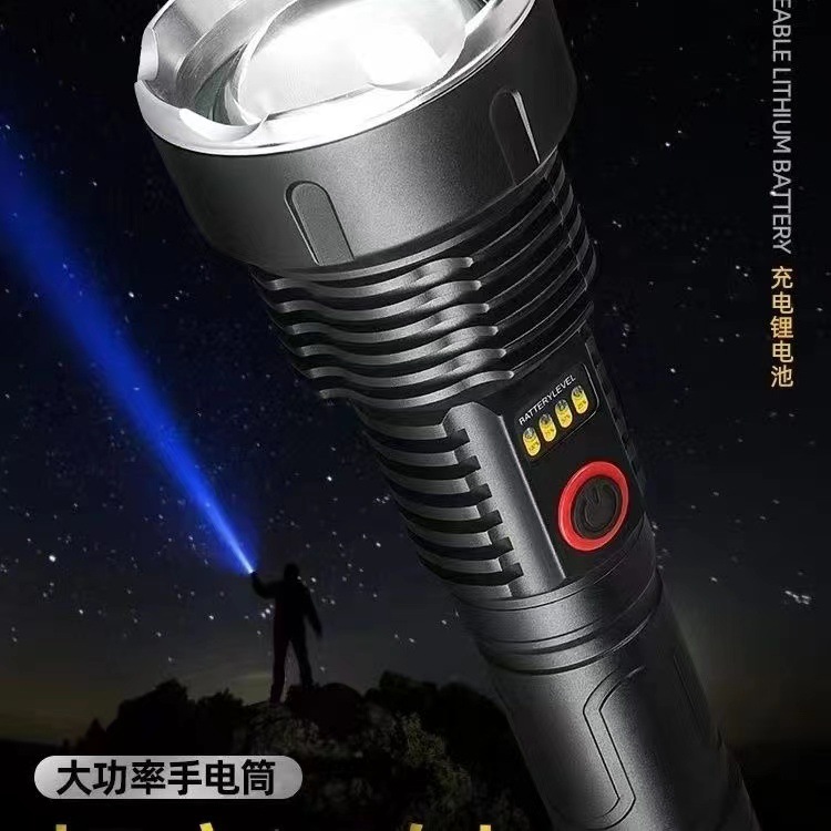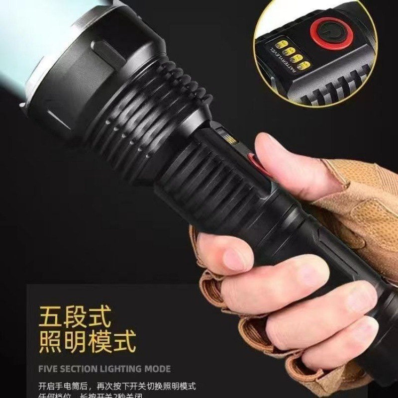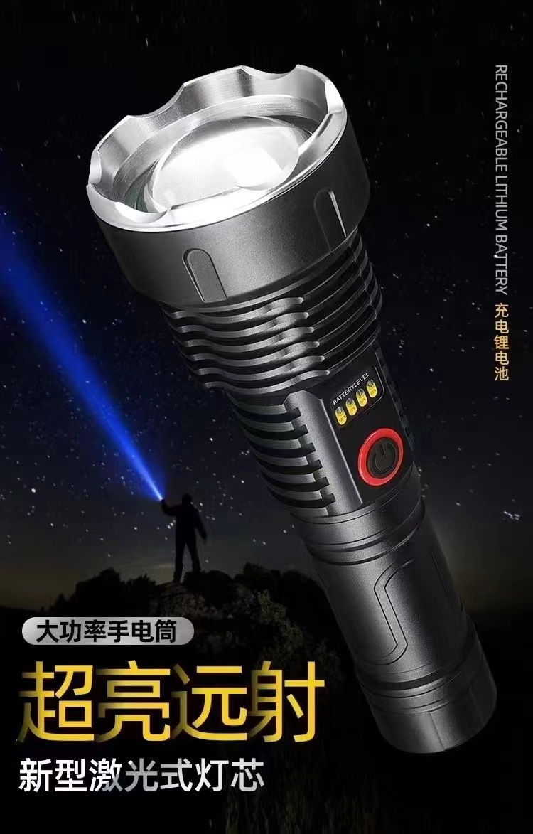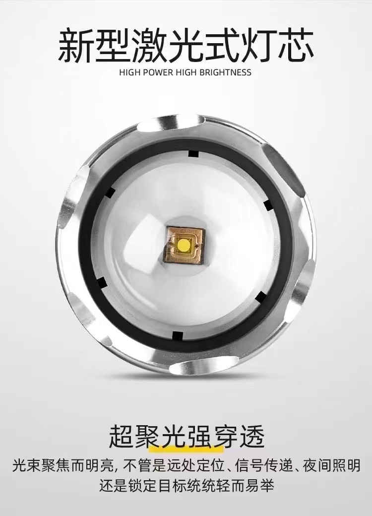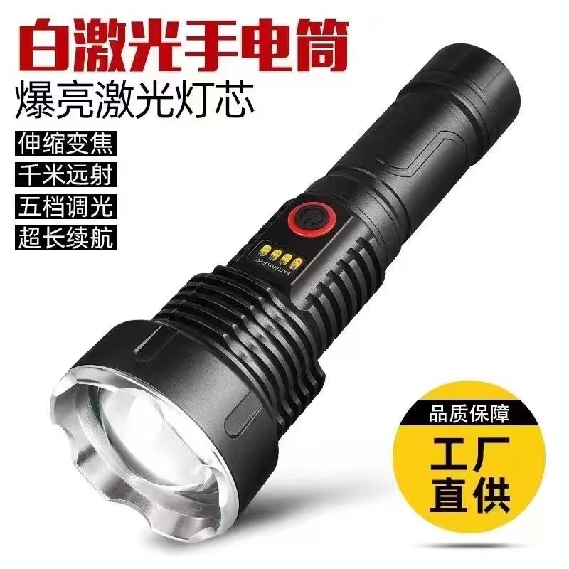 户外探险露营白激光手电筒可充电应急灯防身搜索变焦手电充电式