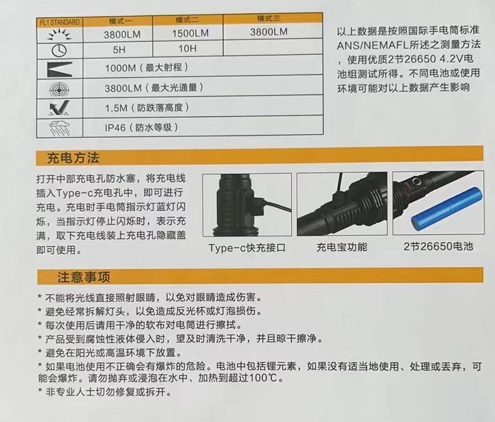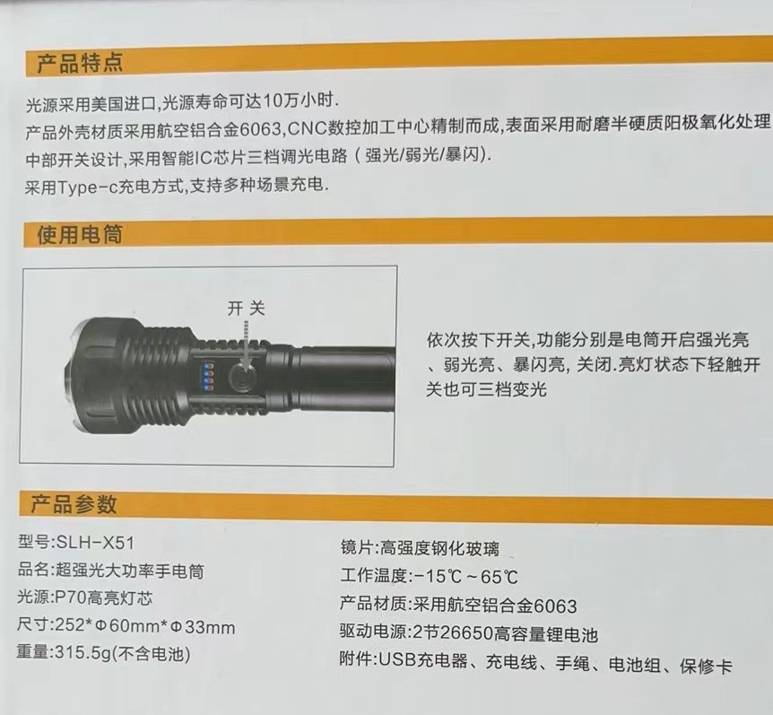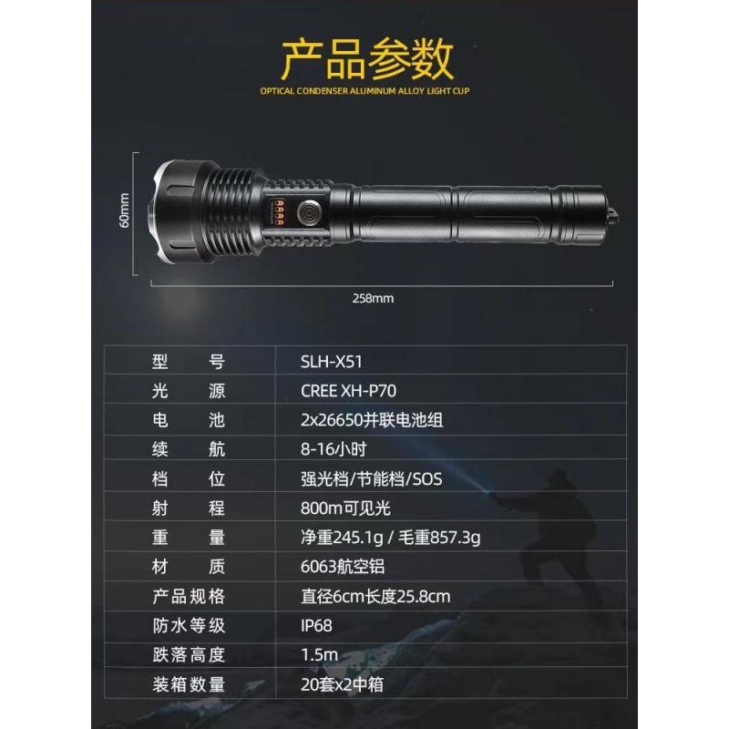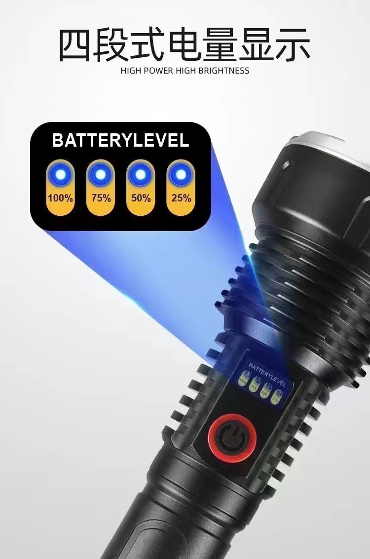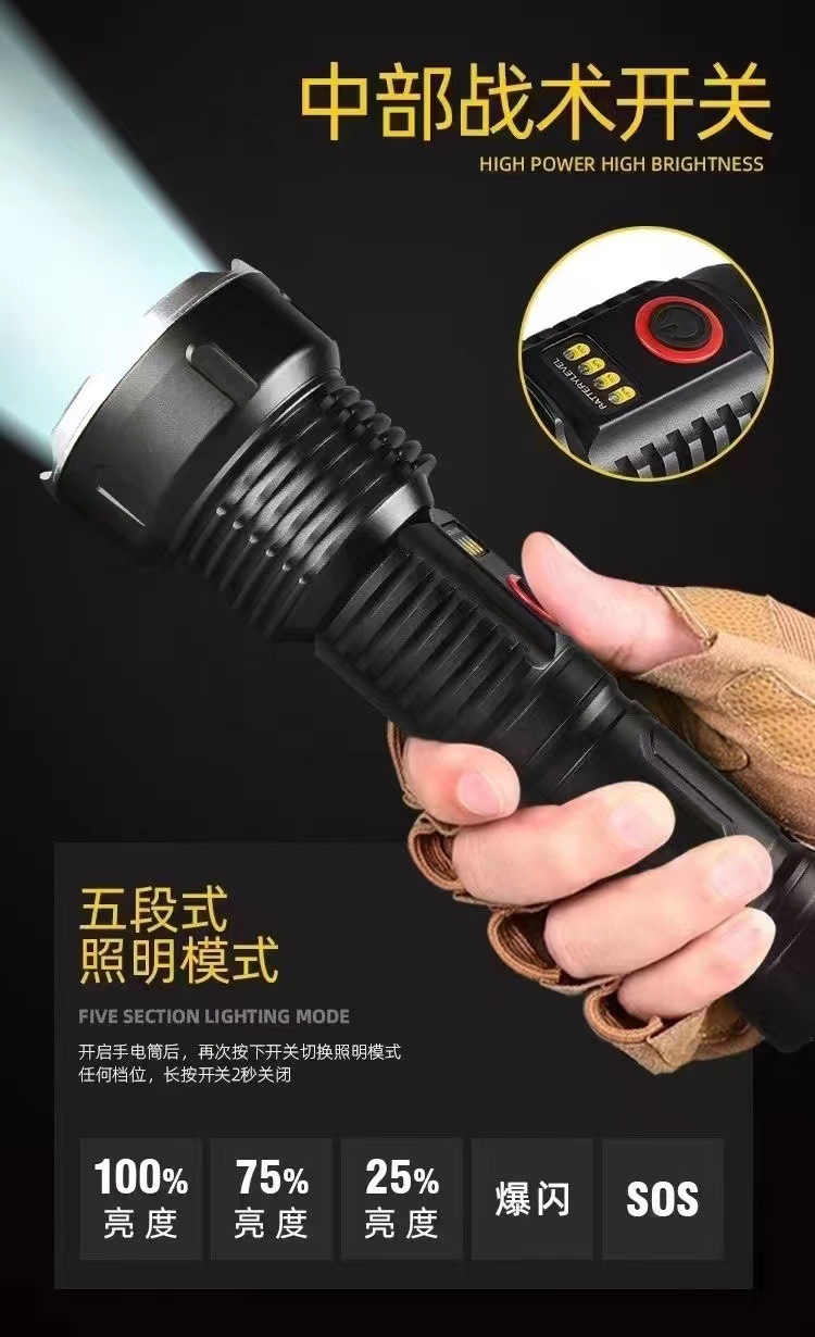 户外探险露营白激光手电筒可充电应急灯防身搜索变焦手电充电式