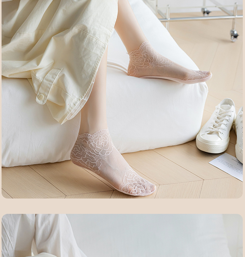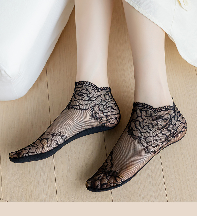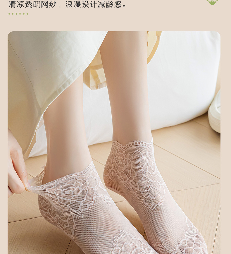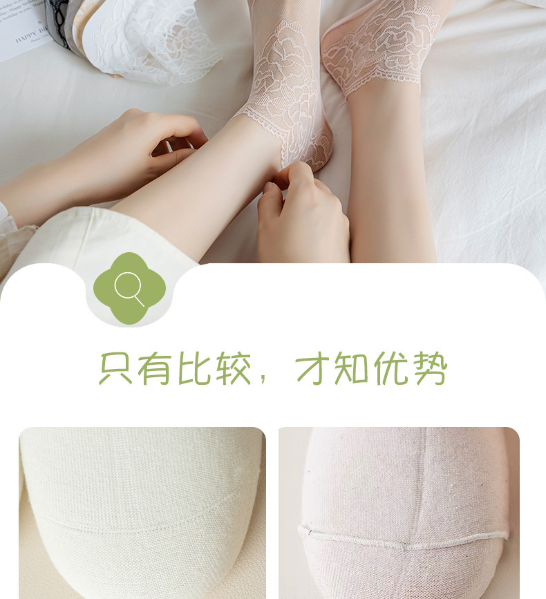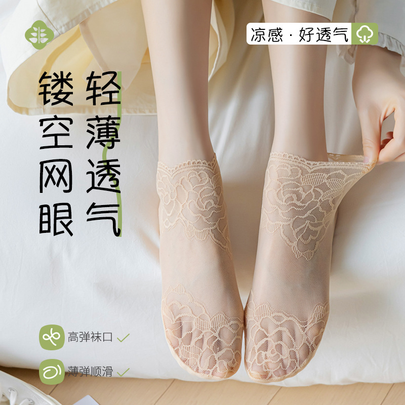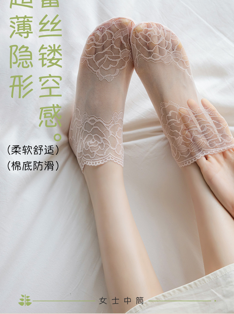 夏季镂空蕾丝隐形船袜不掉跟女士浅口袜棉底防滑短袜诸暨袜子