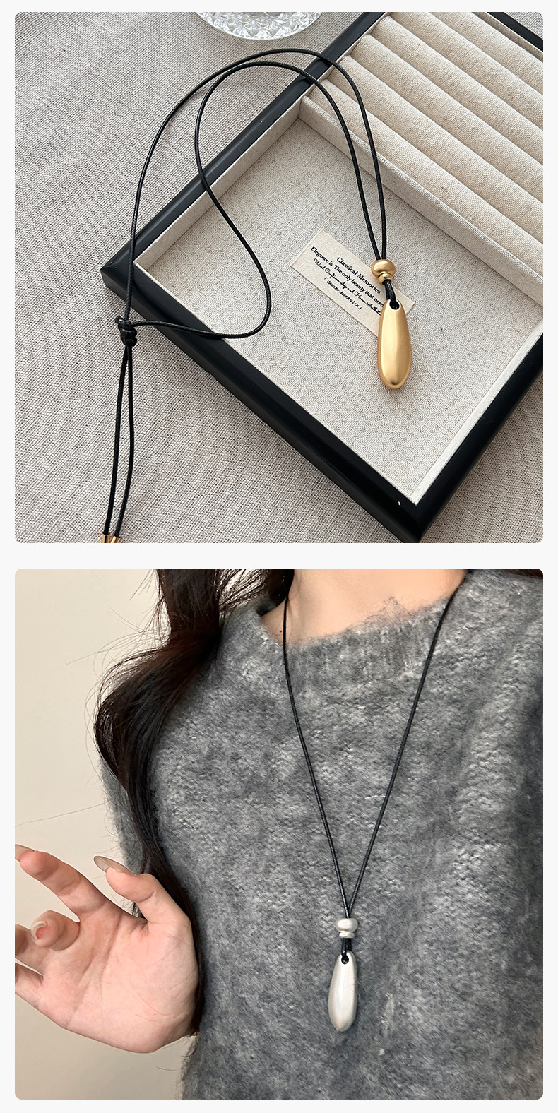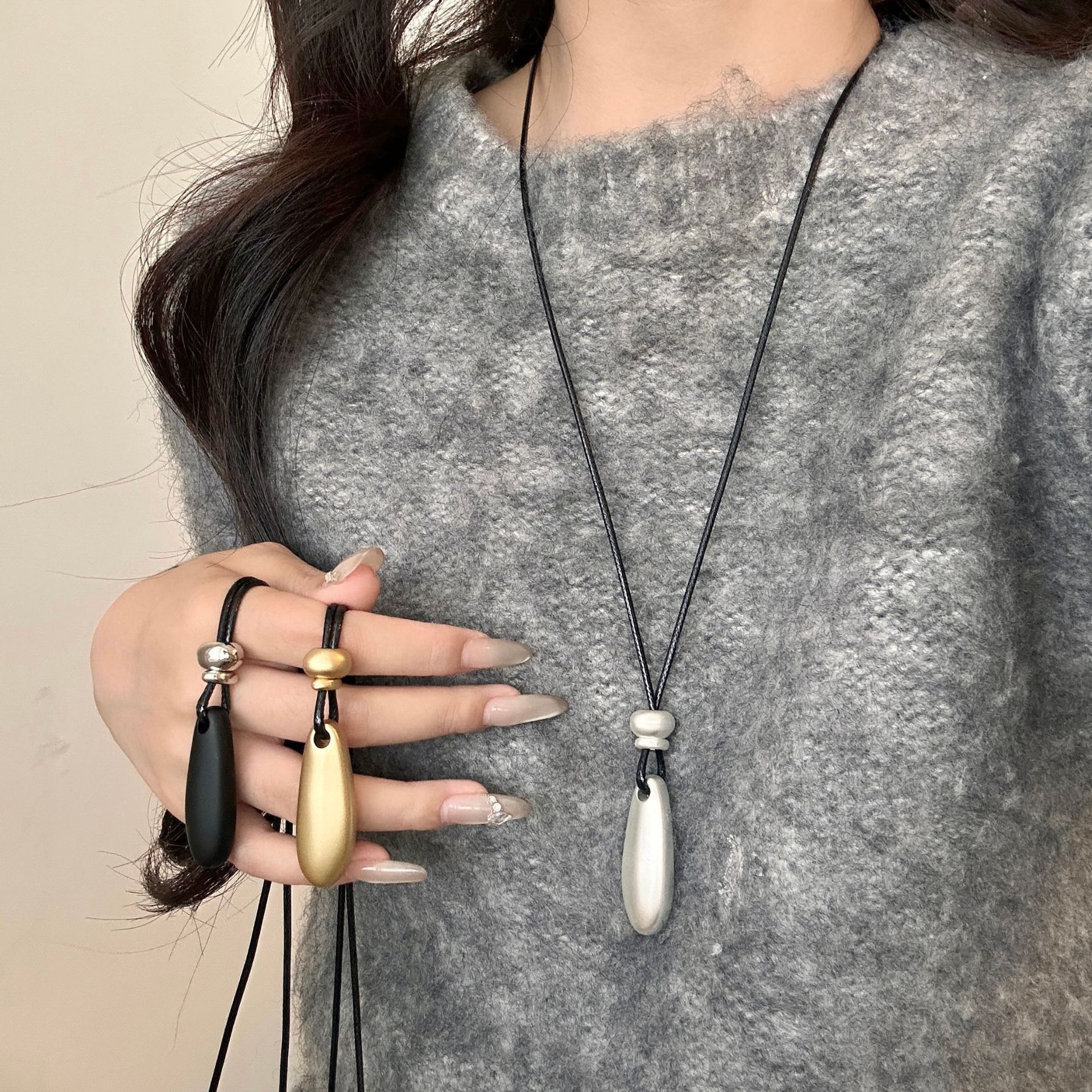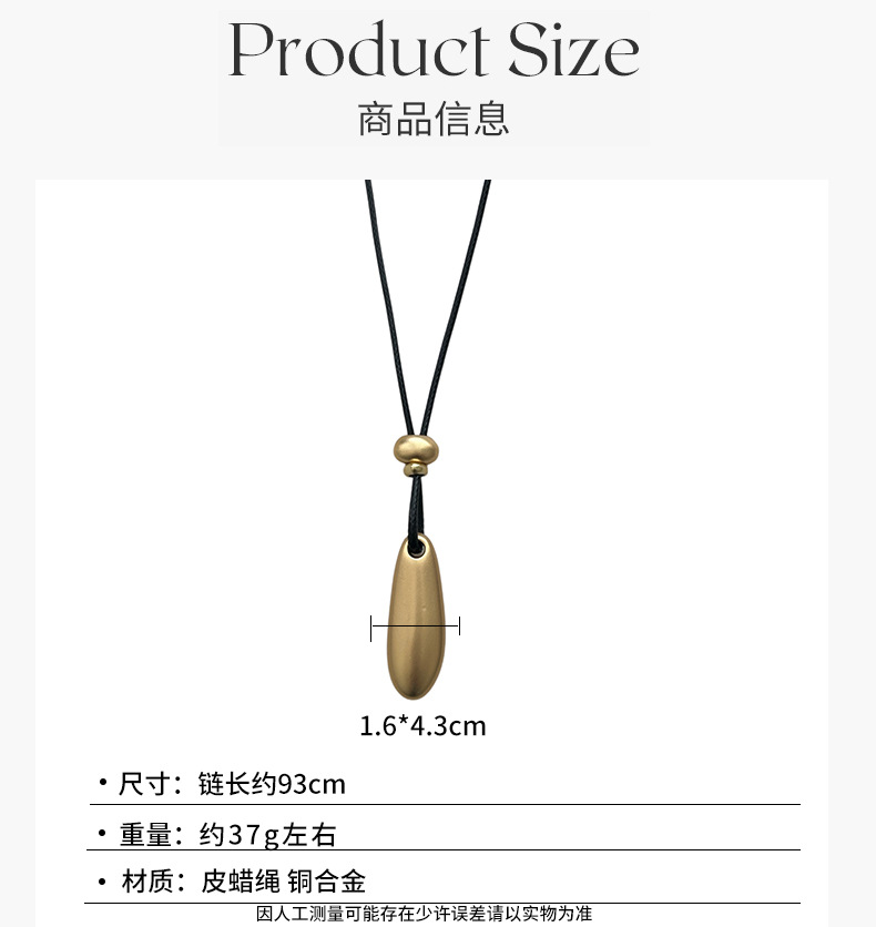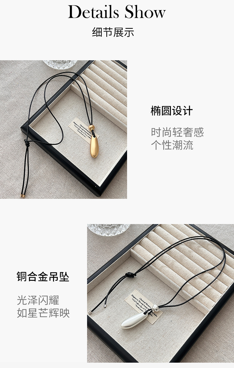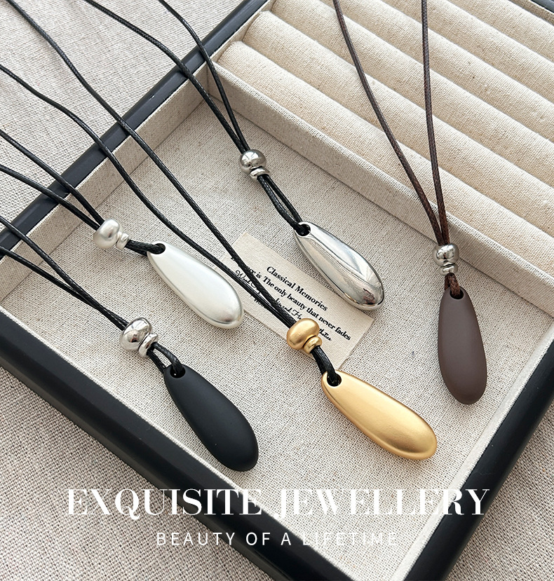 新款简约水滴形吊坠项链时尚气质高级感百搭皮绳长款毛衣链配饰女