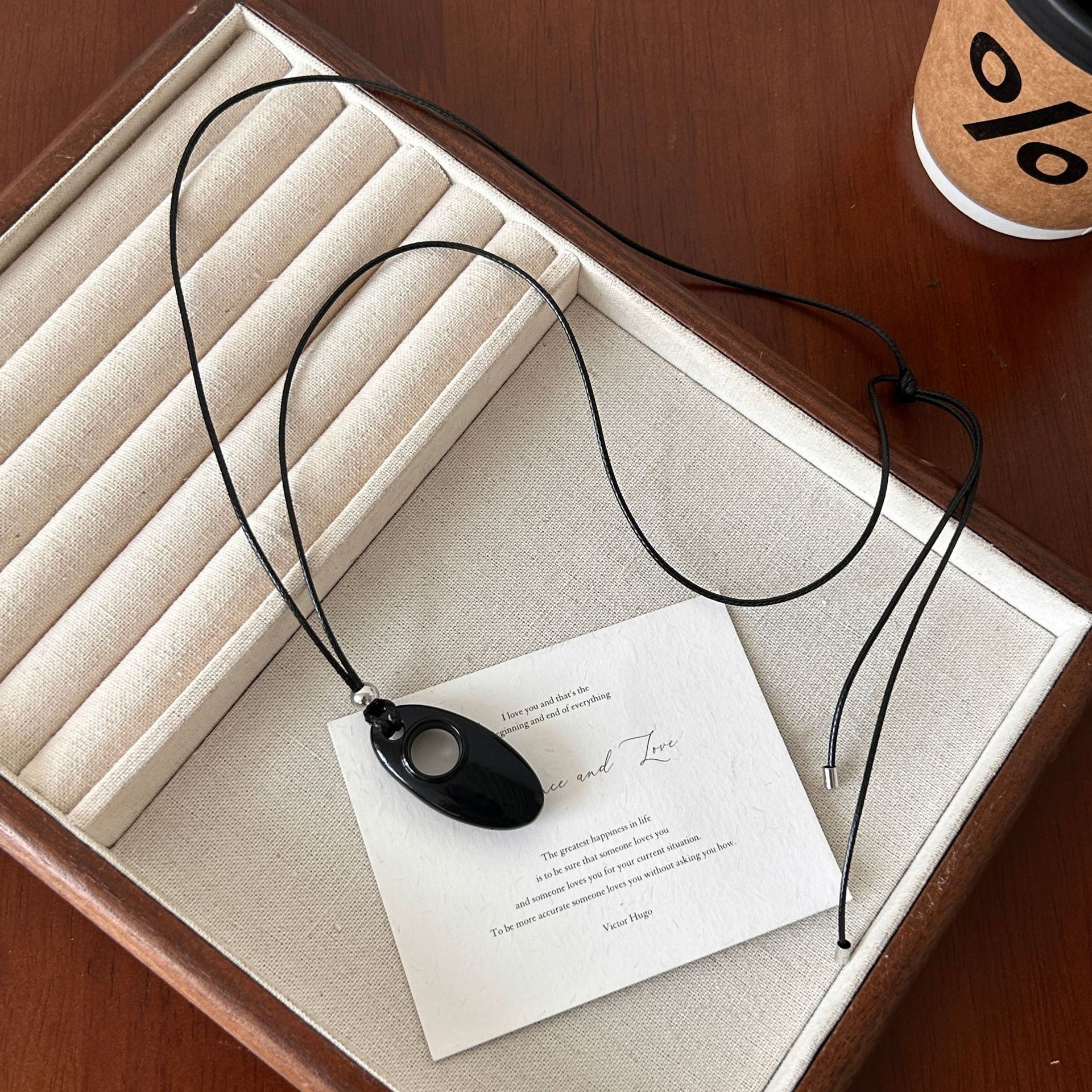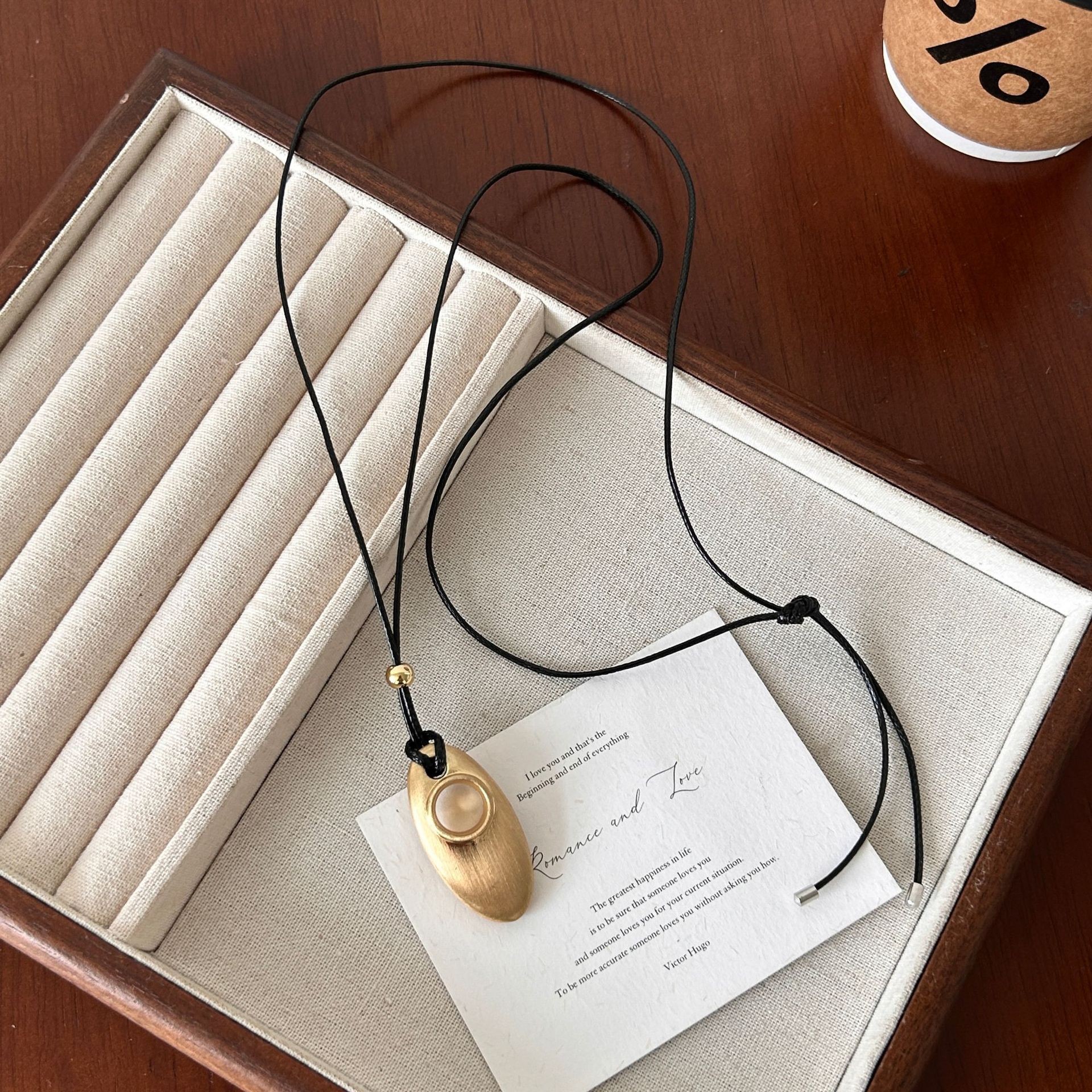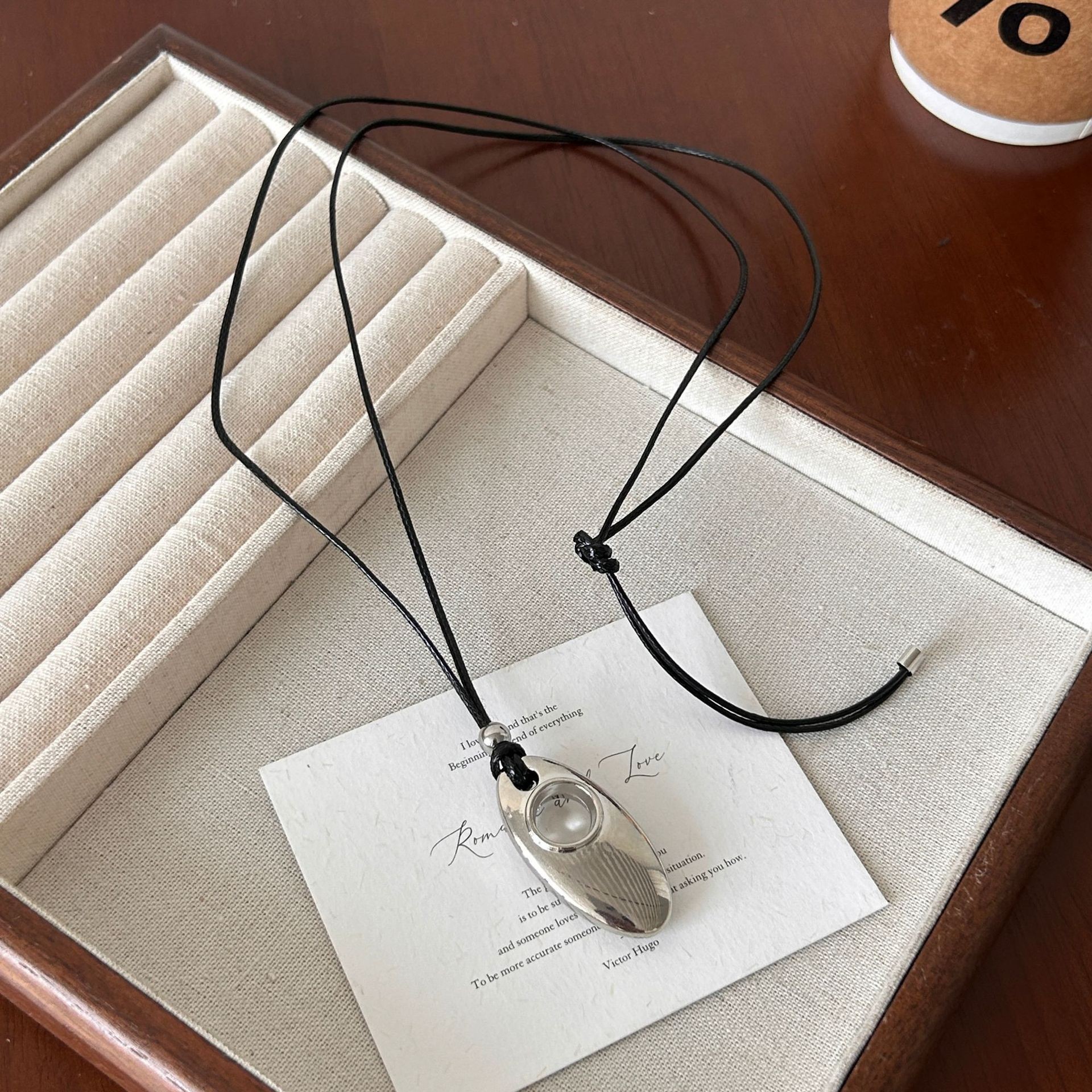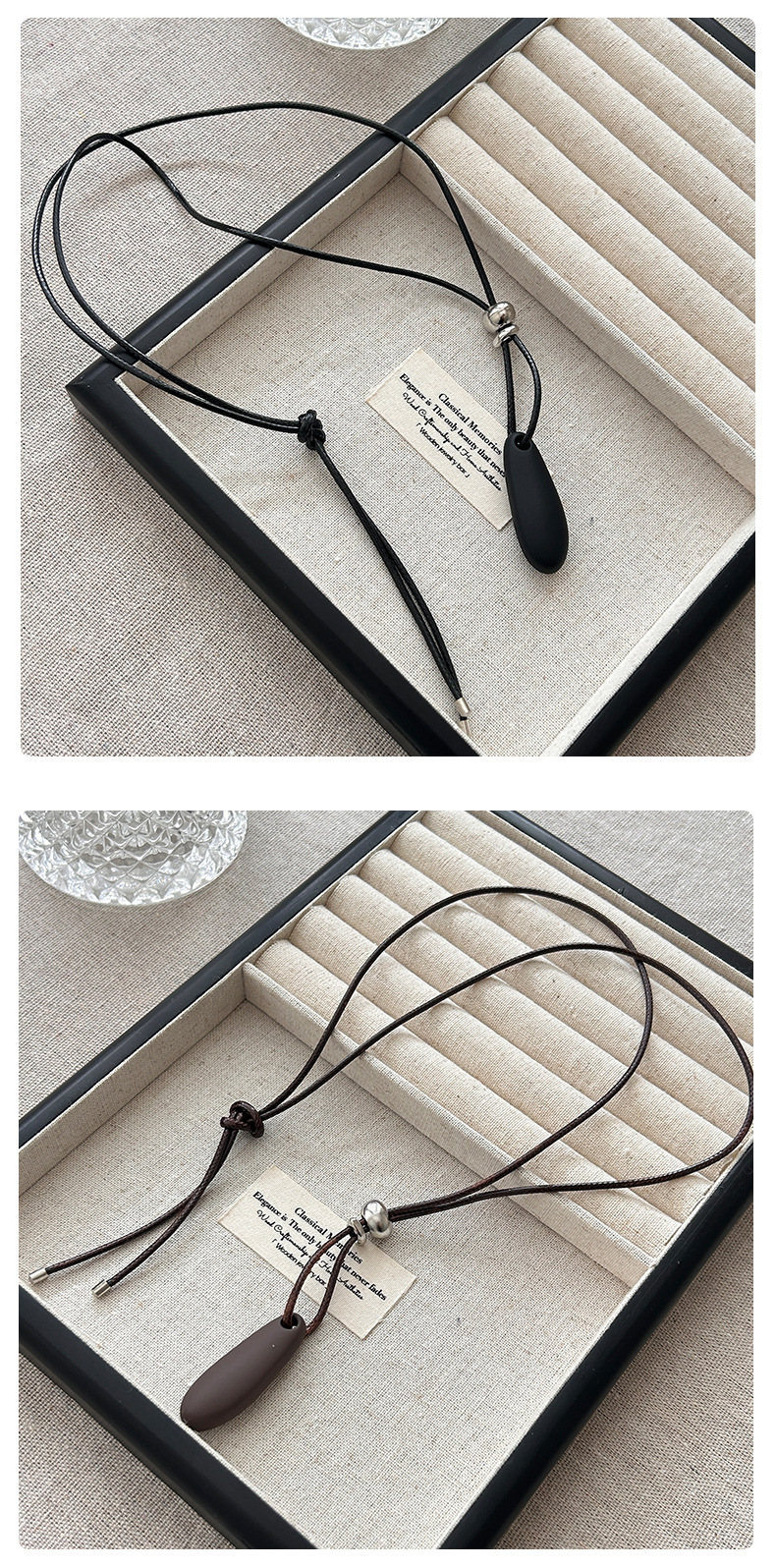 新款简约水滴形吊坠项链时尚气质高级感百搭皮绳长款毛衣链配饰女