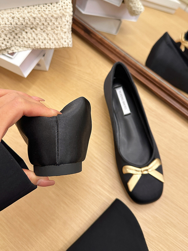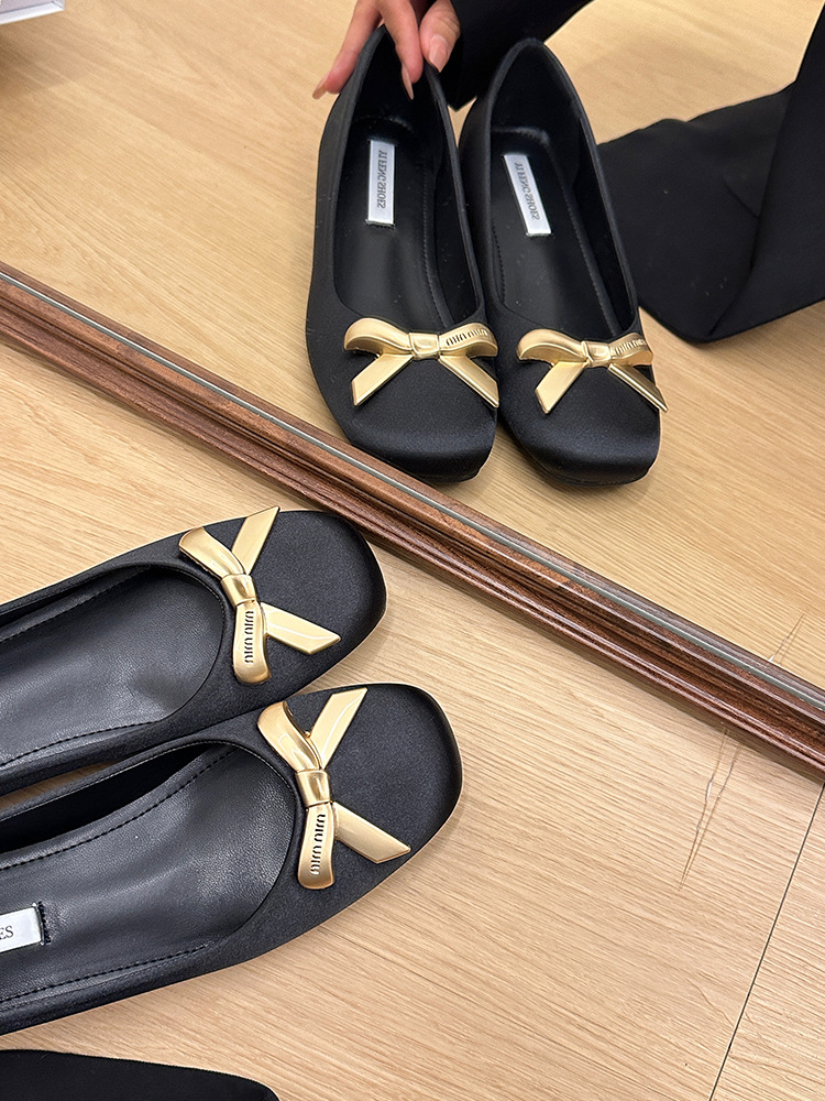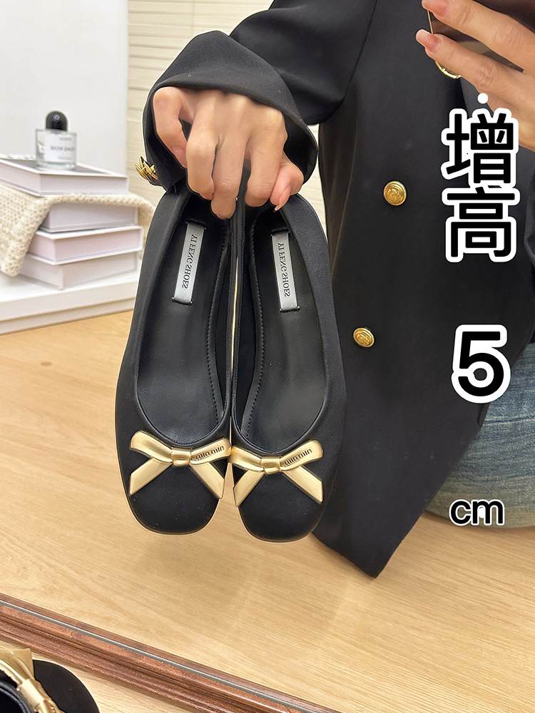 小个子内增高女鞋2025春秋新款蝴蝶结扣配裙子的鞋方头平底单鞋女