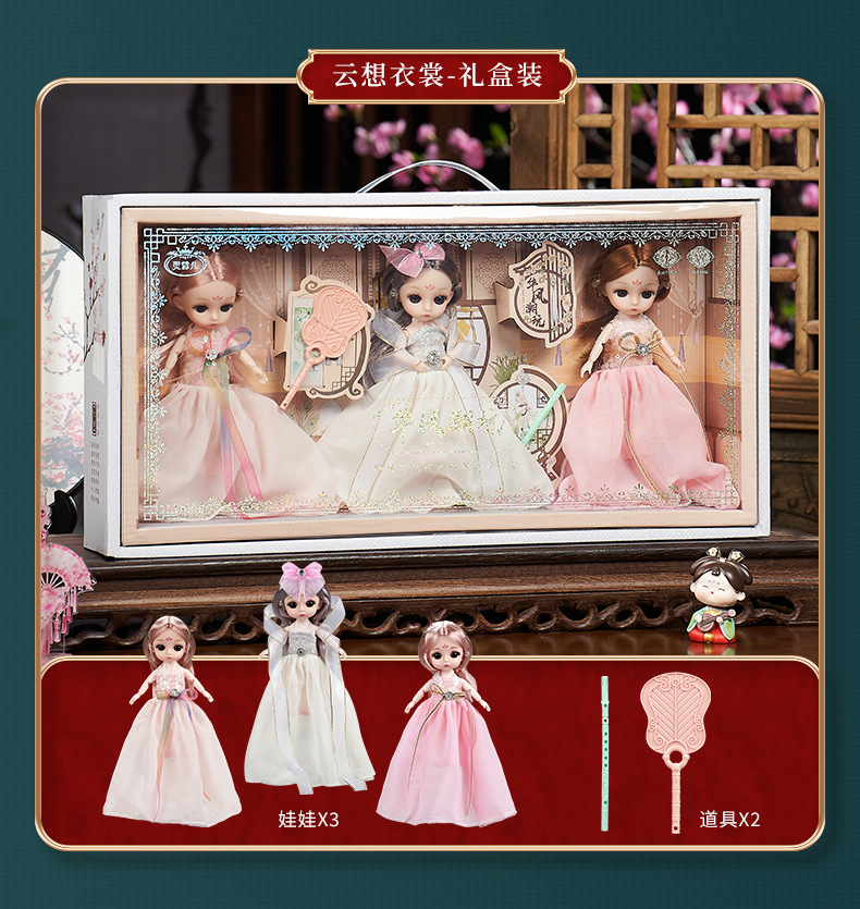新款灵雪儿古装琴棋书画公主换装娃娃女孩过家家玩具学生礼盒套装