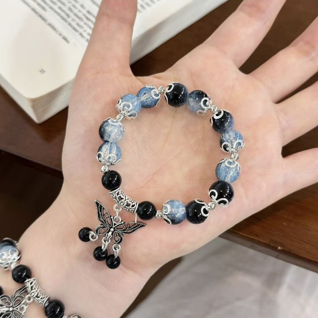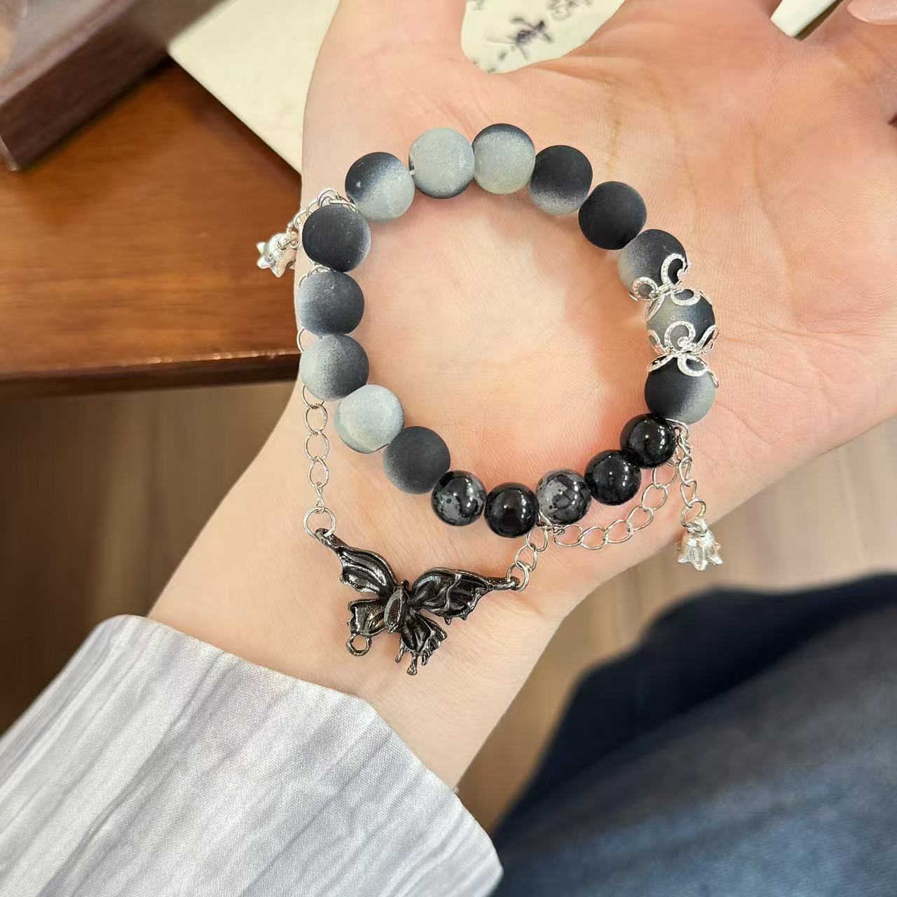 热卖潮酷暗黑系复古风手串墨曜蝴蝶月光小众男酷情侣学生礼物手饰