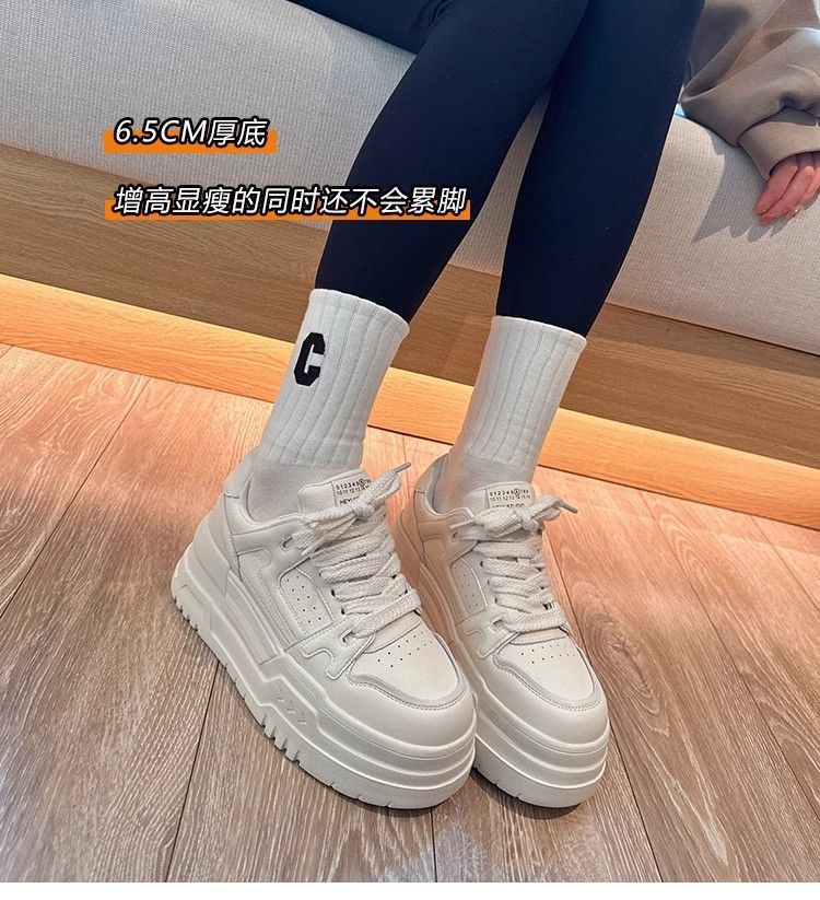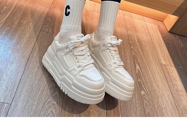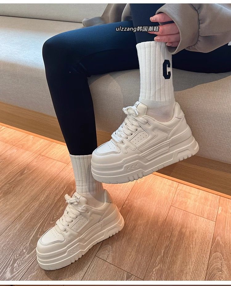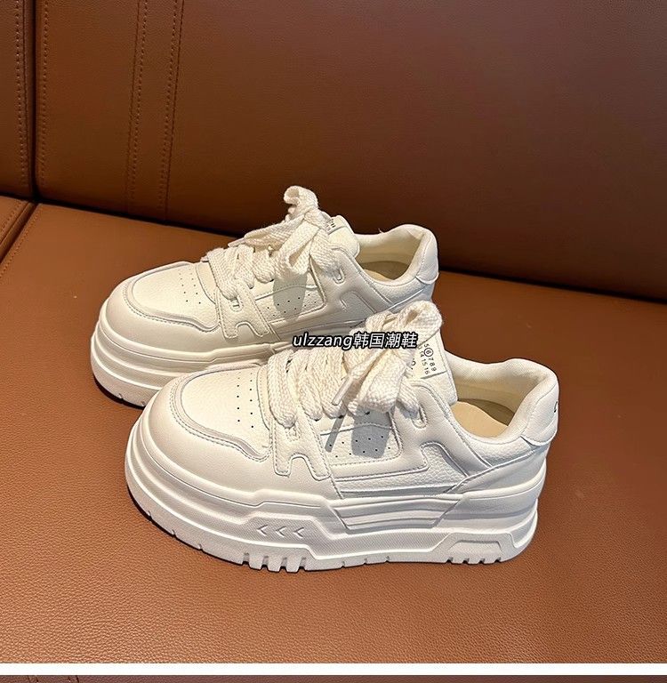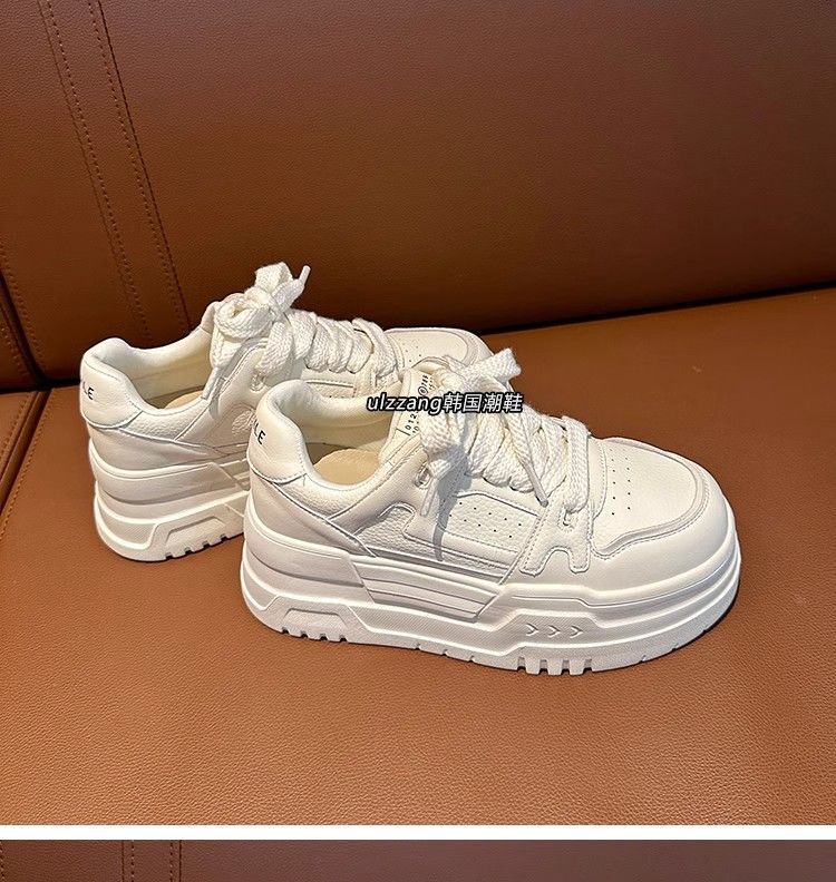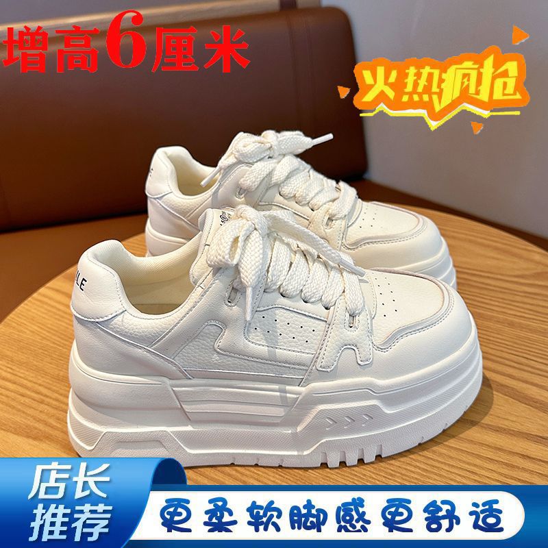 软皮厚底小白鞋子女2025秋季新款高颜值百搭增高板鞋休闲运动鞋