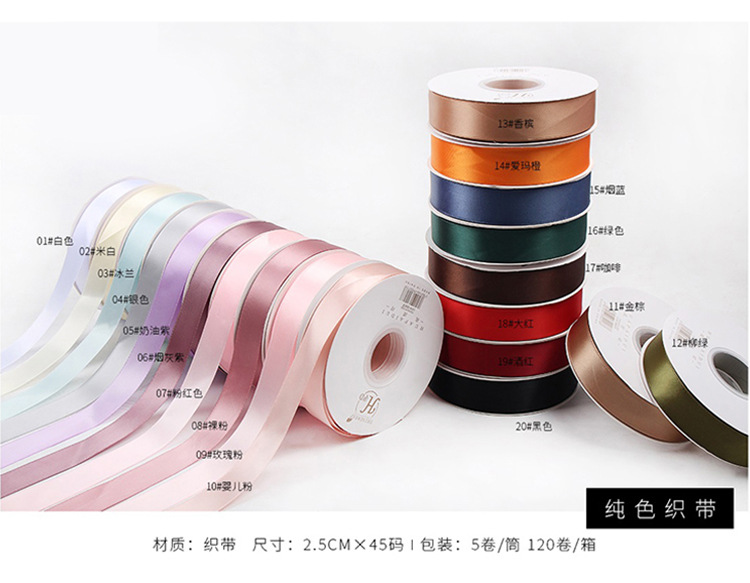 禧花侬 2.5cm纯色涤纶织带 鲜花包装丝带花艺礼品蝴蝶结花店材料