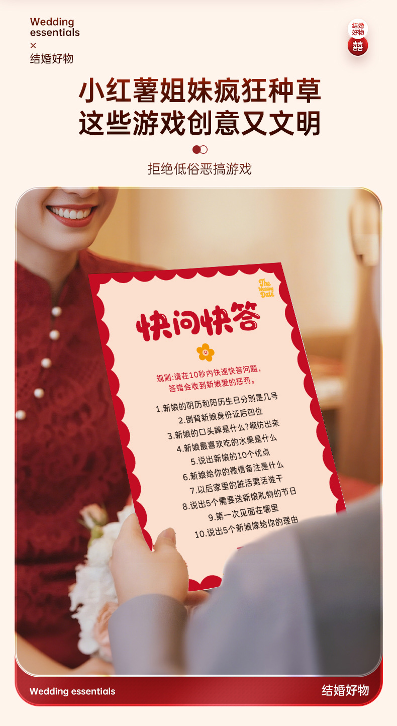 结婚晨袍接亲游戏拍照道具2025新款婚礼快问快答互动婚庆用品大全