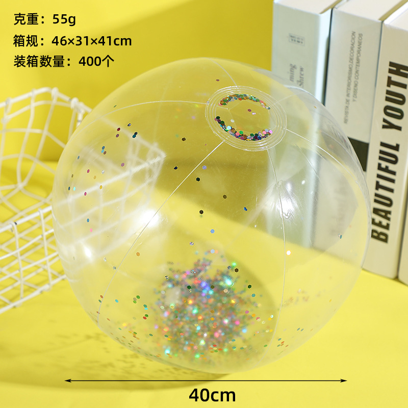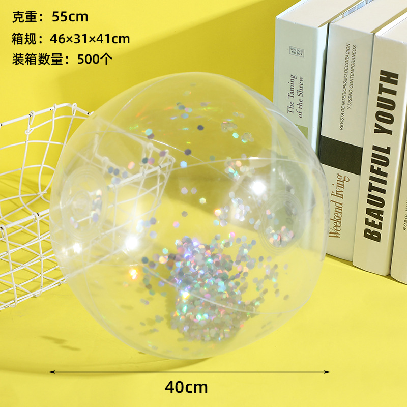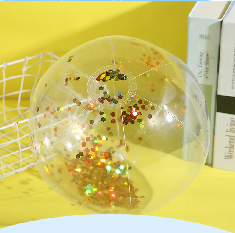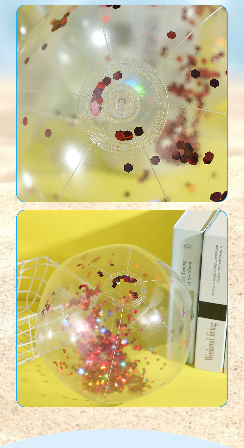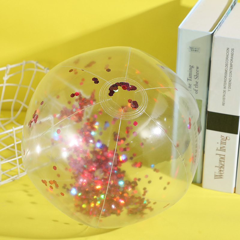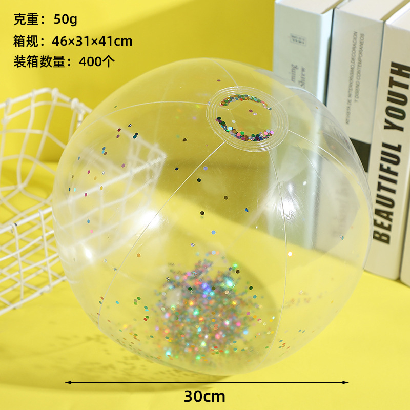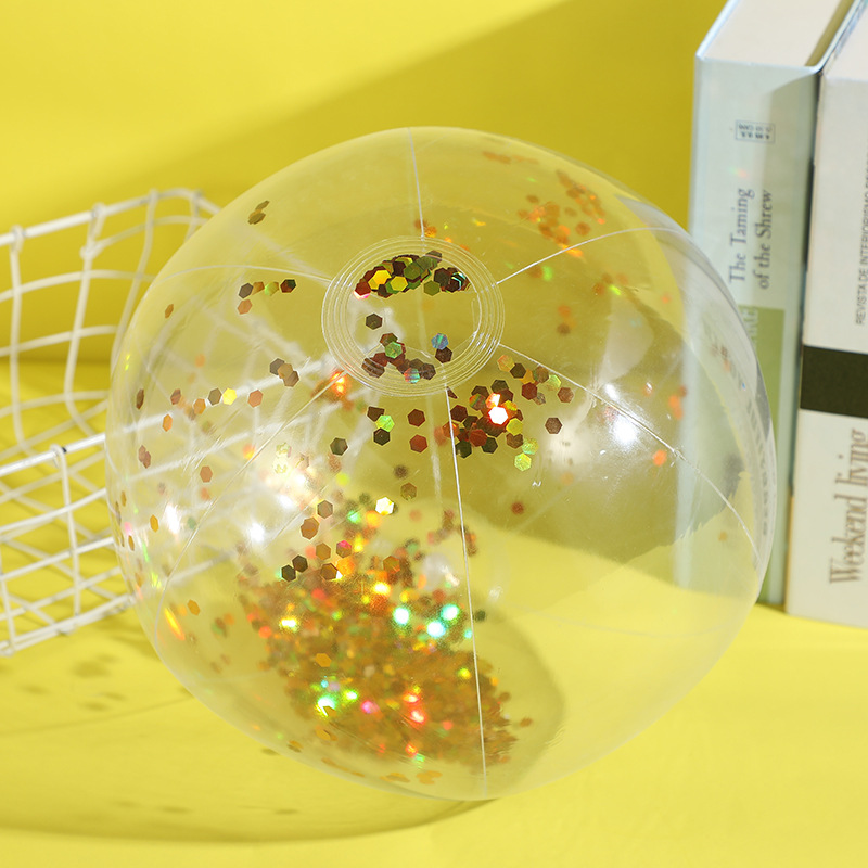 新款跨境热销充气亮片沙滩球闪光球水上玩具家庭派对道具沙滩球