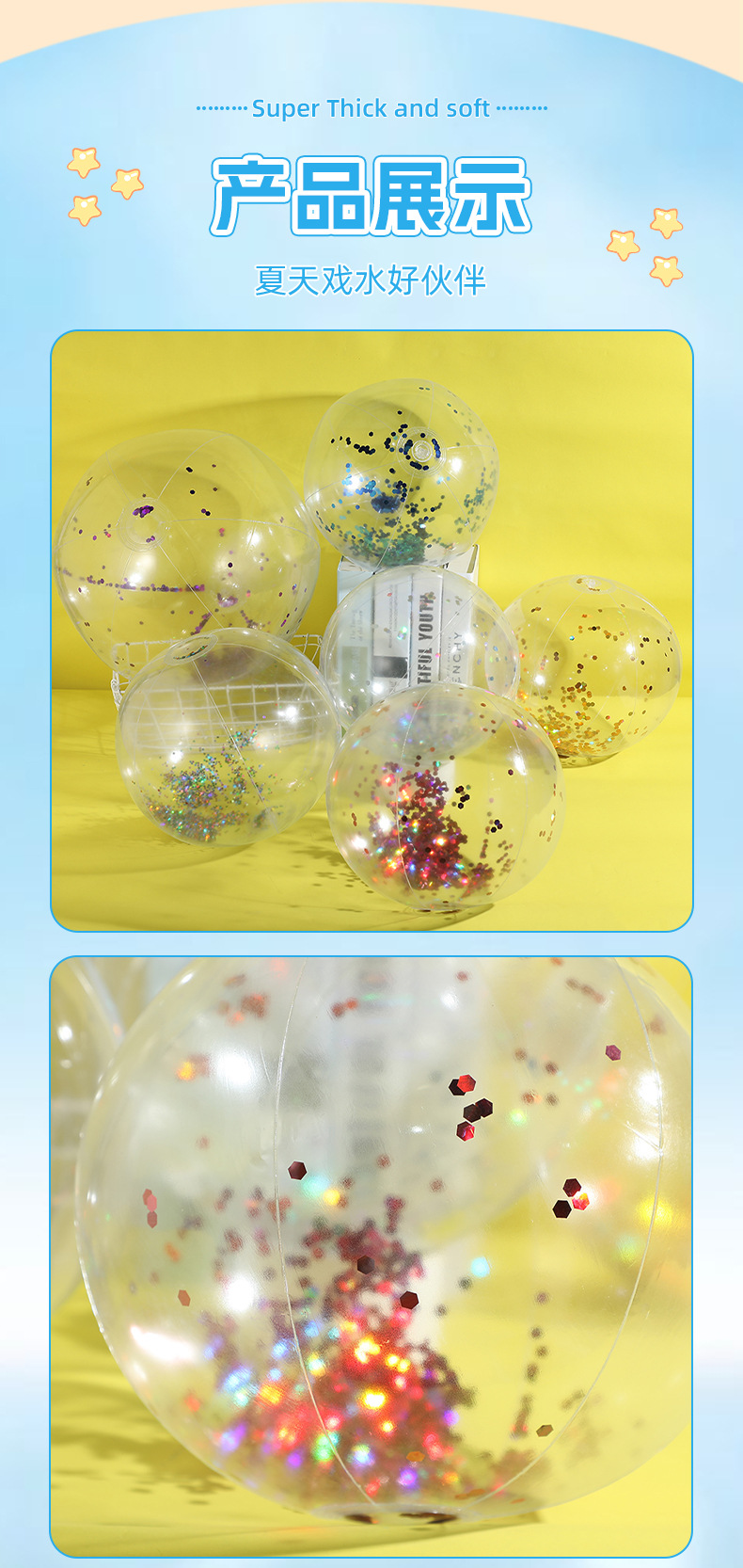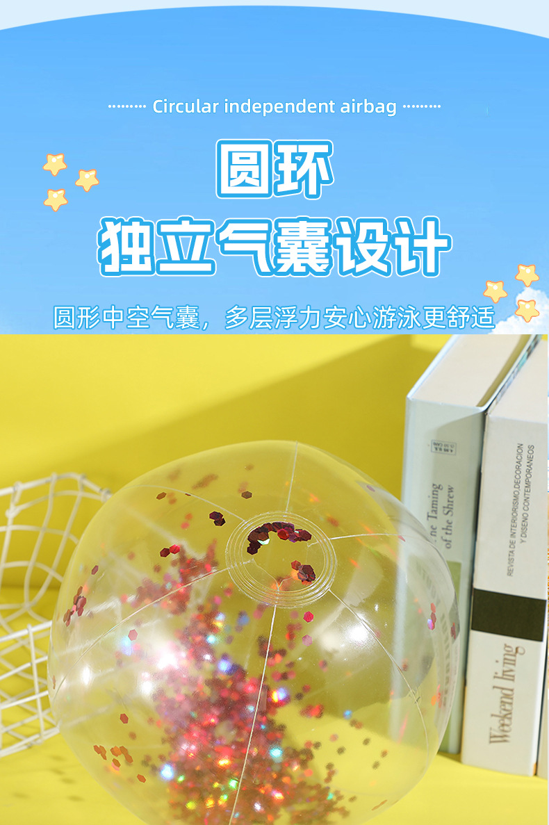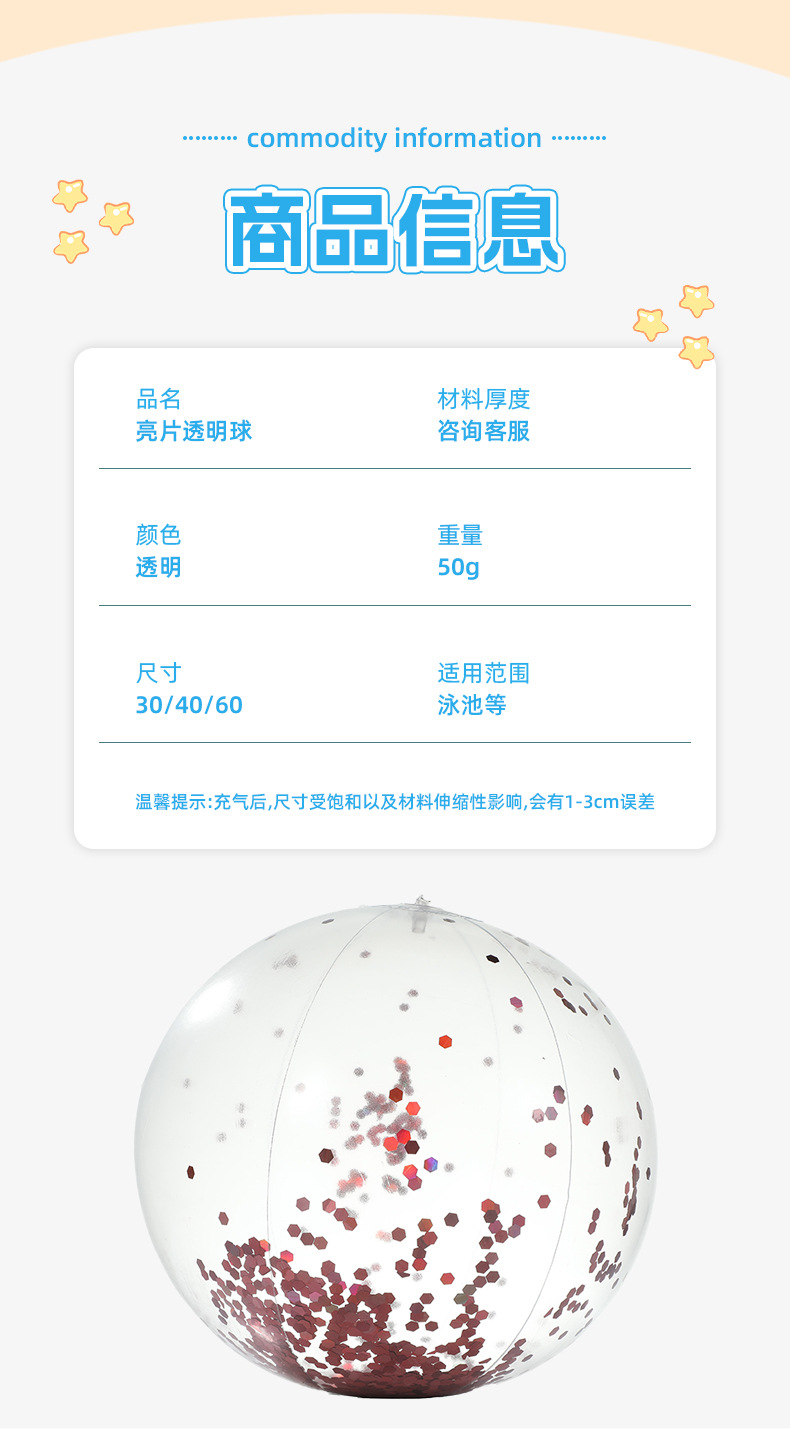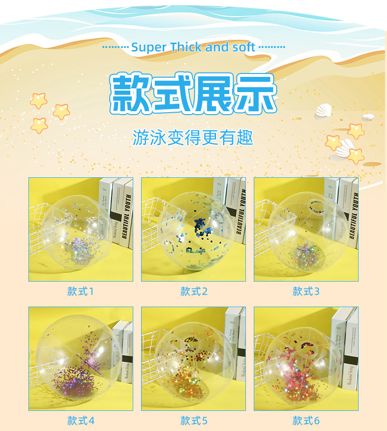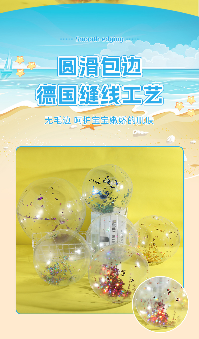 新款跨境热销充气亮片沙滩球闪光球水上玩具家庭派对道具沙滩球