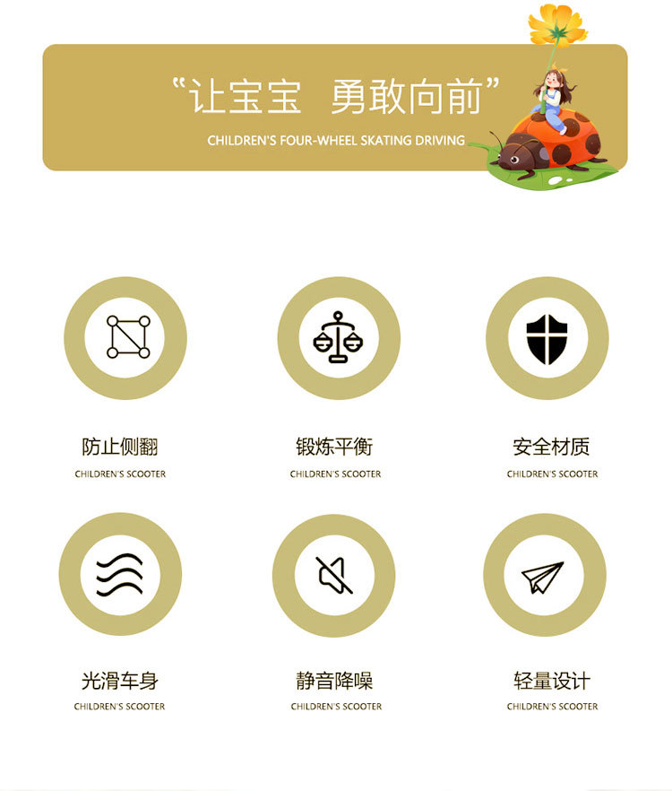 七星瓢虫滑行溜溜车1-3岁男女孩宝宝室内滑滑玩具童车静音轮
