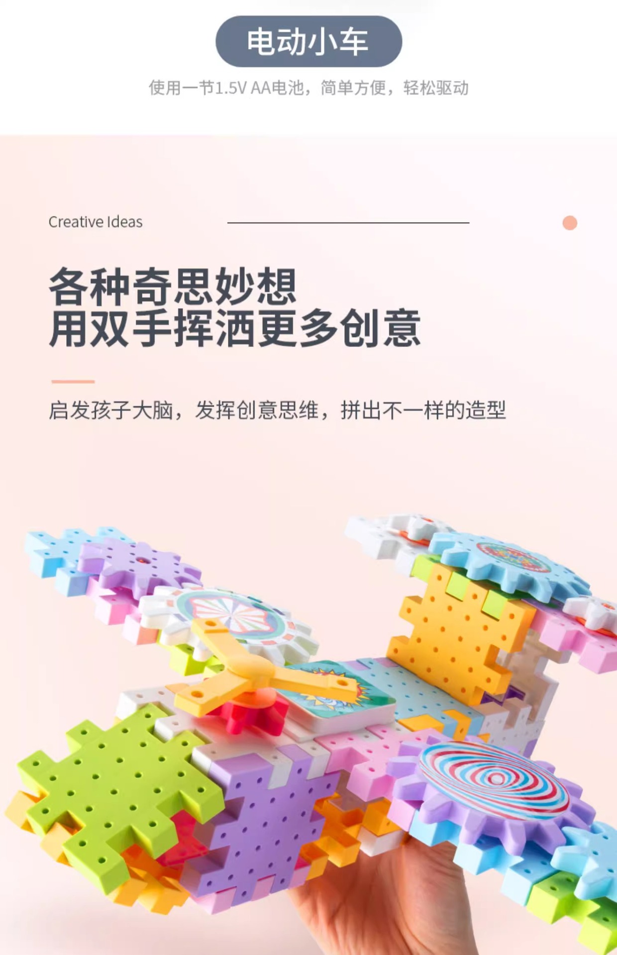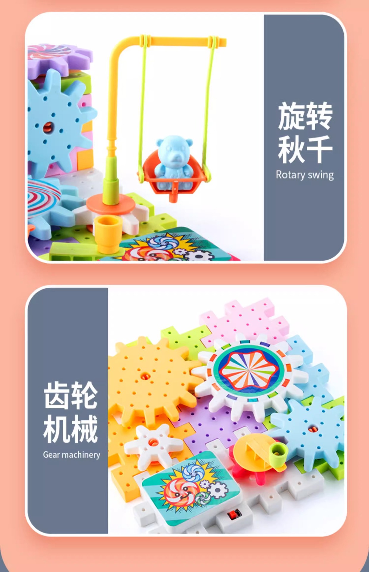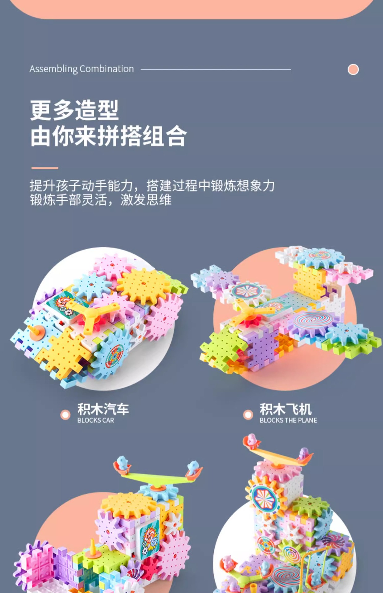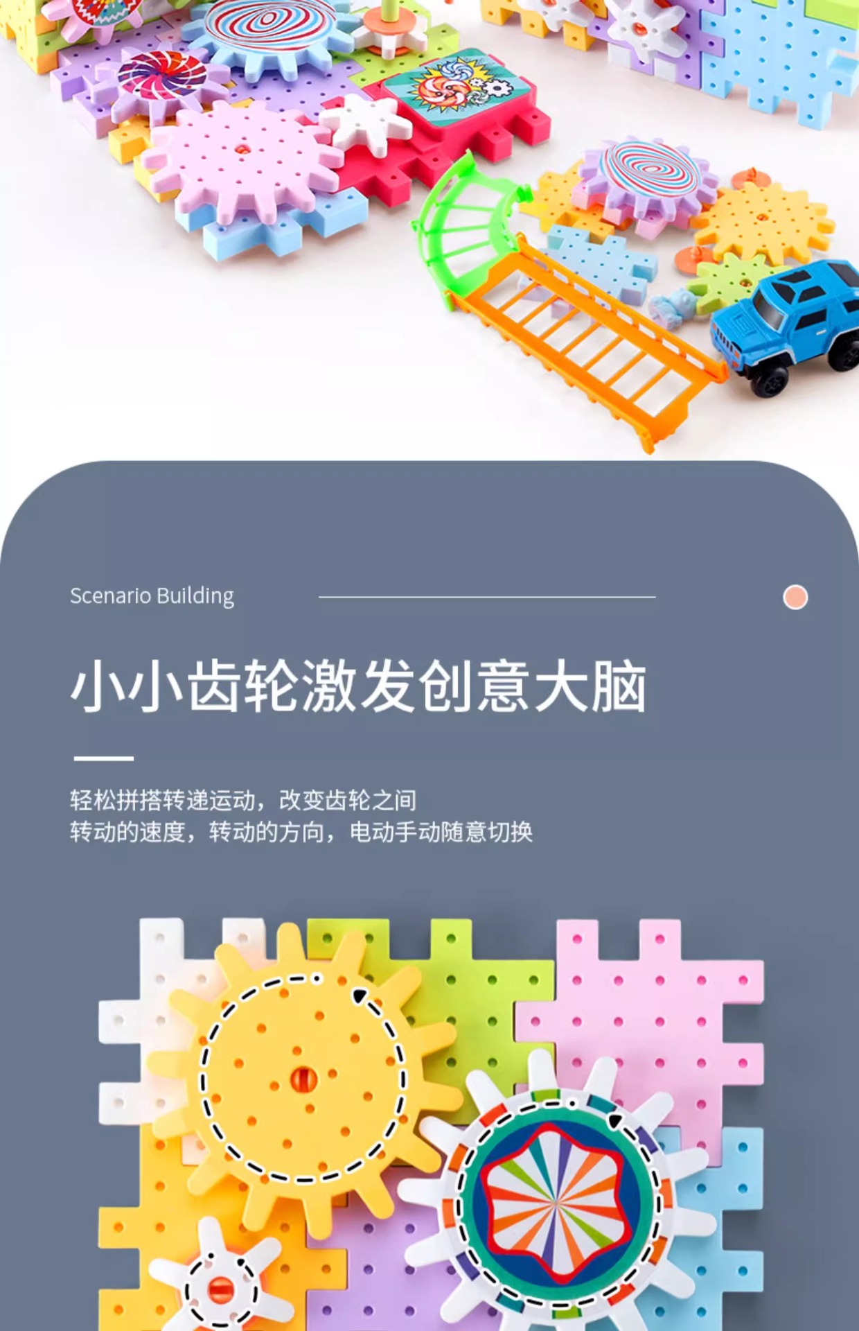 百变电动积木齿轮旋转玩具拼插益智83大颗粒拼图套装男孩拼装玩具