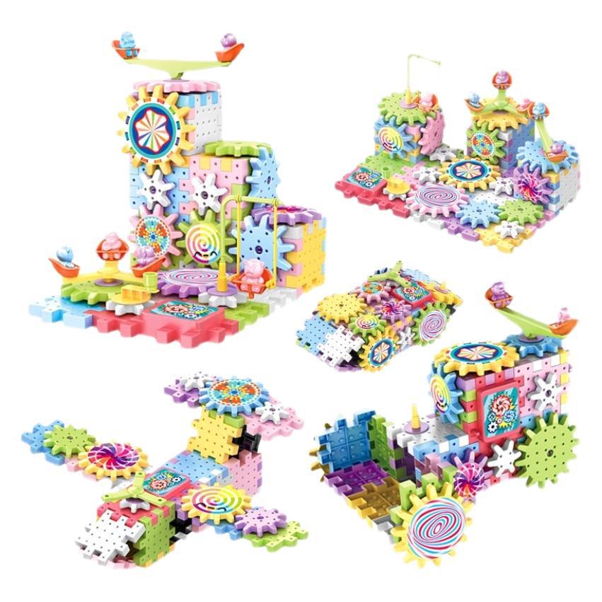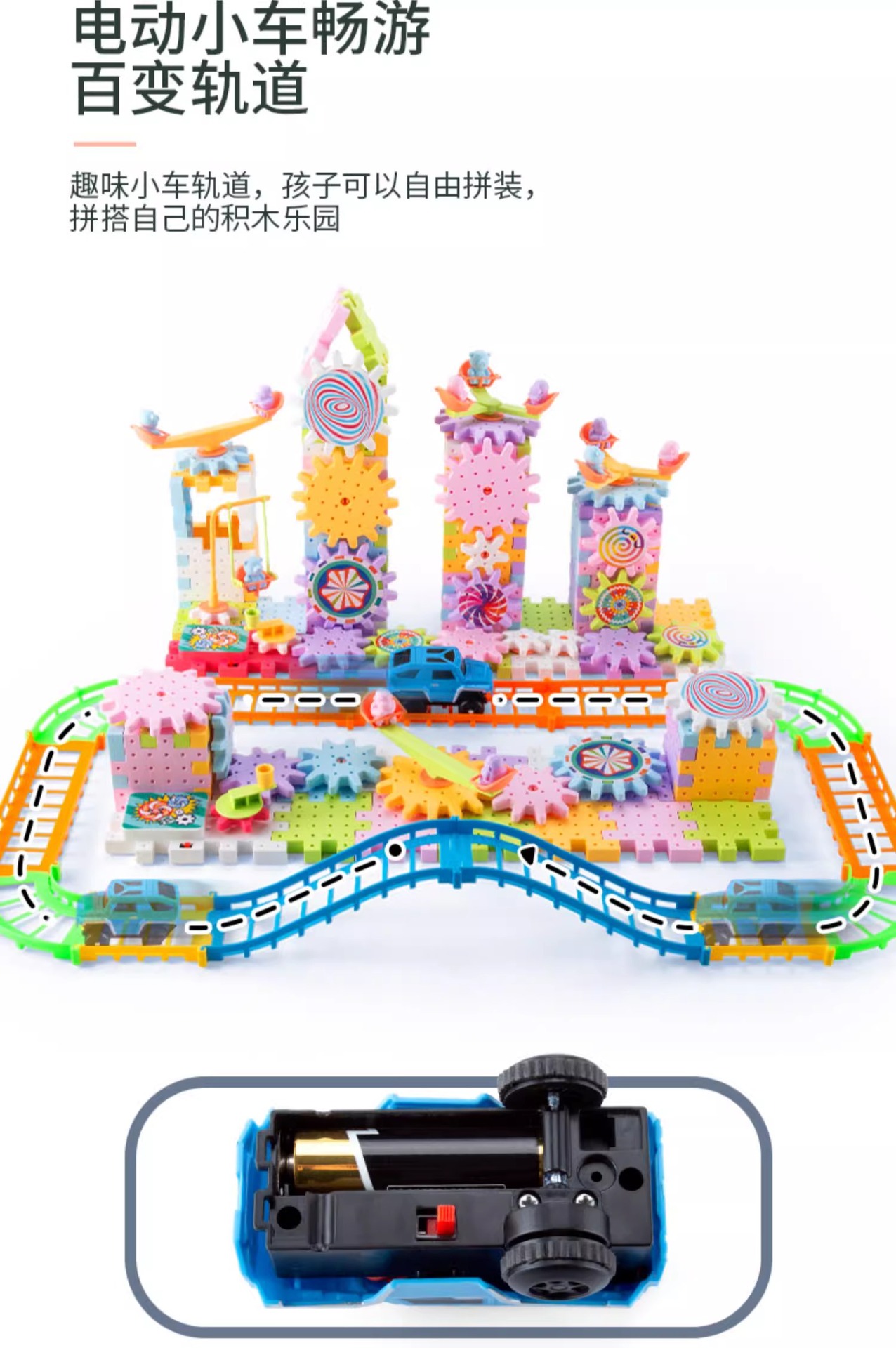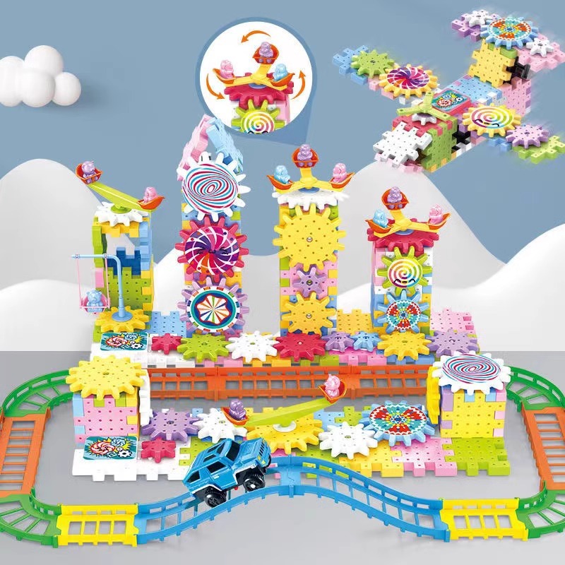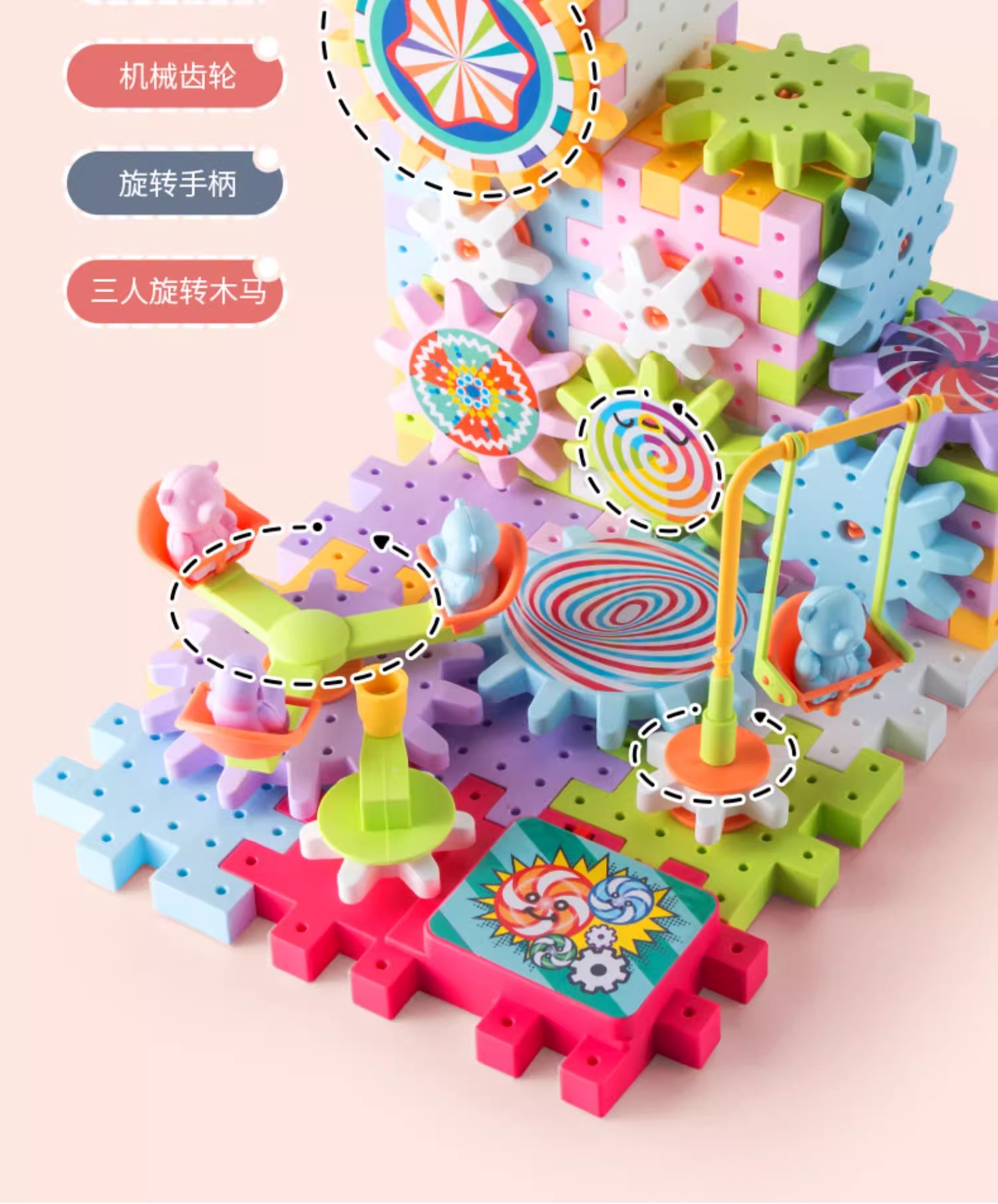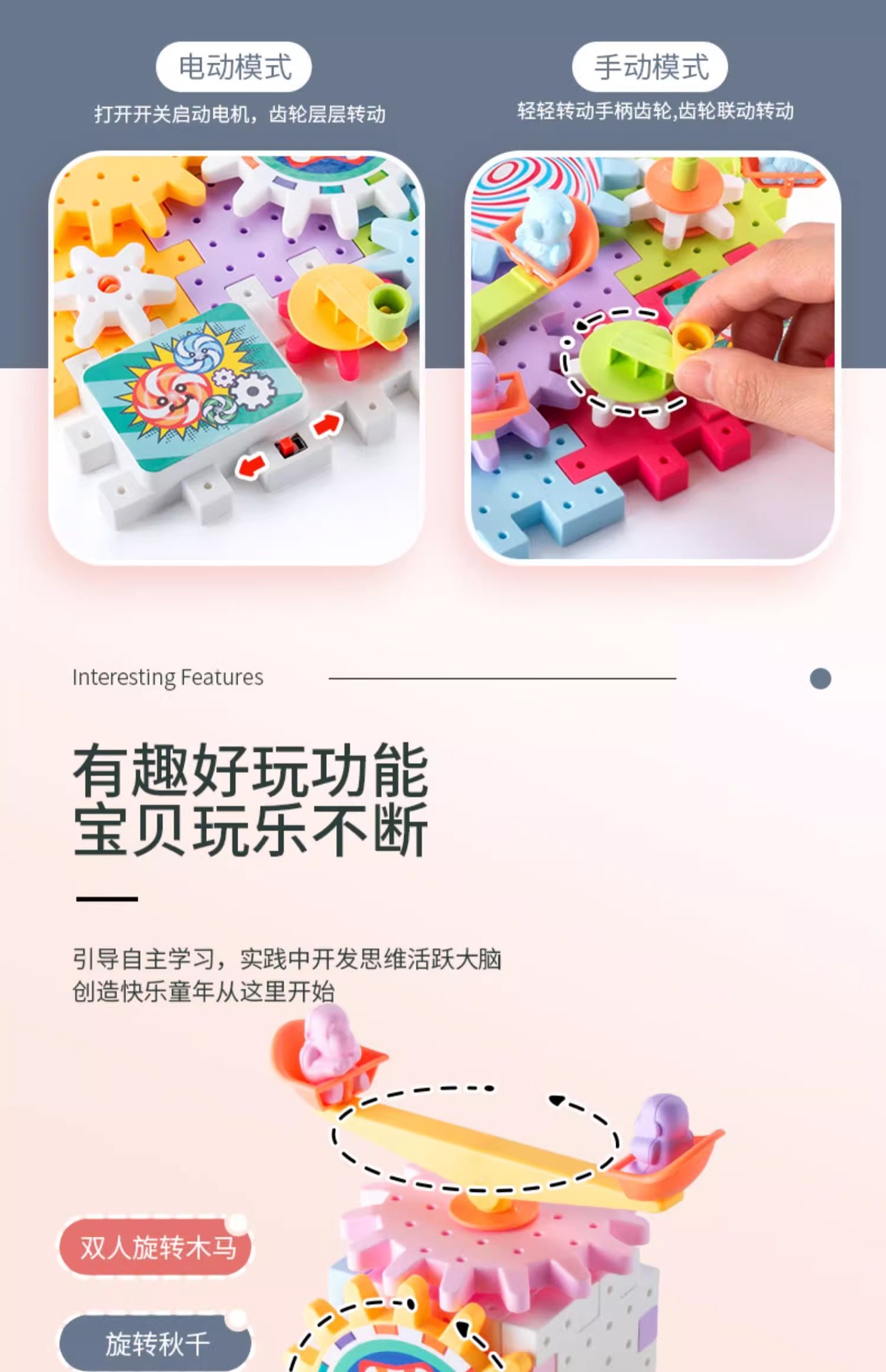 百变电动积木齿轮旋转玩具拼插益智83大颗粒拼图套装男孩拼装玩具
