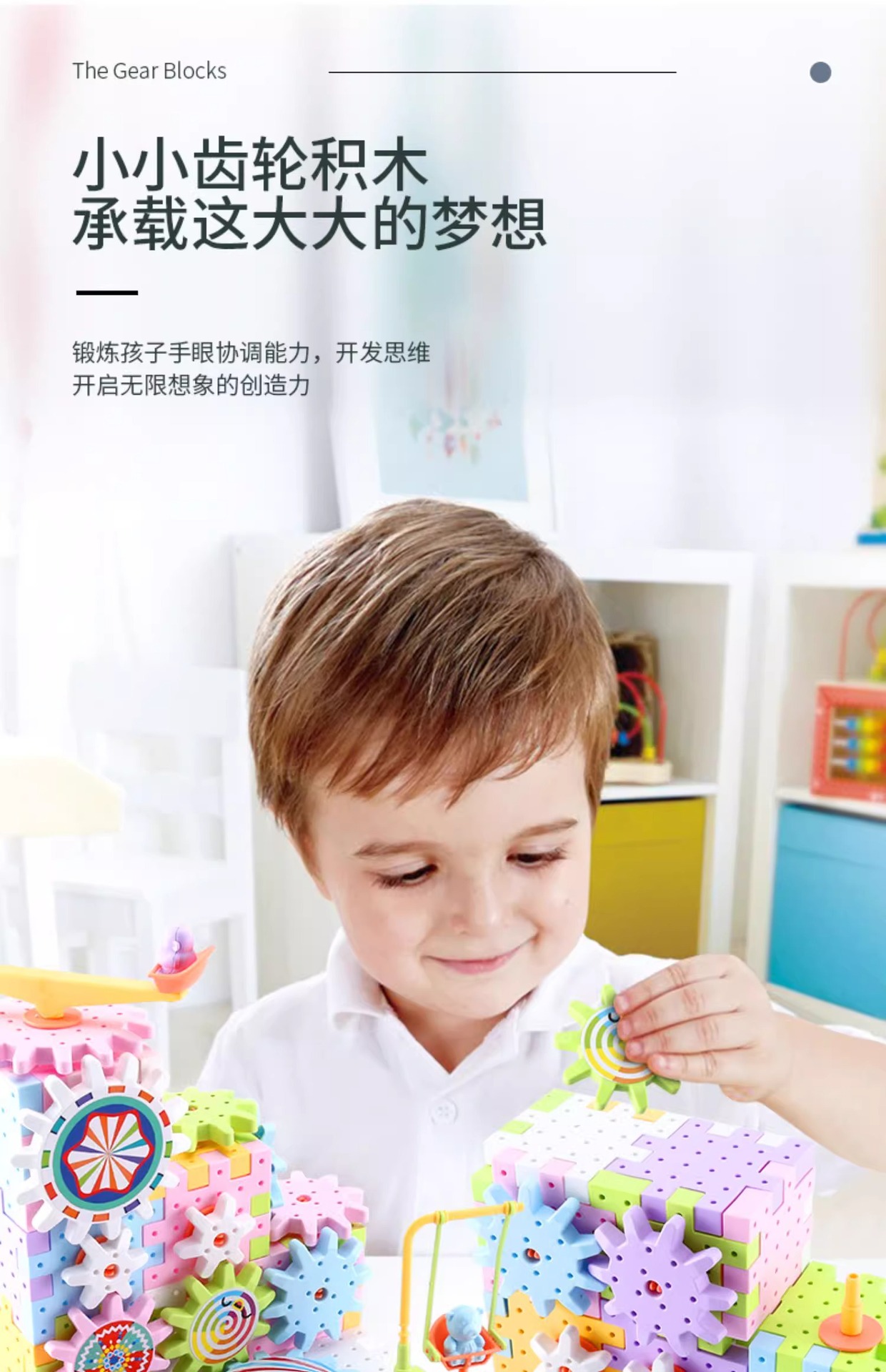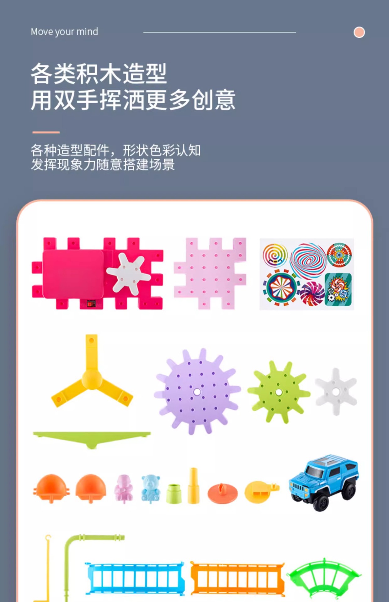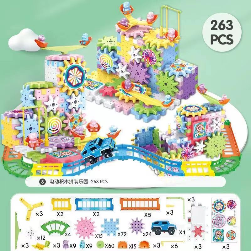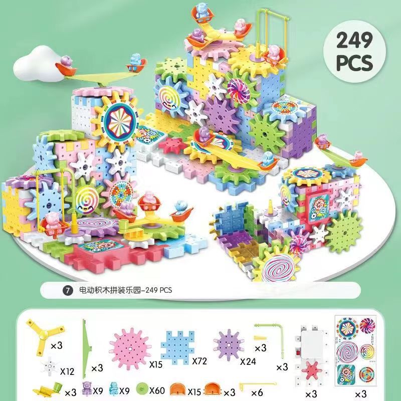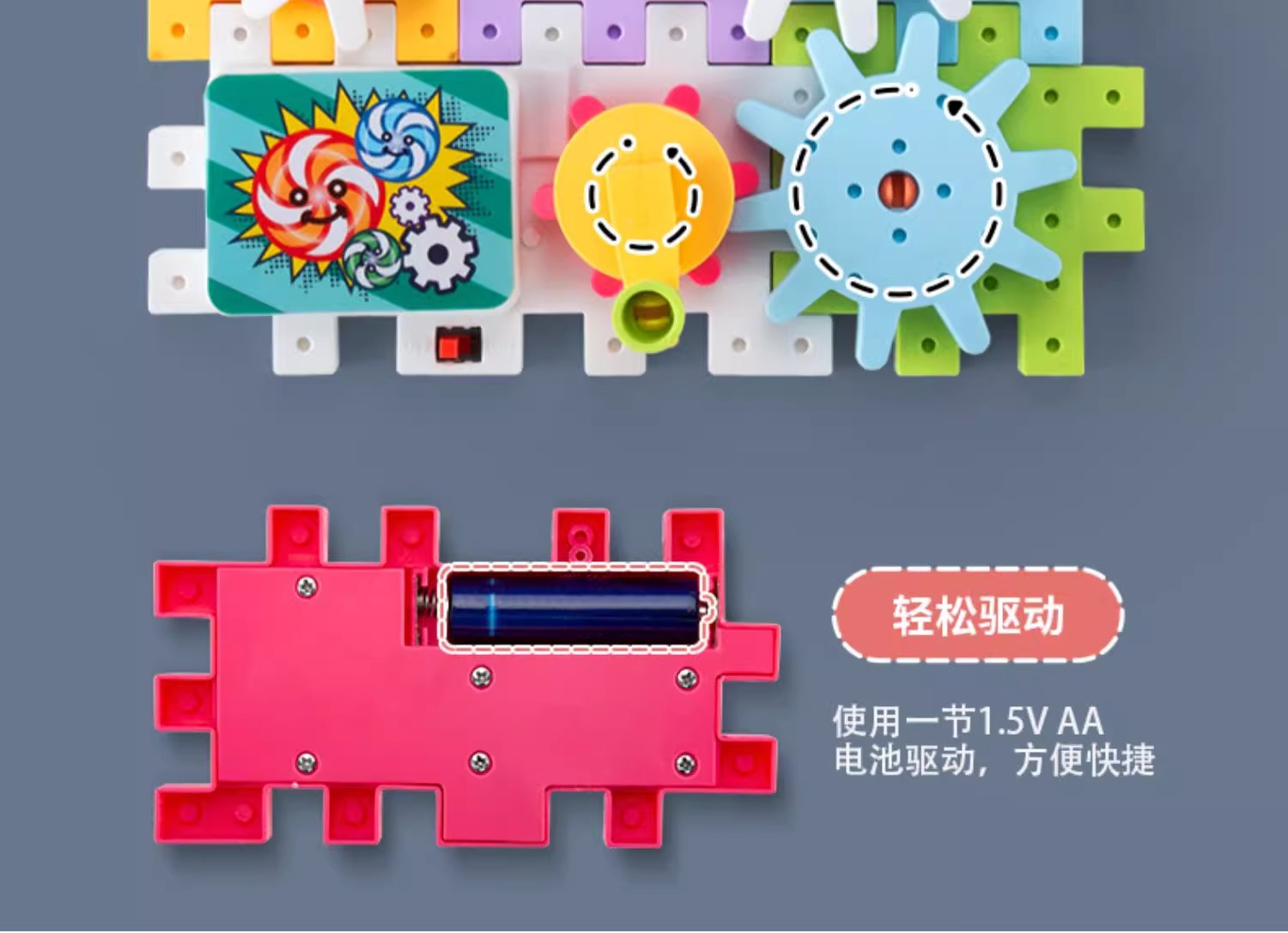 百变电动积木齿轮旋转玩具拼插益智83大颗粒拼图套装男孩拼装玩具