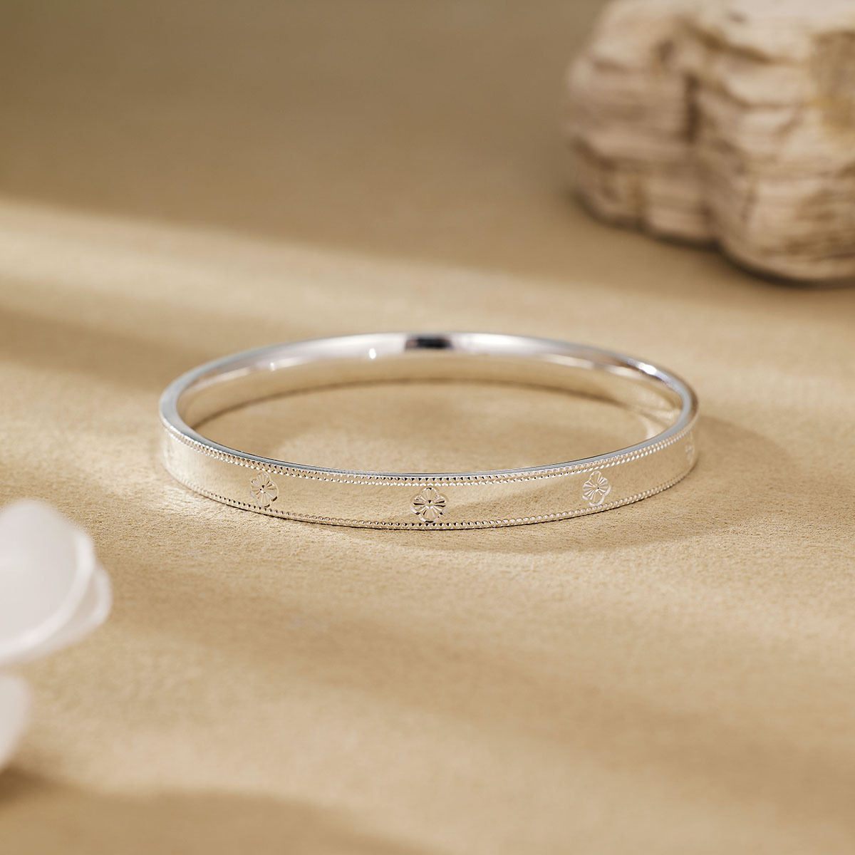 国潮四叶草手环花开富贵手镯可调节镯首饰手镯古法轻奢小众
