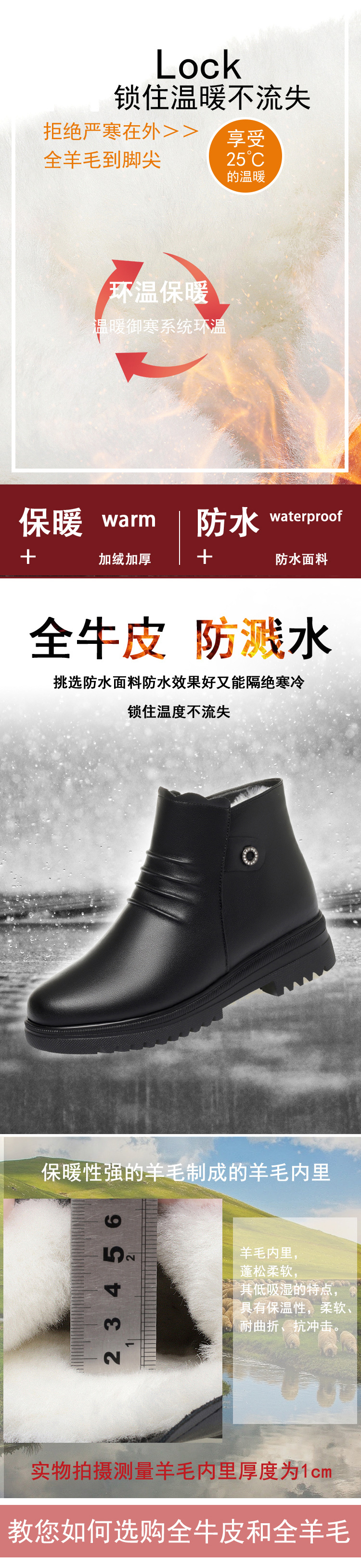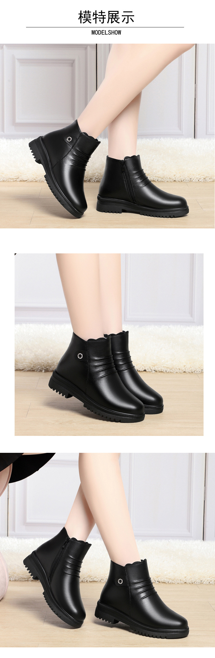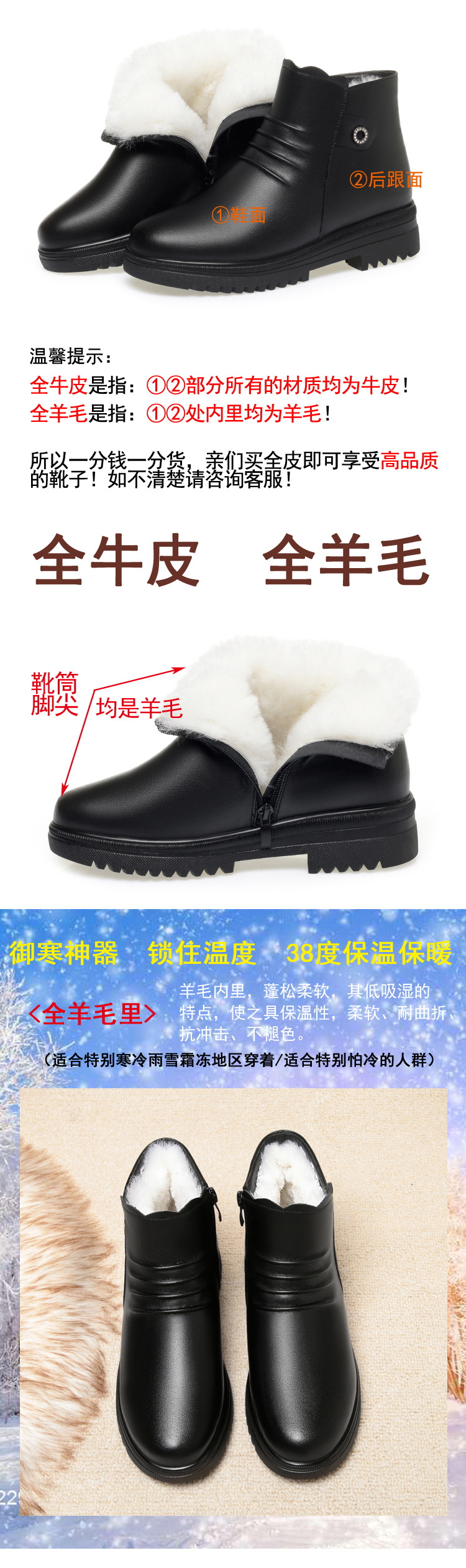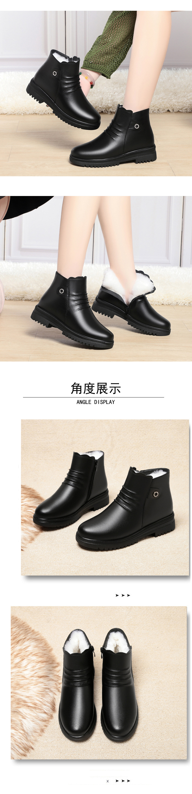 妈妈棉皮鞋平底防滑软底新款中老年冬季平跟加绒保暖短靴羊毛棉鞋