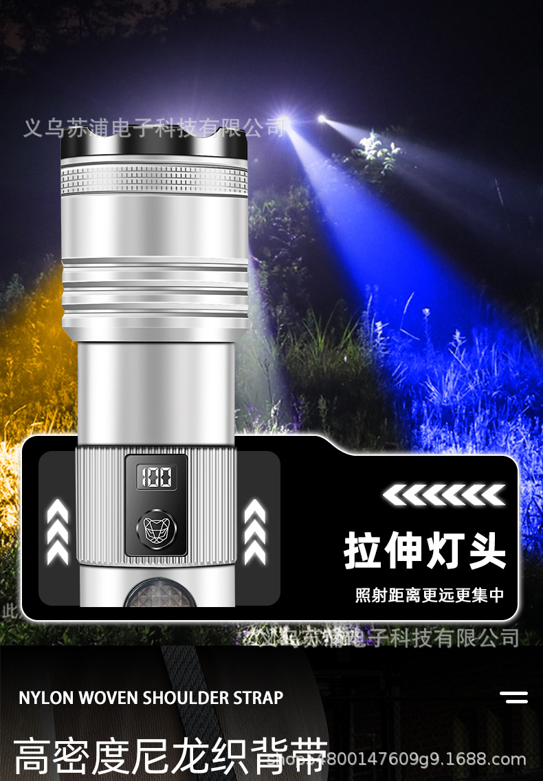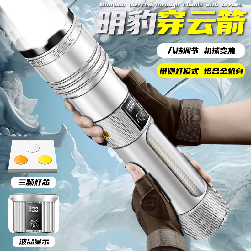 穿云箭手电筒强光远射可充电式超亮小型变焦户外家用便携led耐用