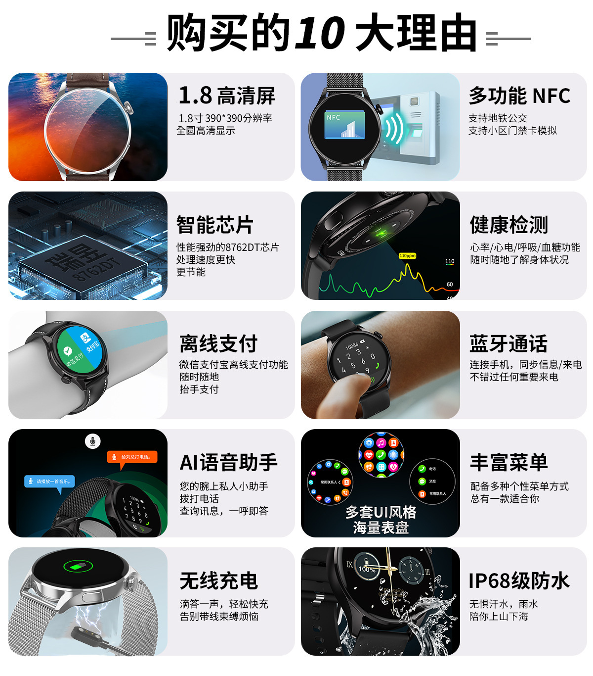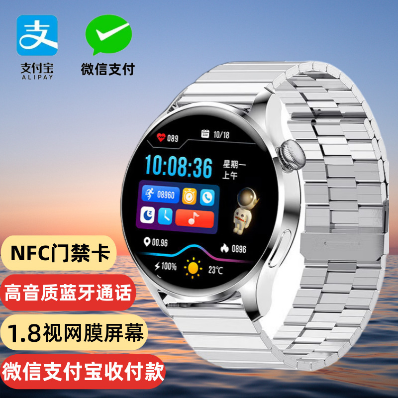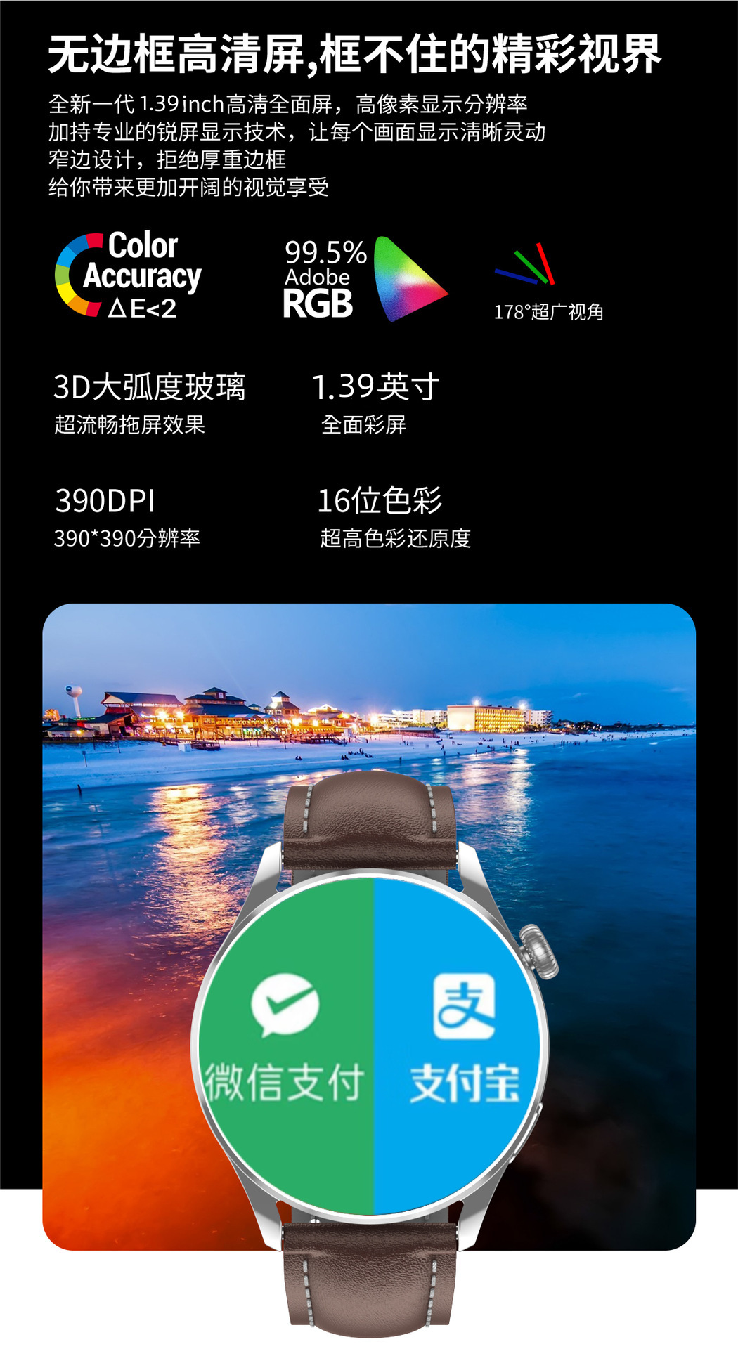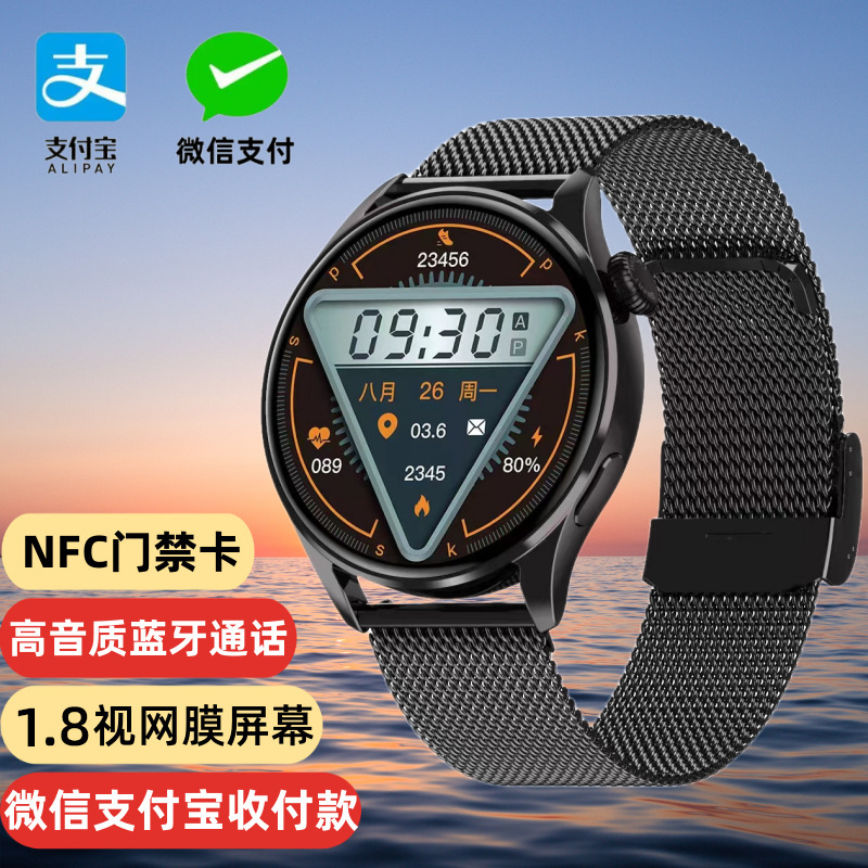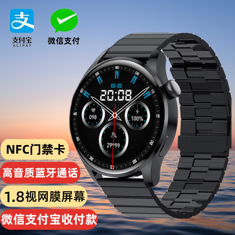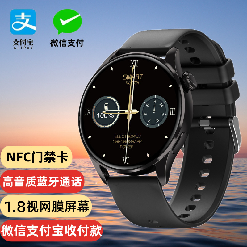 华强北GT4微信支付智能手表华强北运动血压支付NFC音乐健康检测