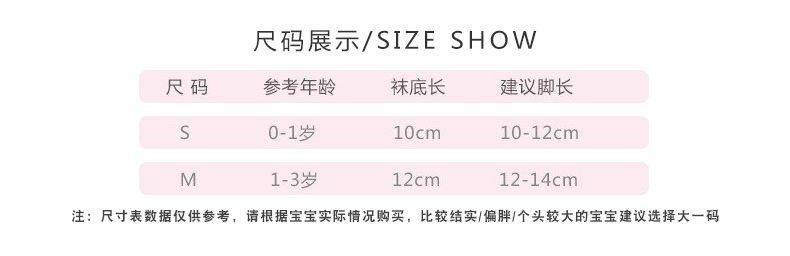 | size m (1-3 years old) suitable for 11-14cm(M码数(1-3岁)适合11-14CM) | USD $1.35 | 9480 piece available |