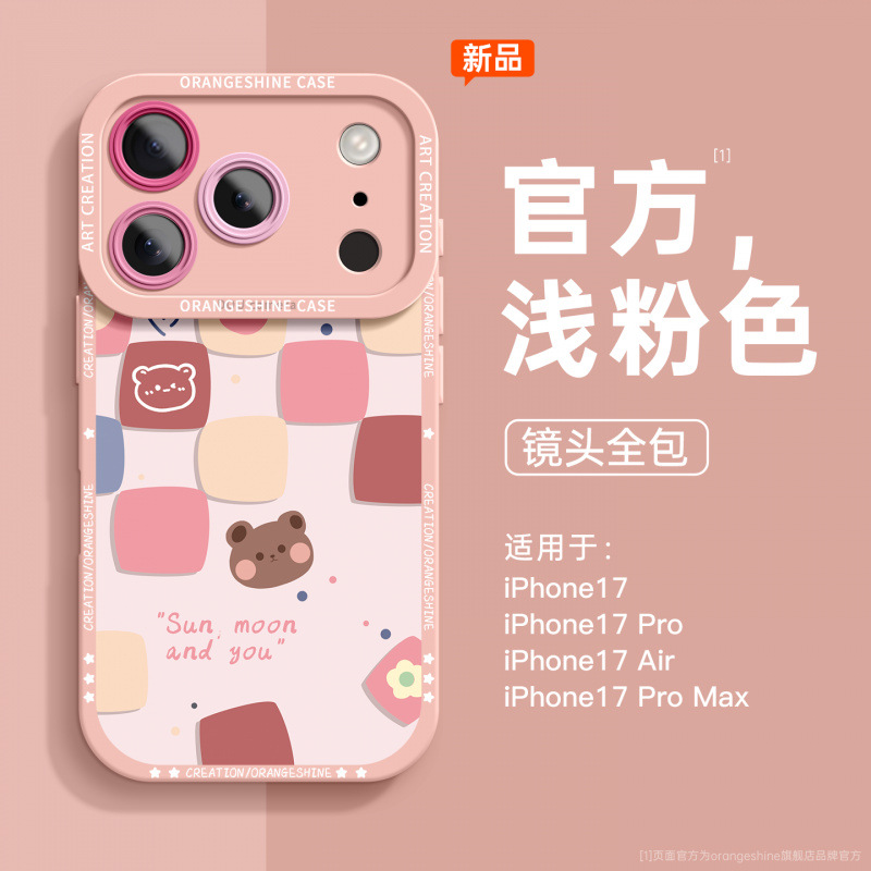 适用于苹果17pro手机壳新款橙色iphone17proamx硅胶17air小熊高级