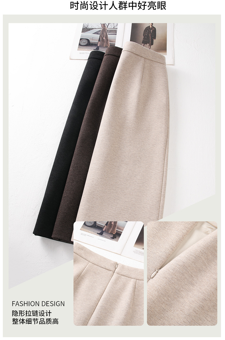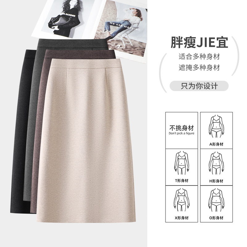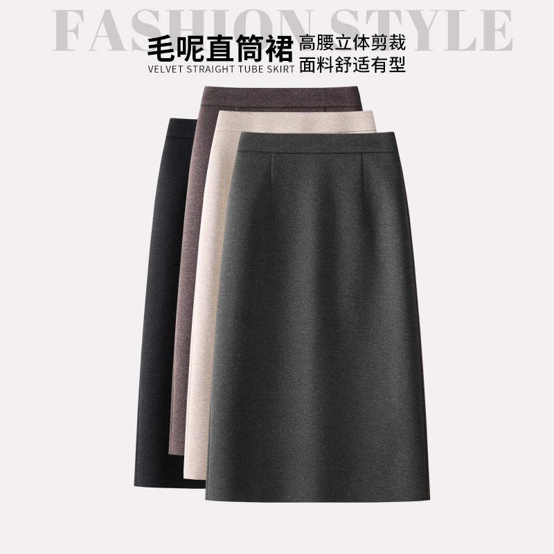 高级感气质毛呢半身裙女2025秋冬新款中长款直筒裙高腰显瘦包臀裙