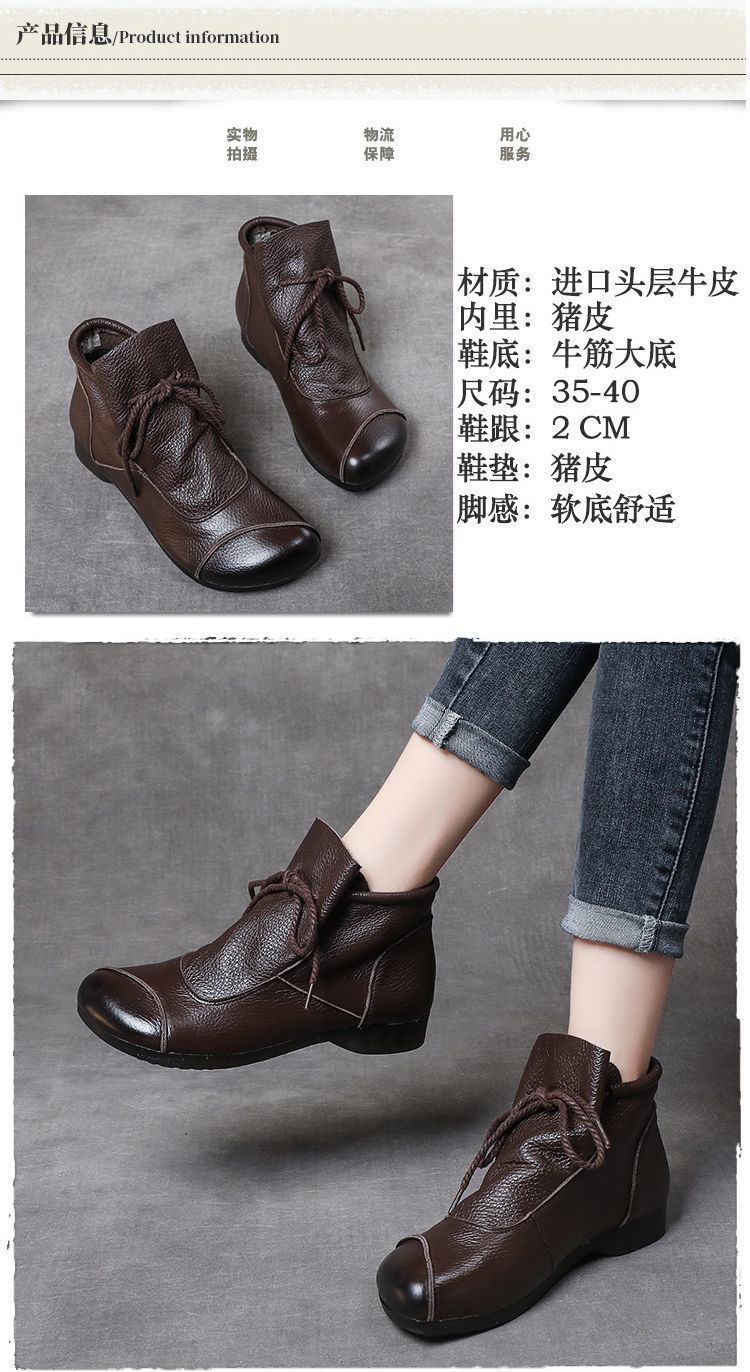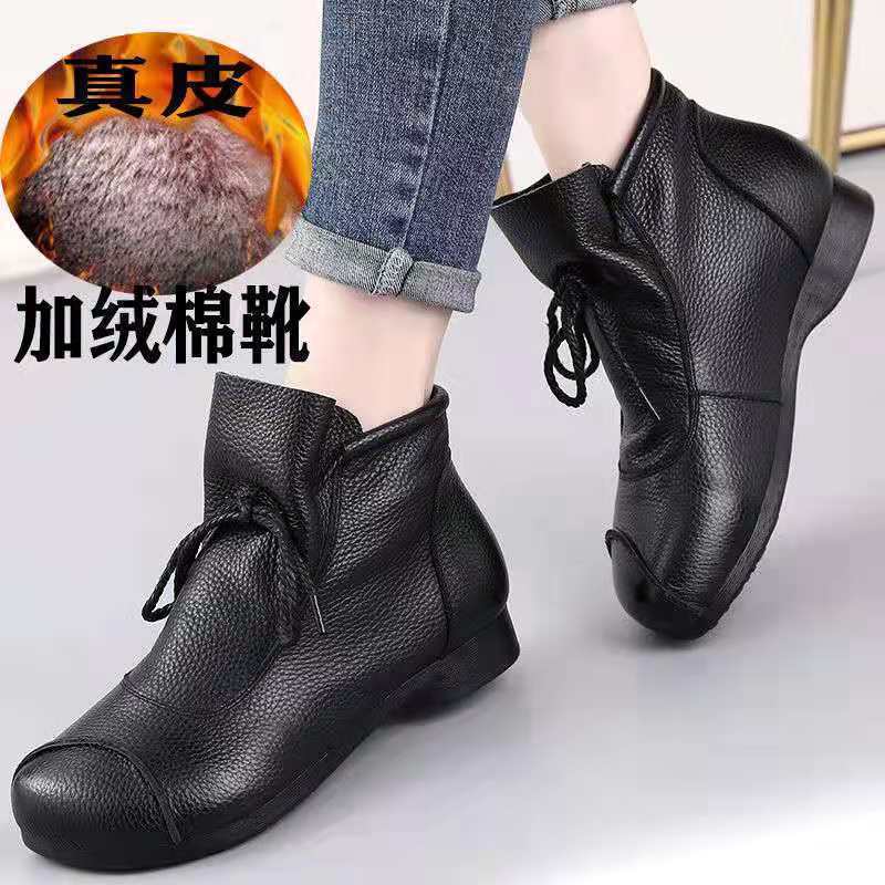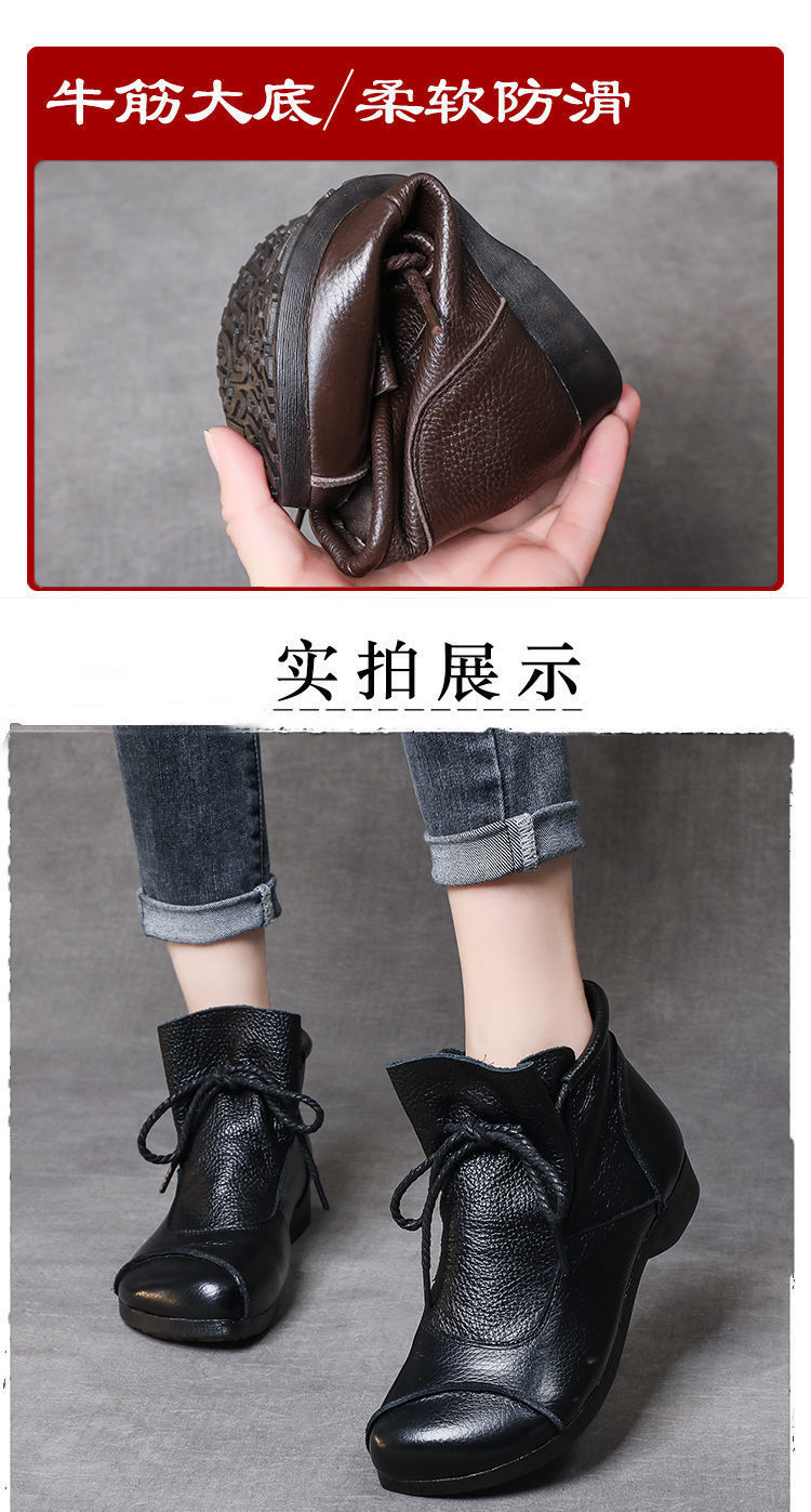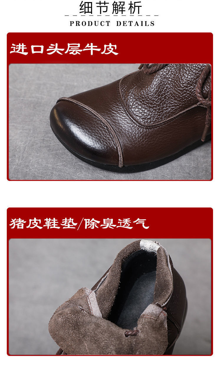 真皮舒适软底妈妈鞋2024春秋手工复古女鞋中年高帮皮鞋棉鞋女靴子