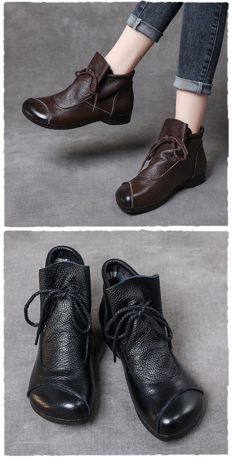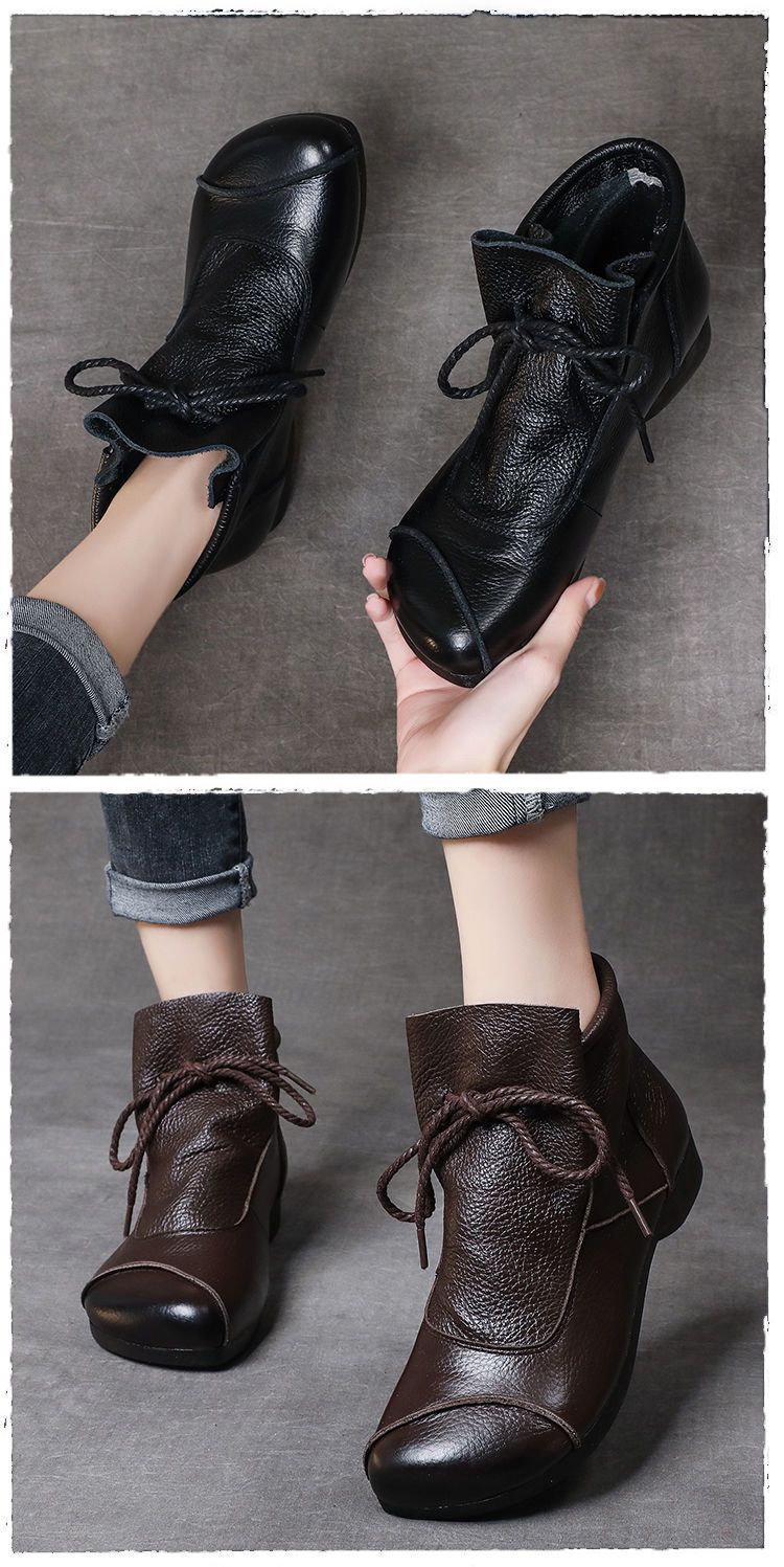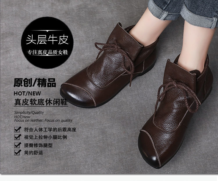 真皮舒适软底妈妈鞋2024春秋手工复古女鞋中年高帮皮鞋棉鞋女靴子