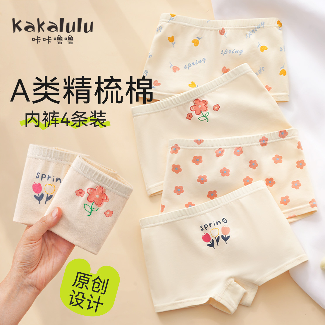 女童内裤纯棉a类儿童平角小女孩四角裤不夹屁股女宝宝短裤中大童