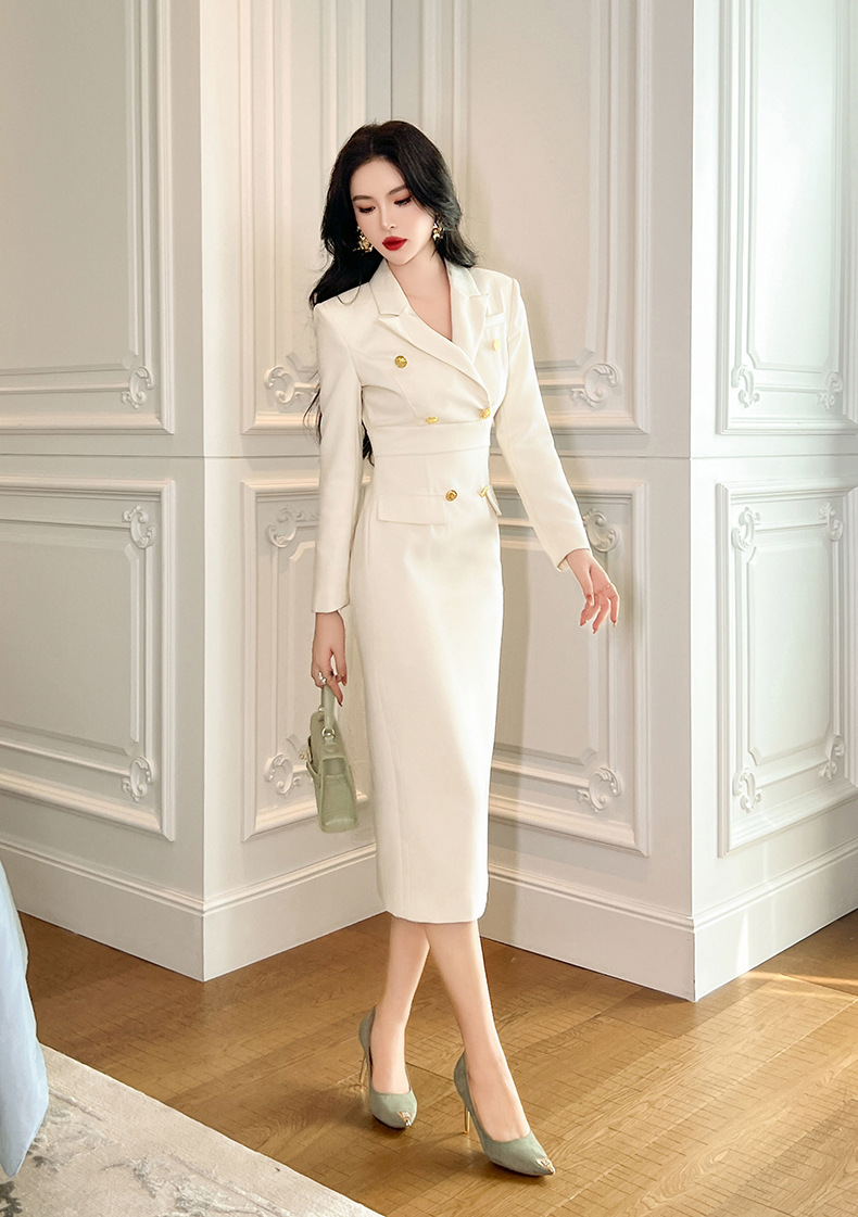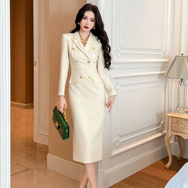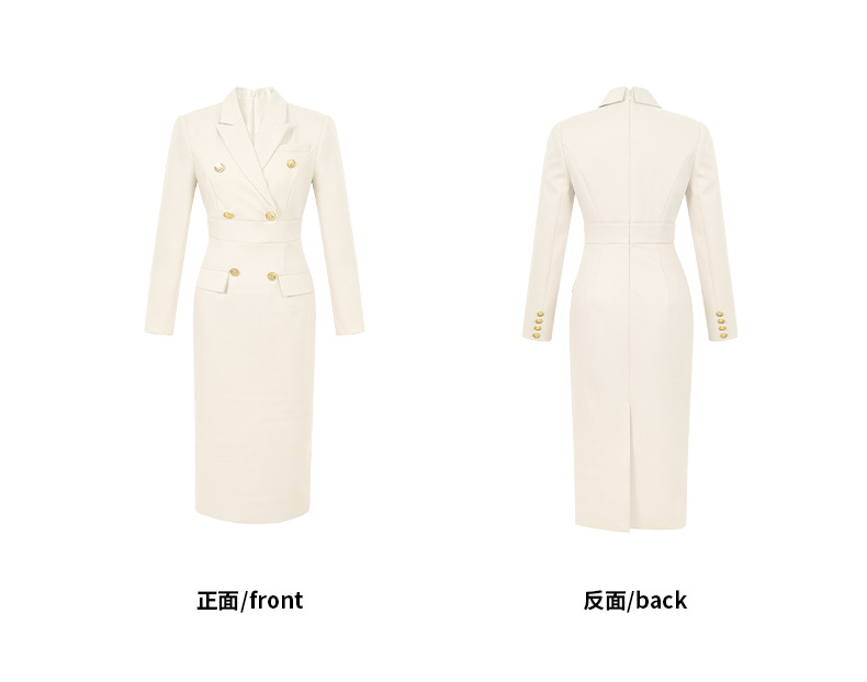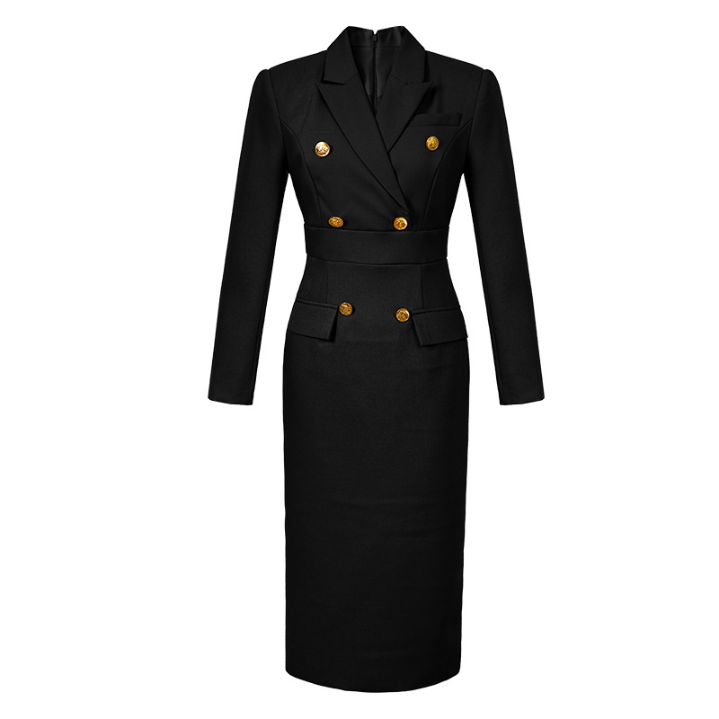 2025秋装新款女装御姐风气质西装领双排扣修身包臀连衣裙50562
