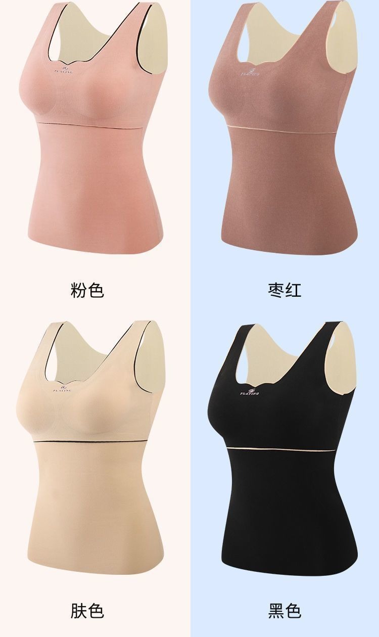 亲氧2.0无痕双面AB德绒保暖背心女自带胸垫加厚修身打底保暖内衣