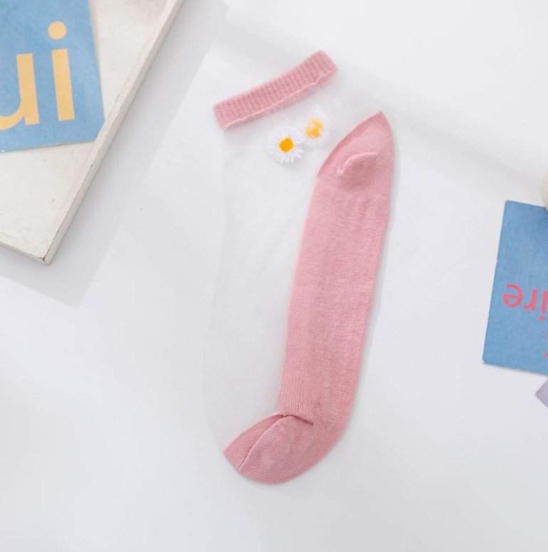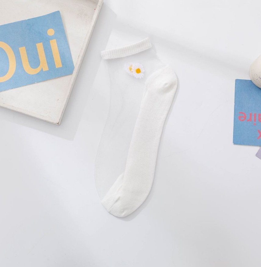 袜子女夏季薄款水晶菊花玻璃丝袜日系小雏菊女袜卡丝船袜地摊袜