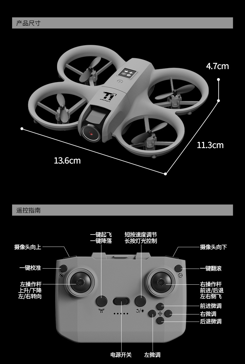 跨境新品学生迷你四轴无人机实时航拍双摄飞行器遥控飞机玩具男孩