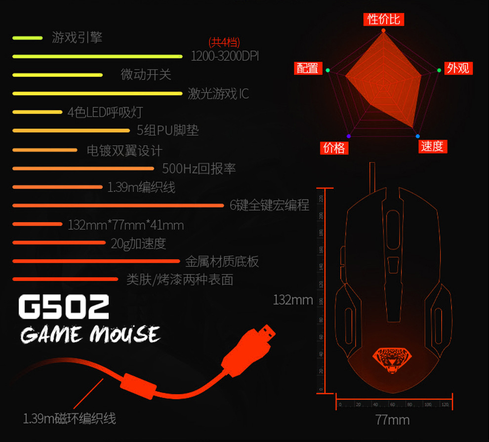 帝王豹G502有线发光电竞游戏鼠标 炫酷电镀风火轮设计现货批发