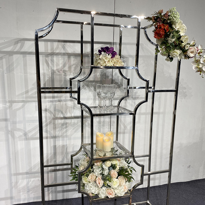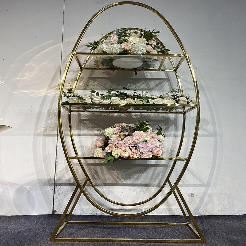 工厂批发婚庆婚礼道具电镀金色花架舞台架子室内不锈钢舞台装饰