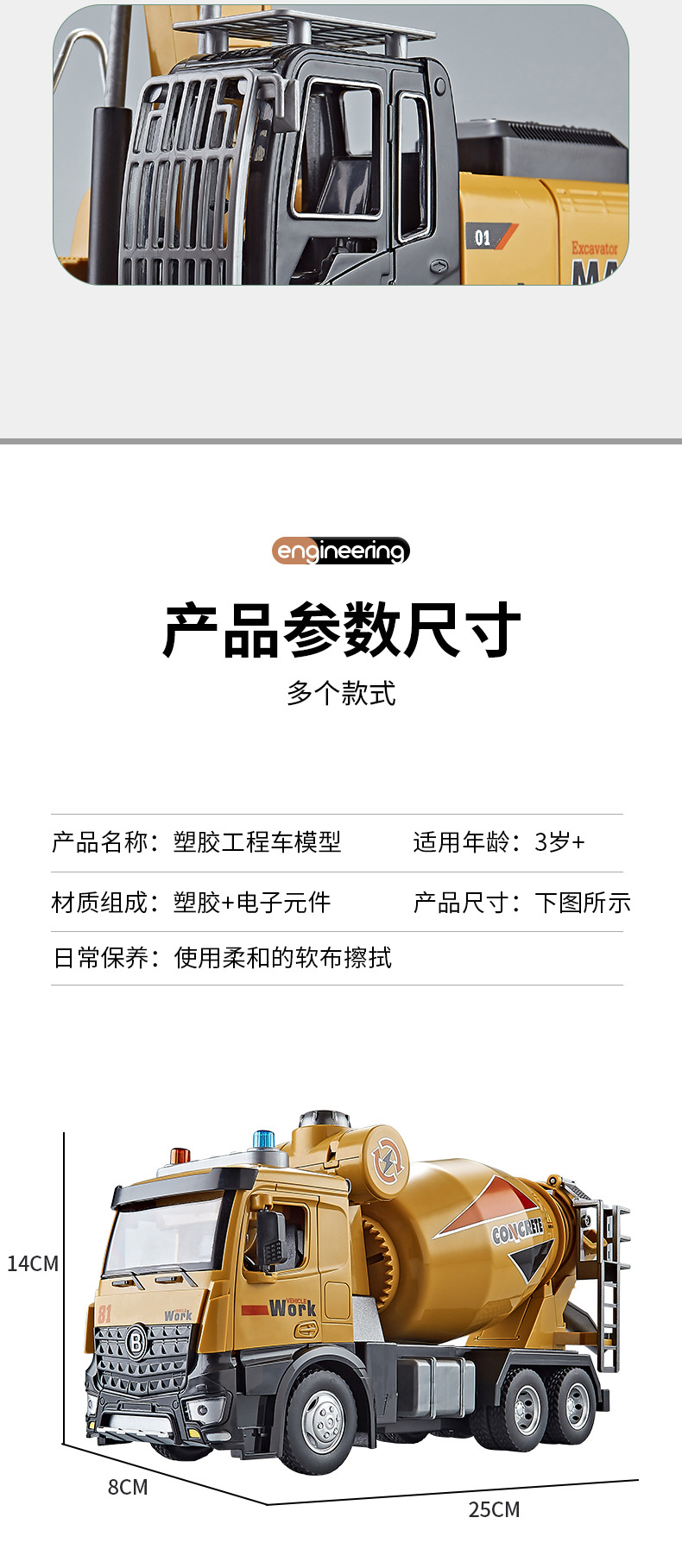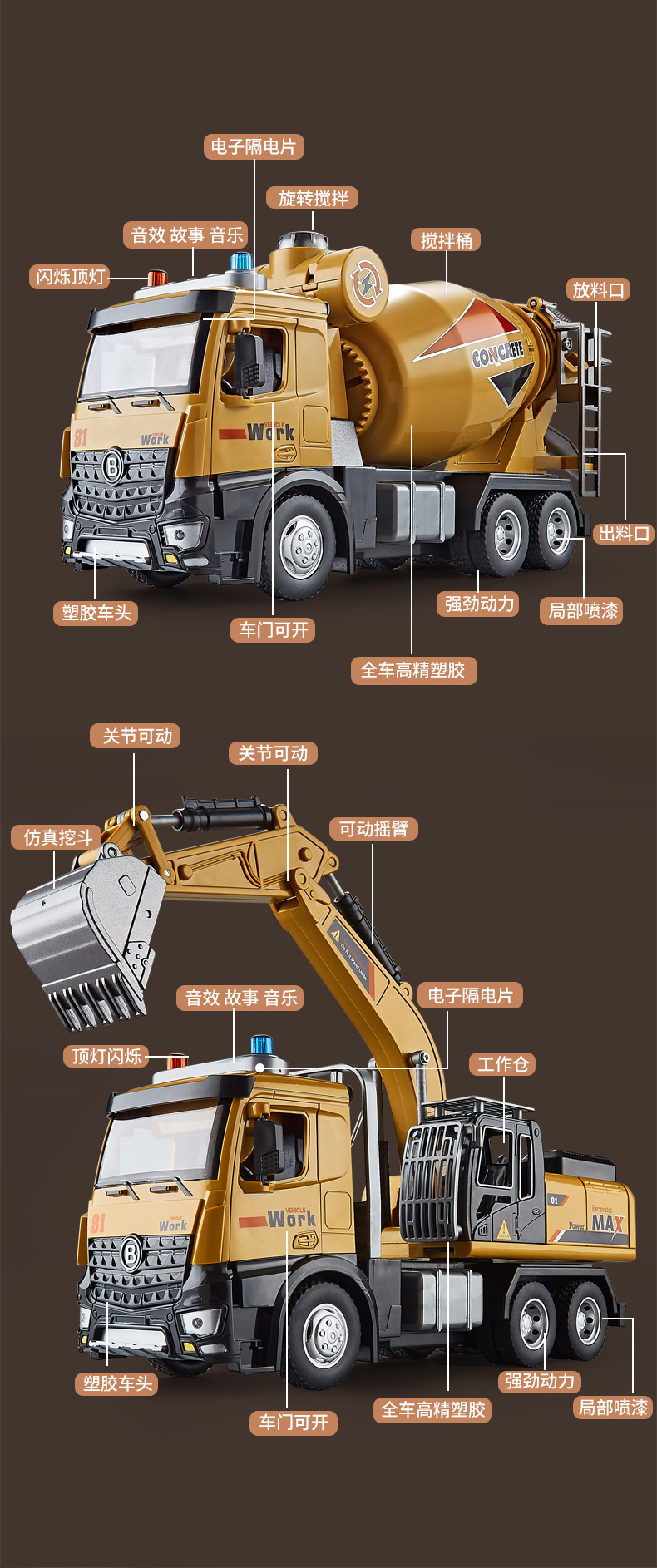 佳都玩具儿童超大号合金搅拌车玩具水泥混凝土罐挖掘机工程车男孩