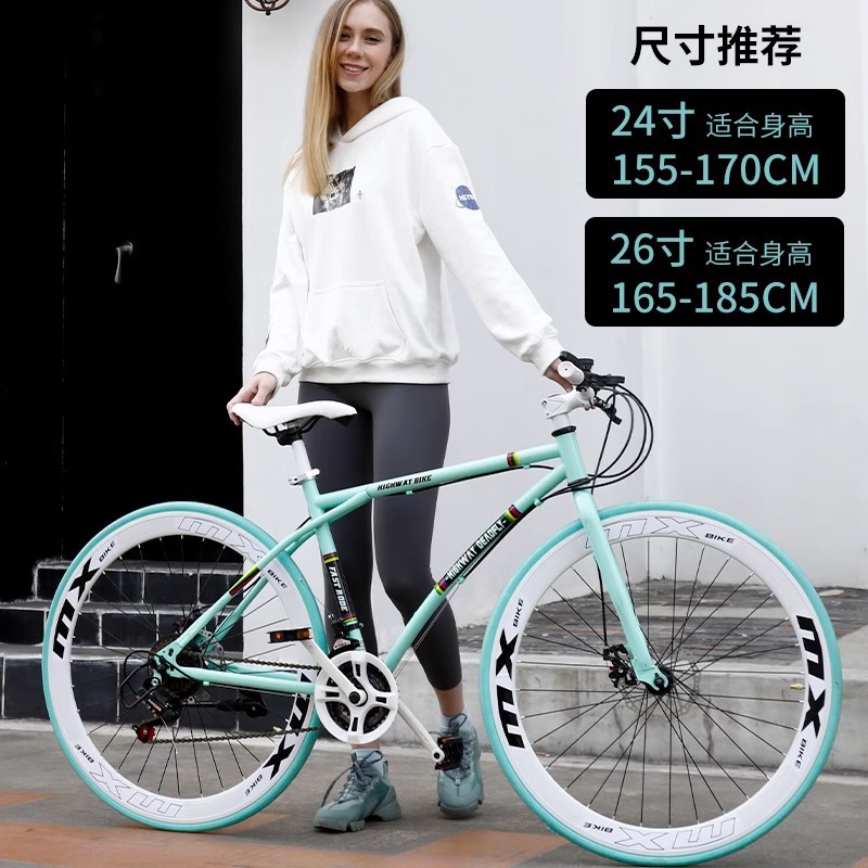 变速死飞自行车实心胎活飞网红公路赛车简约学生成人男女单车