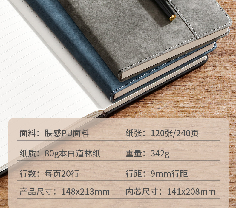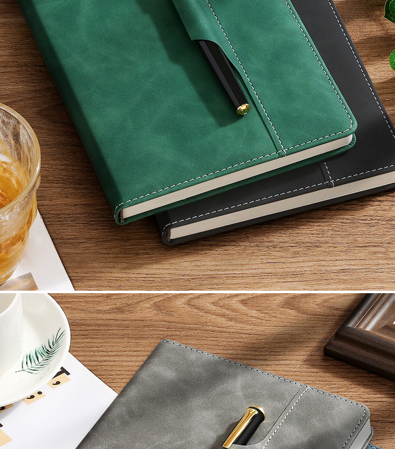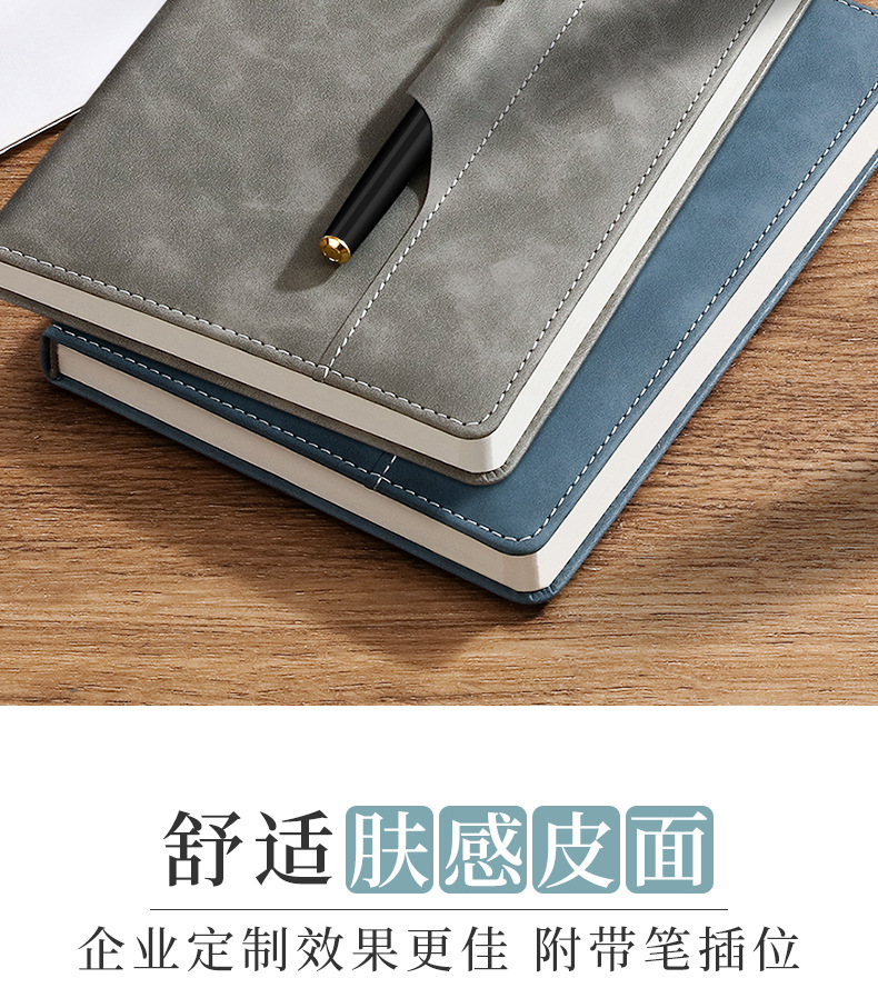 2025年新款肤感皮面笔记本带笔插商务办公记事本企业专版印刷LOGO
