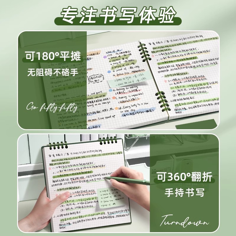 方形本活页笔记本本子高颜值笔记本复古上翻活页本可拆卸网格空白