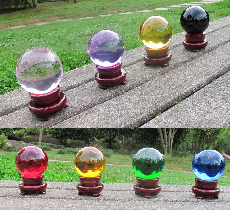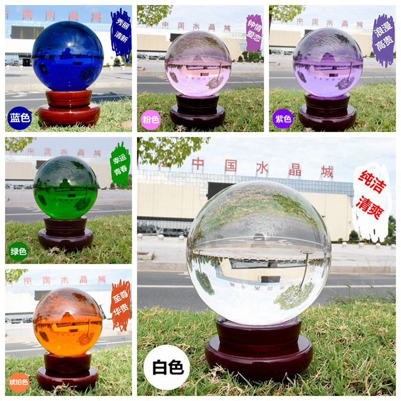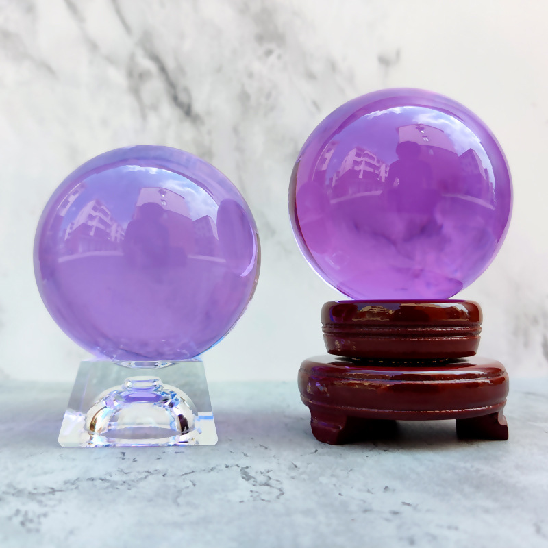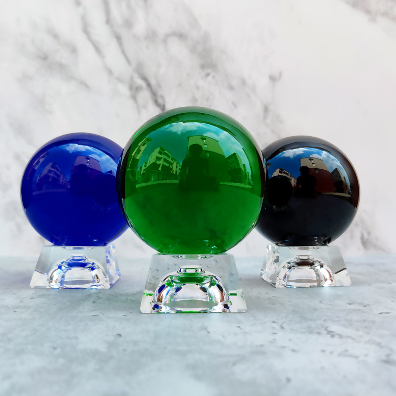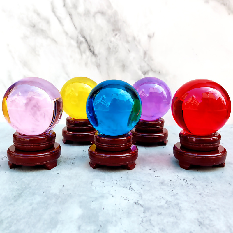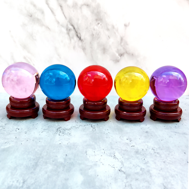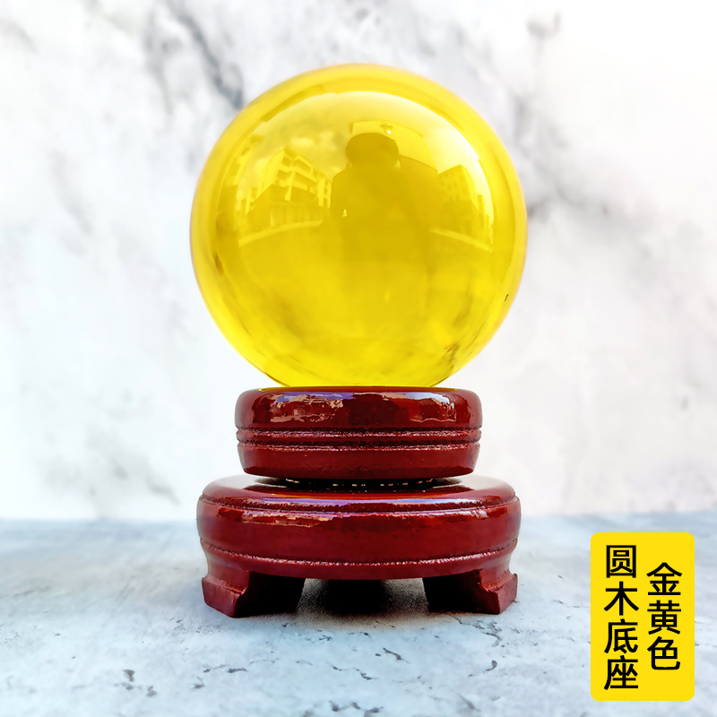 厂家透明水晶球摆件底座艺术装饰工艺品K9黄色粉色彩色玻璃球批发
