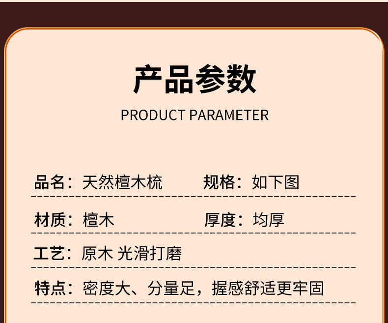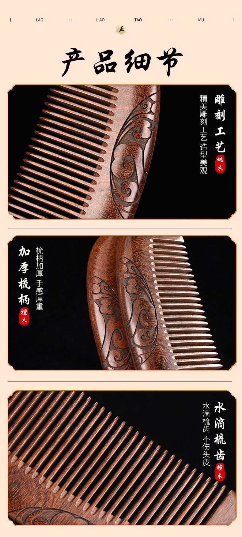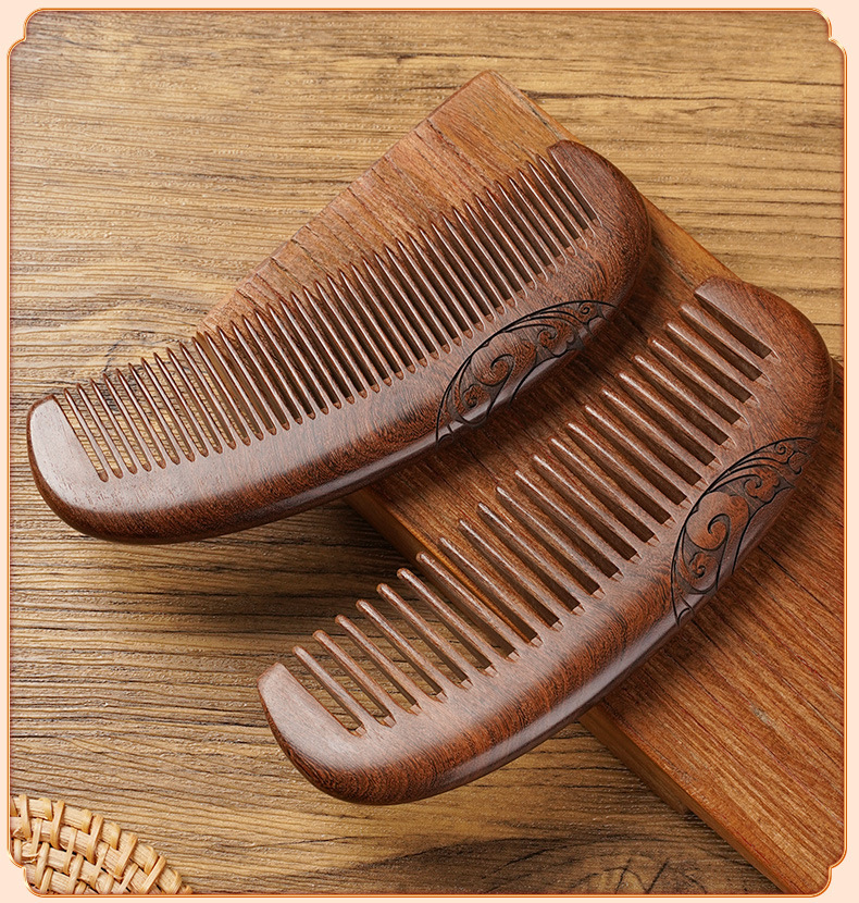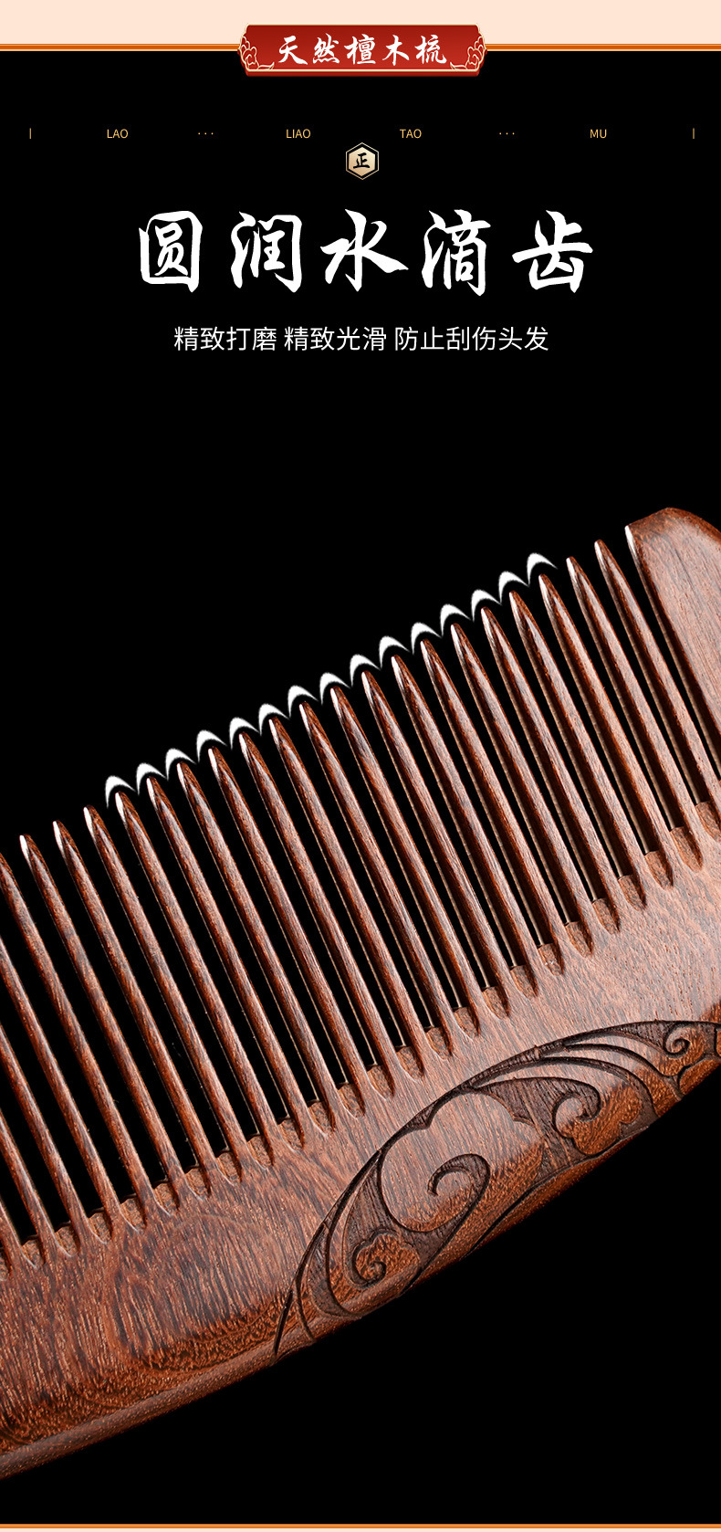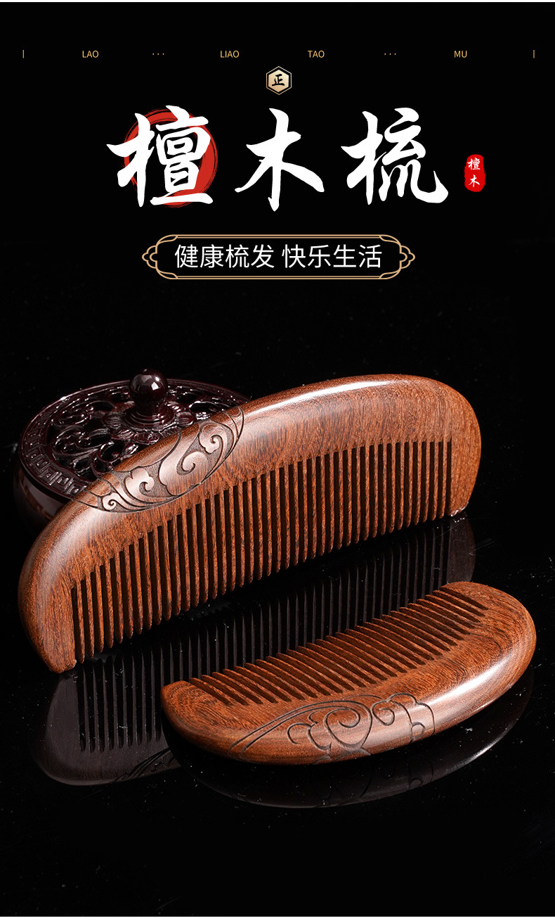天然黑金檀木半月梳顺发按摩头皮木质半月梳子双面雕花便携按摩梳