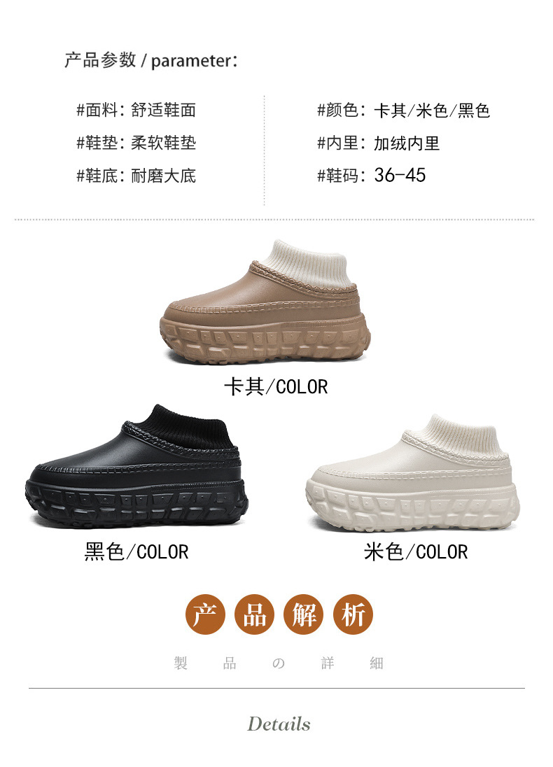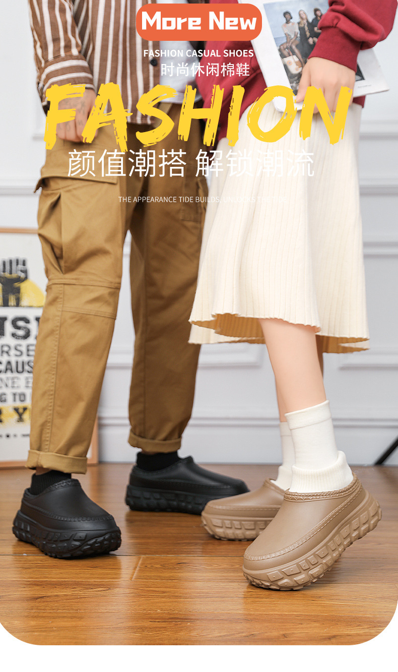 加绒棉鞋情侣款外穿厚底增高保暖棉拖鞋防滑防水防风轻便毛毛鞋女
